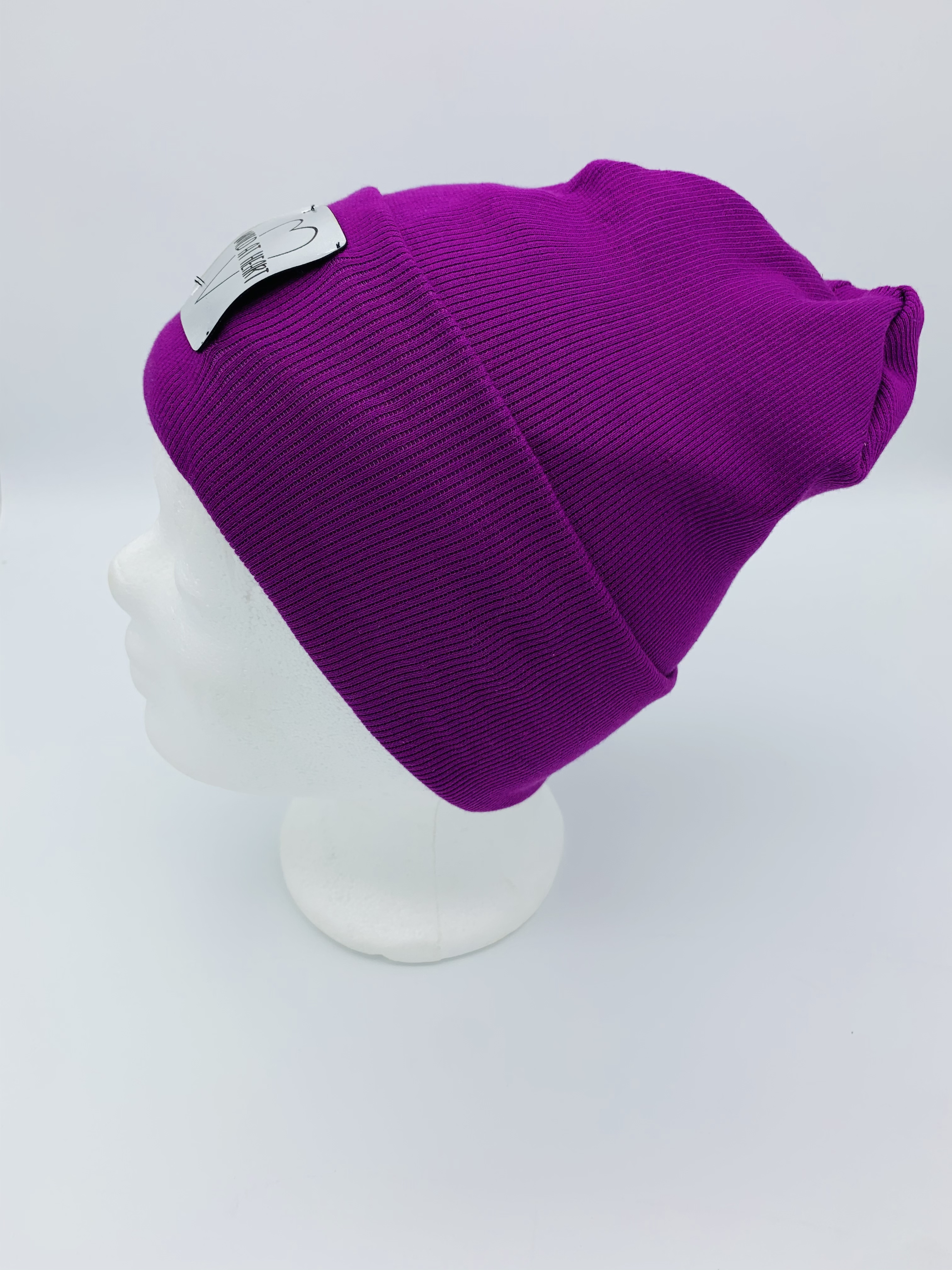 Ein klassischer Hipster Beanie aus Baumwolle in der Farbe "Lila".