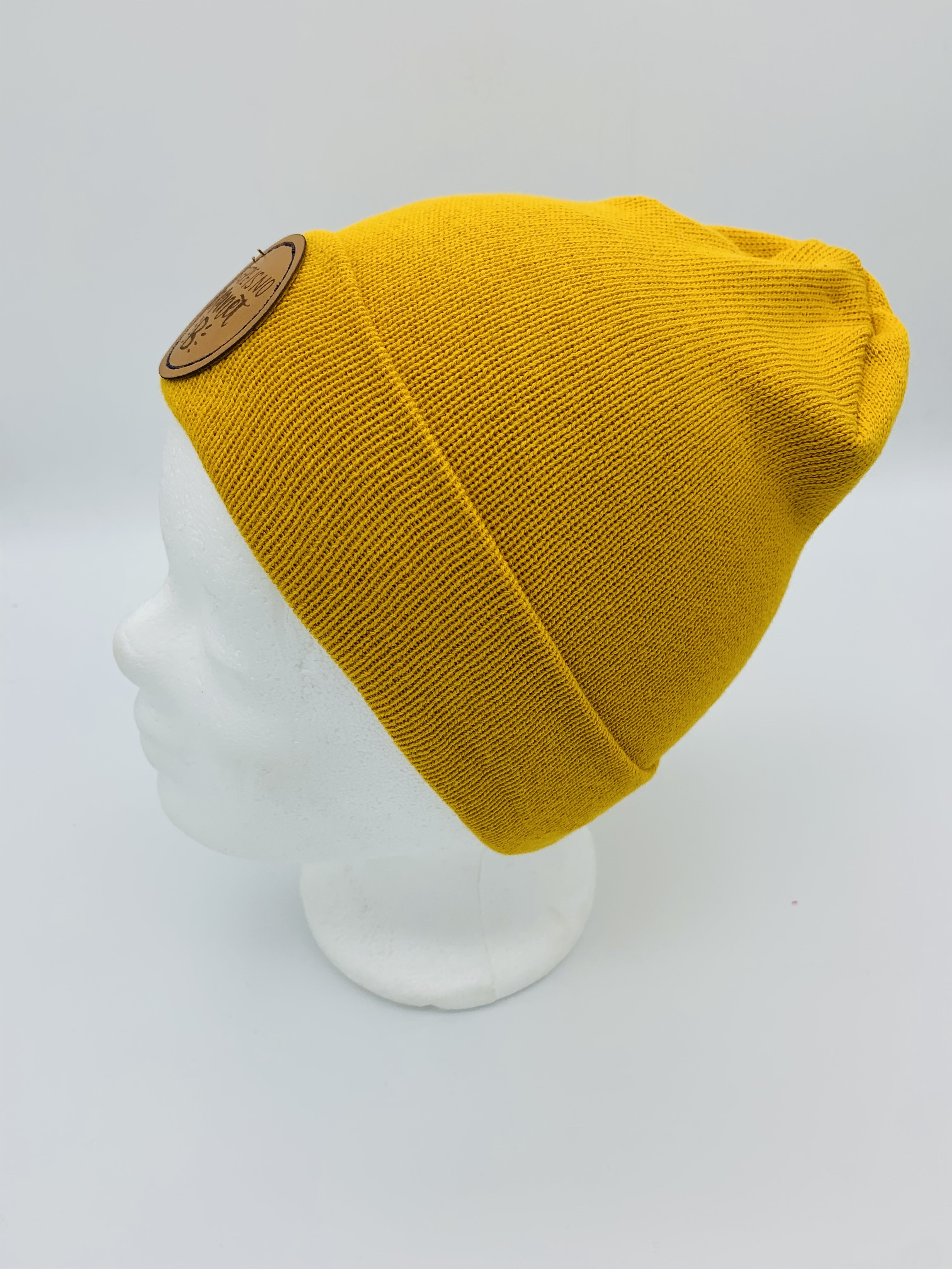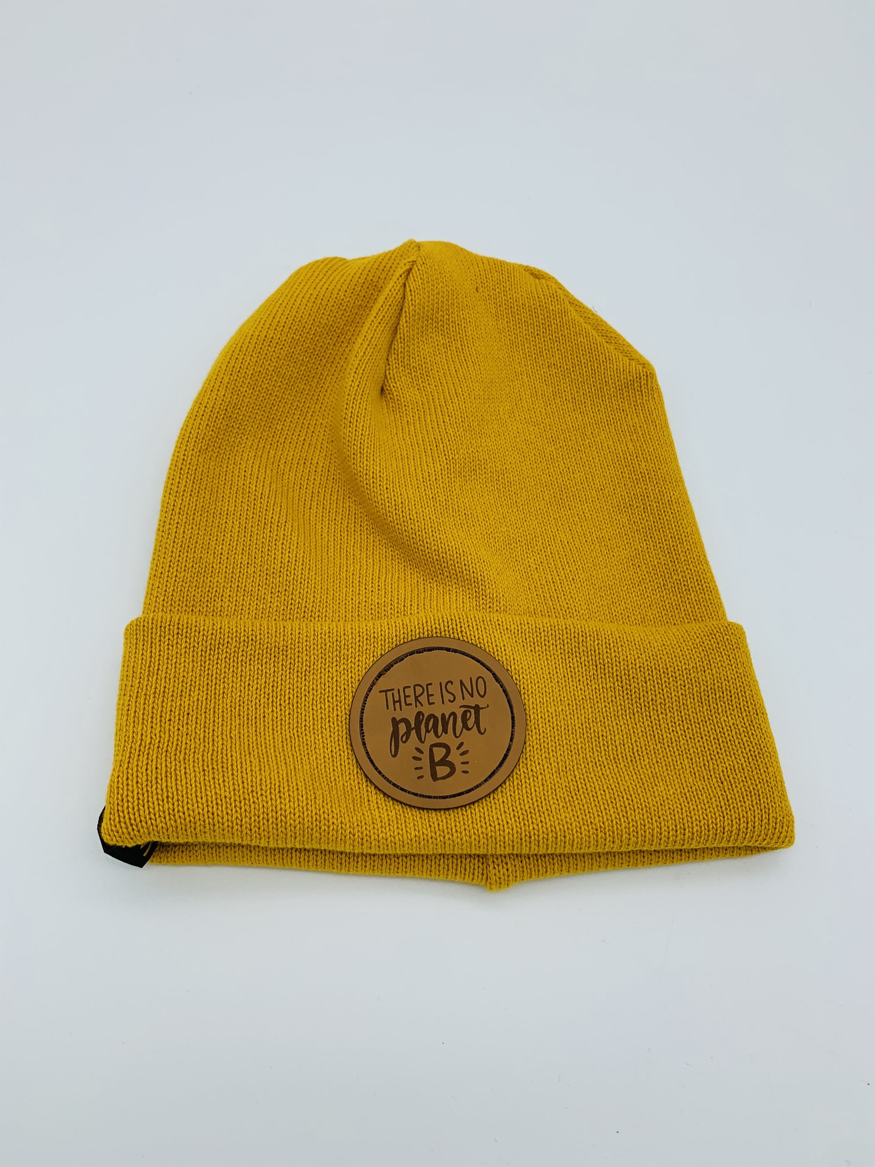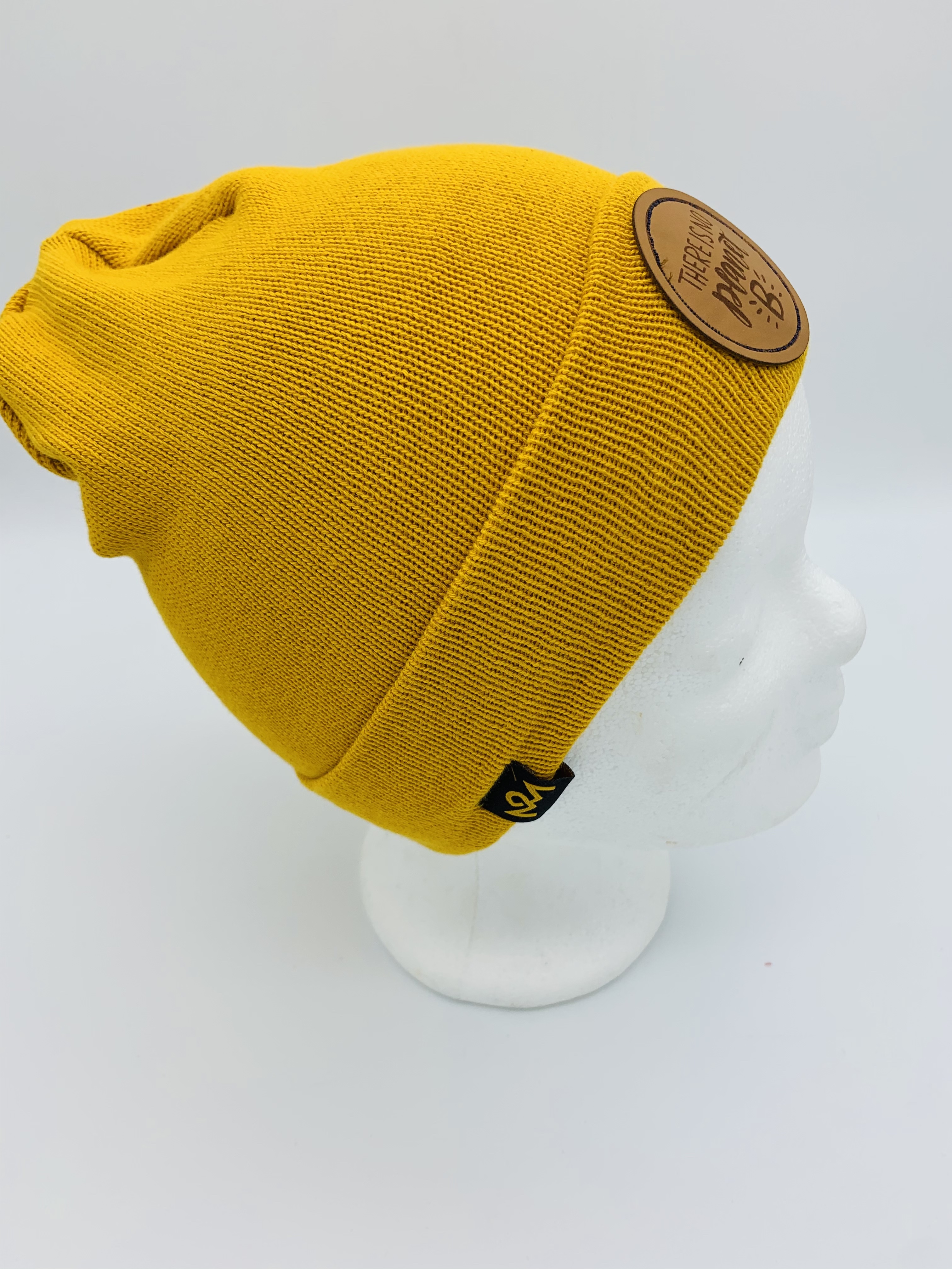 Ein klassischer Hipster Beanie aus Baumwolle in der Farbe Senfgelb.
