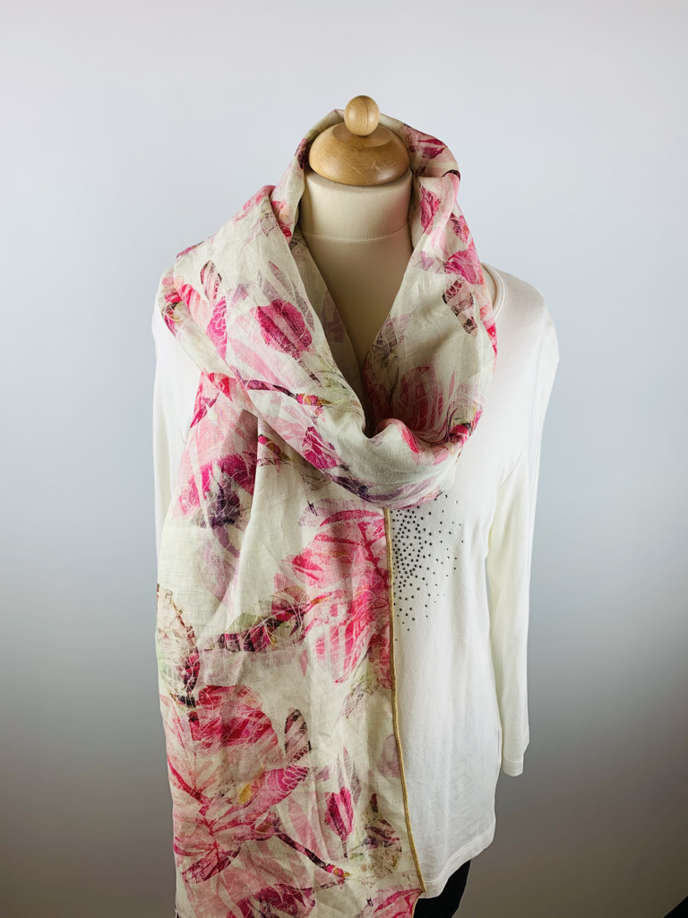 Dieser elegante wie zeitgemäße Schal aus Leinen setzt fröhliche und modische Akzente zu jedem Look,