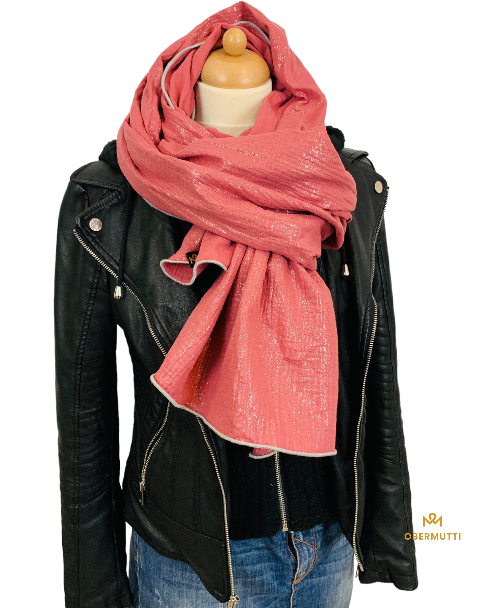 Das Logo OBERMUTTI besteht aus 50% Polyester und 50% recyceltem Polyester.