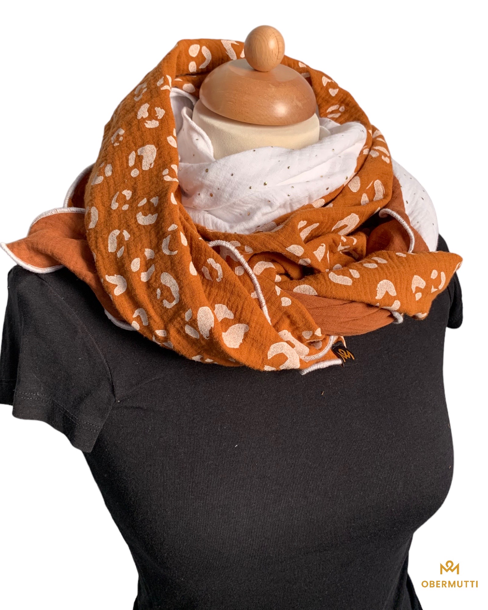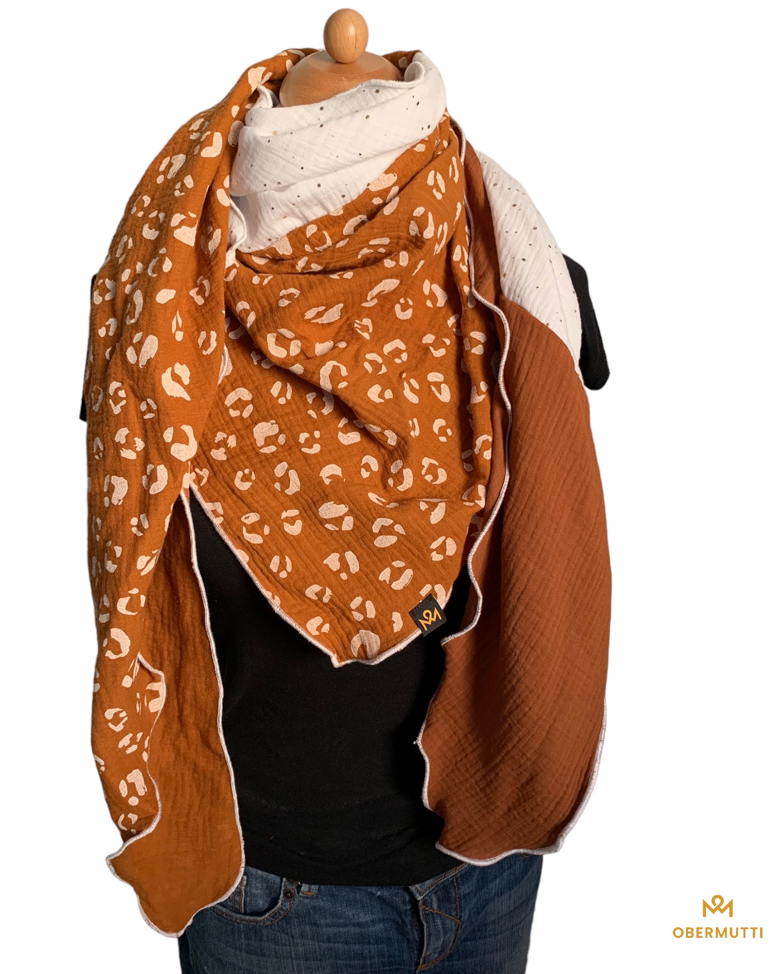 Farben: braun mit weißem Leoparden Muster, Creme mit goldenen Punkten und Braun