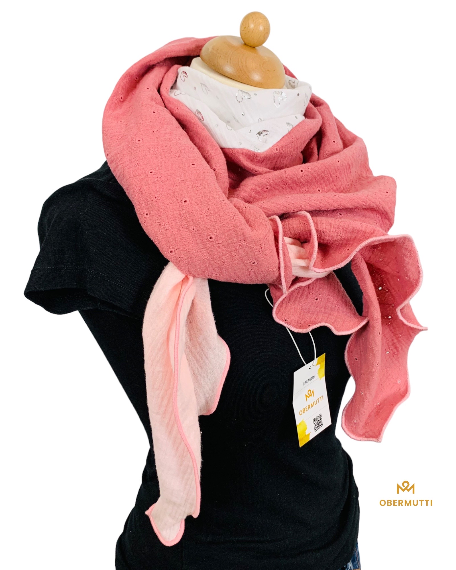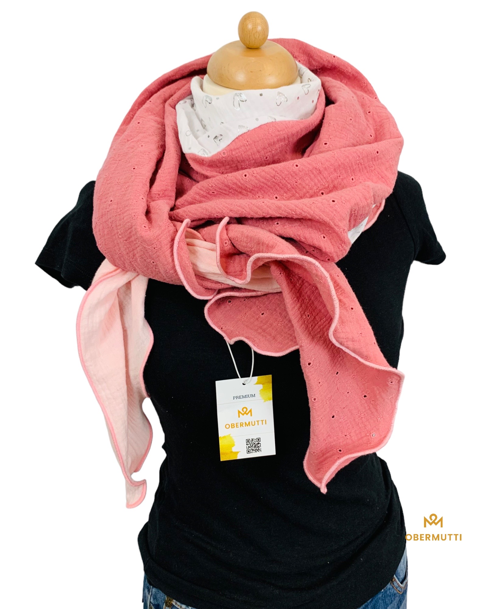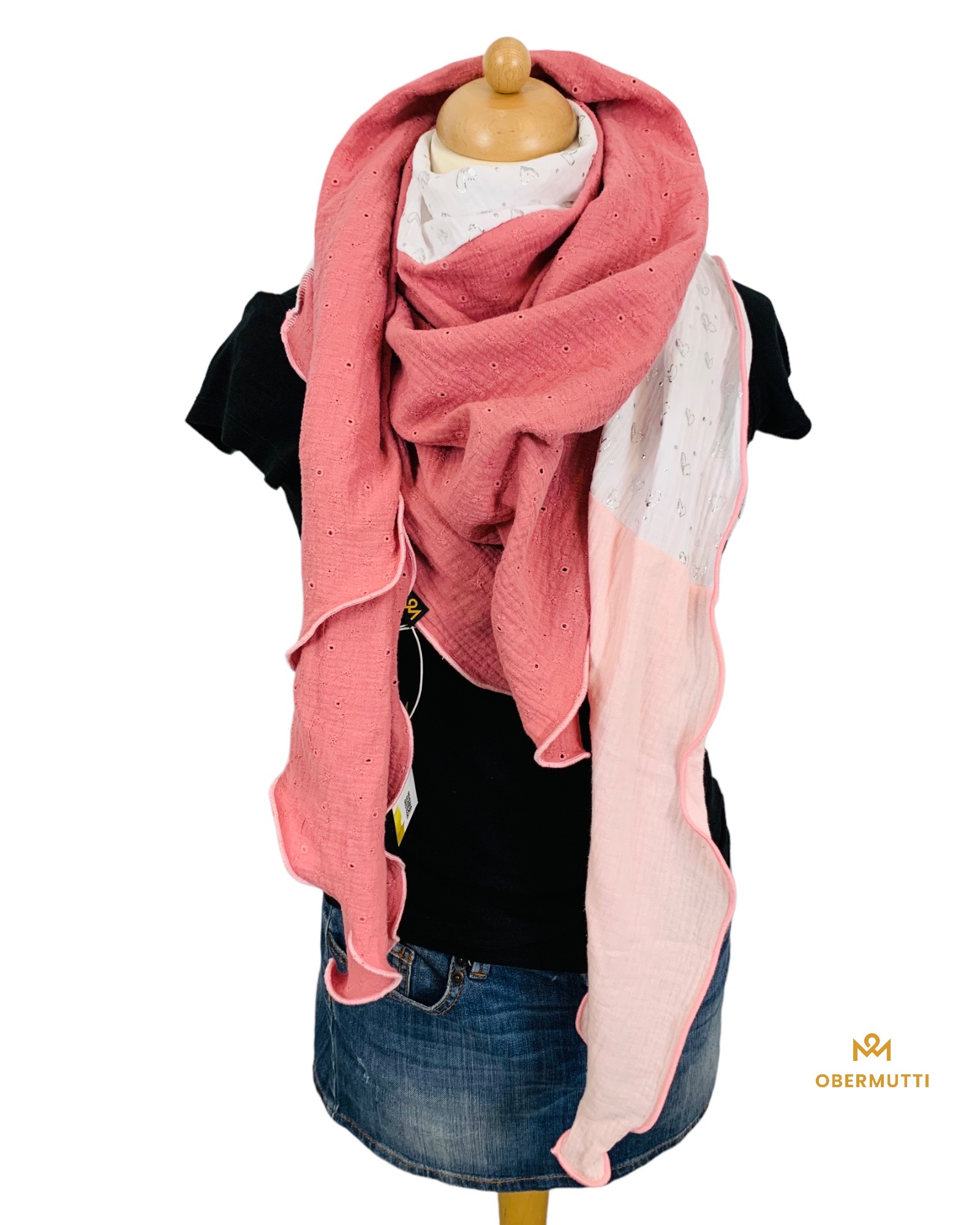 Der Schal besteht aus einem glatten, lockeren und feinfädigen Musselinbaumwollstoff.