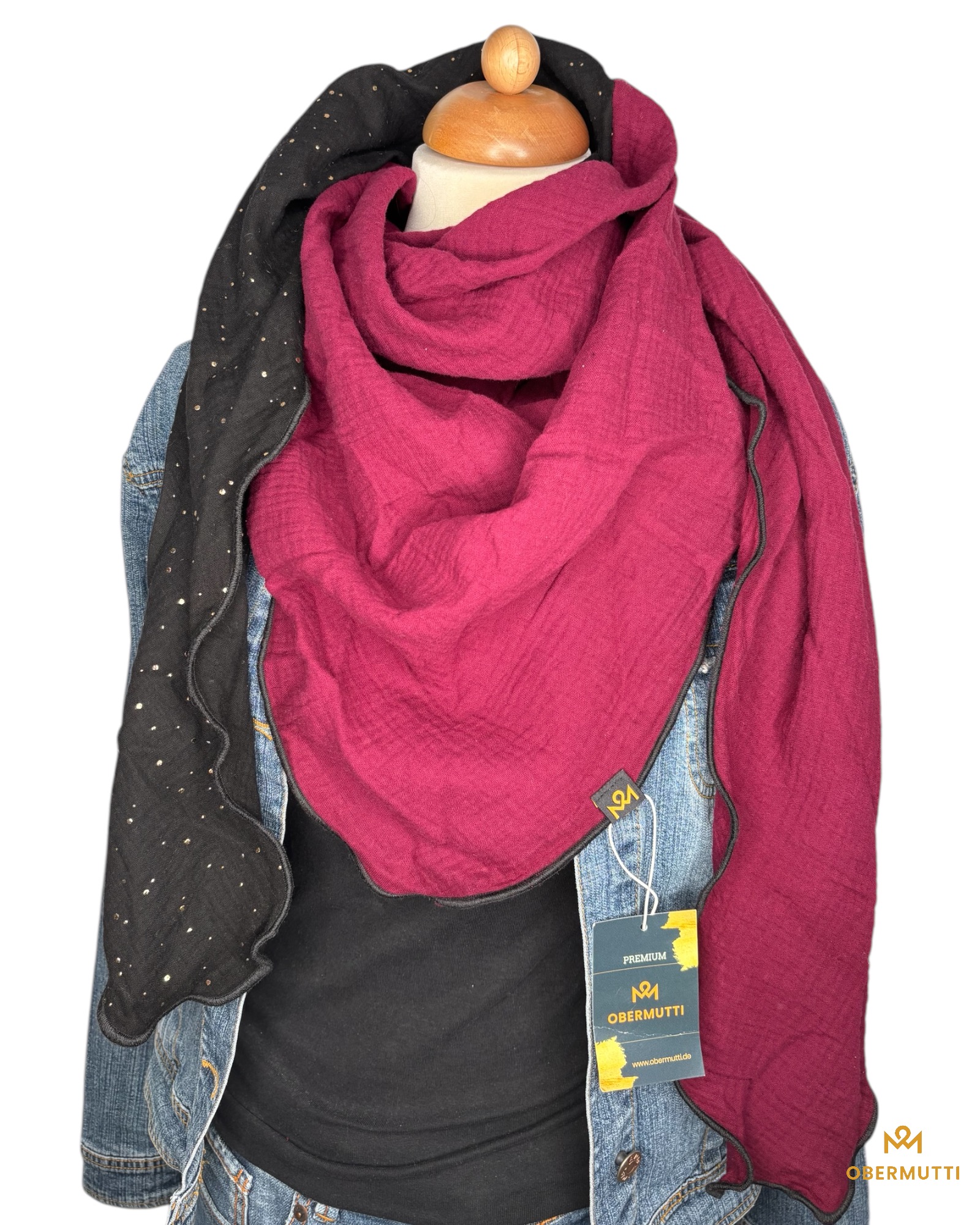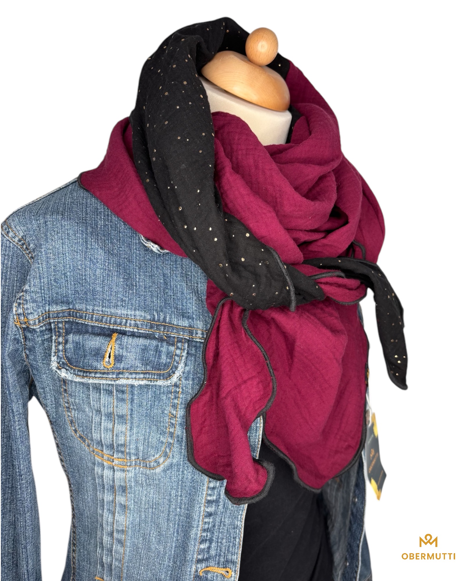Farben: Bordeaux Rot und schwarz mit goldenen Punkten