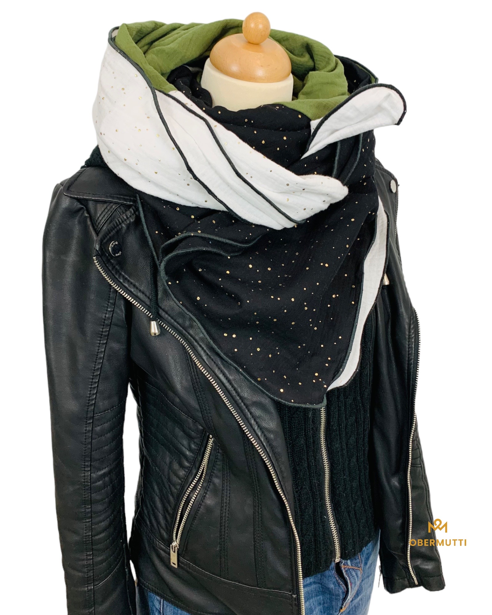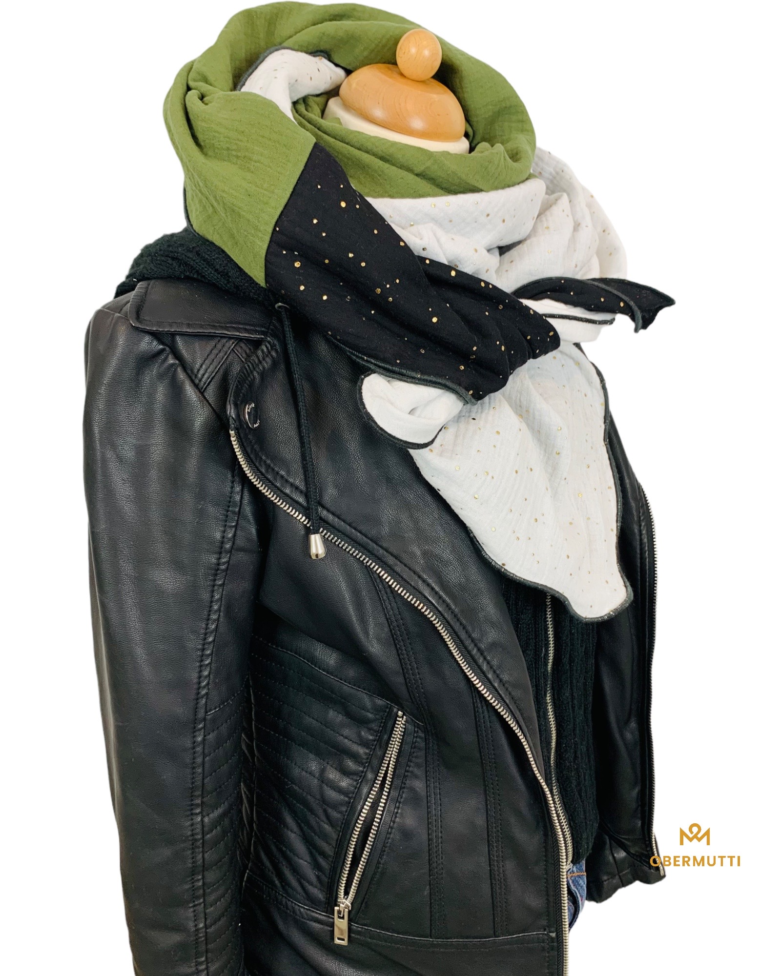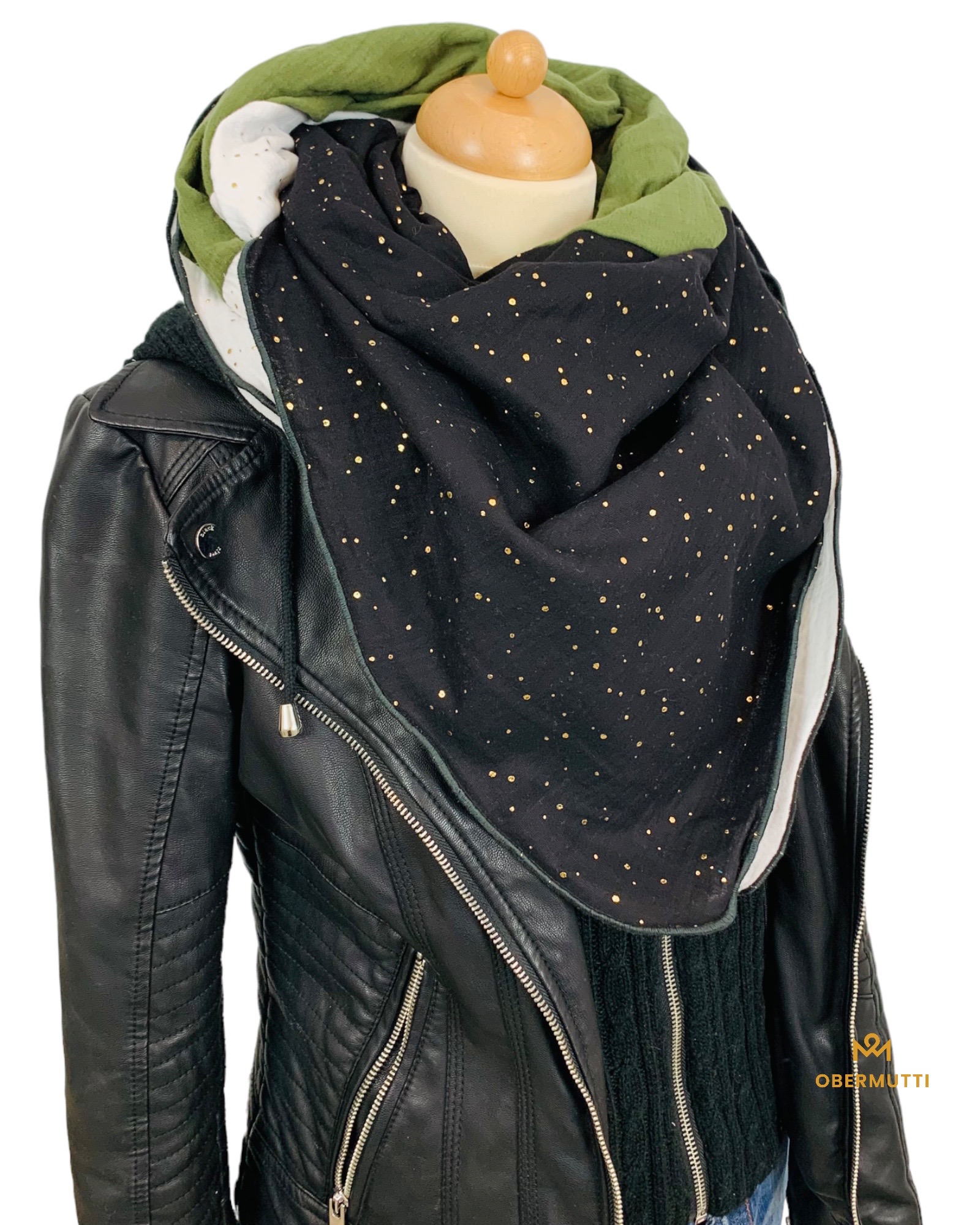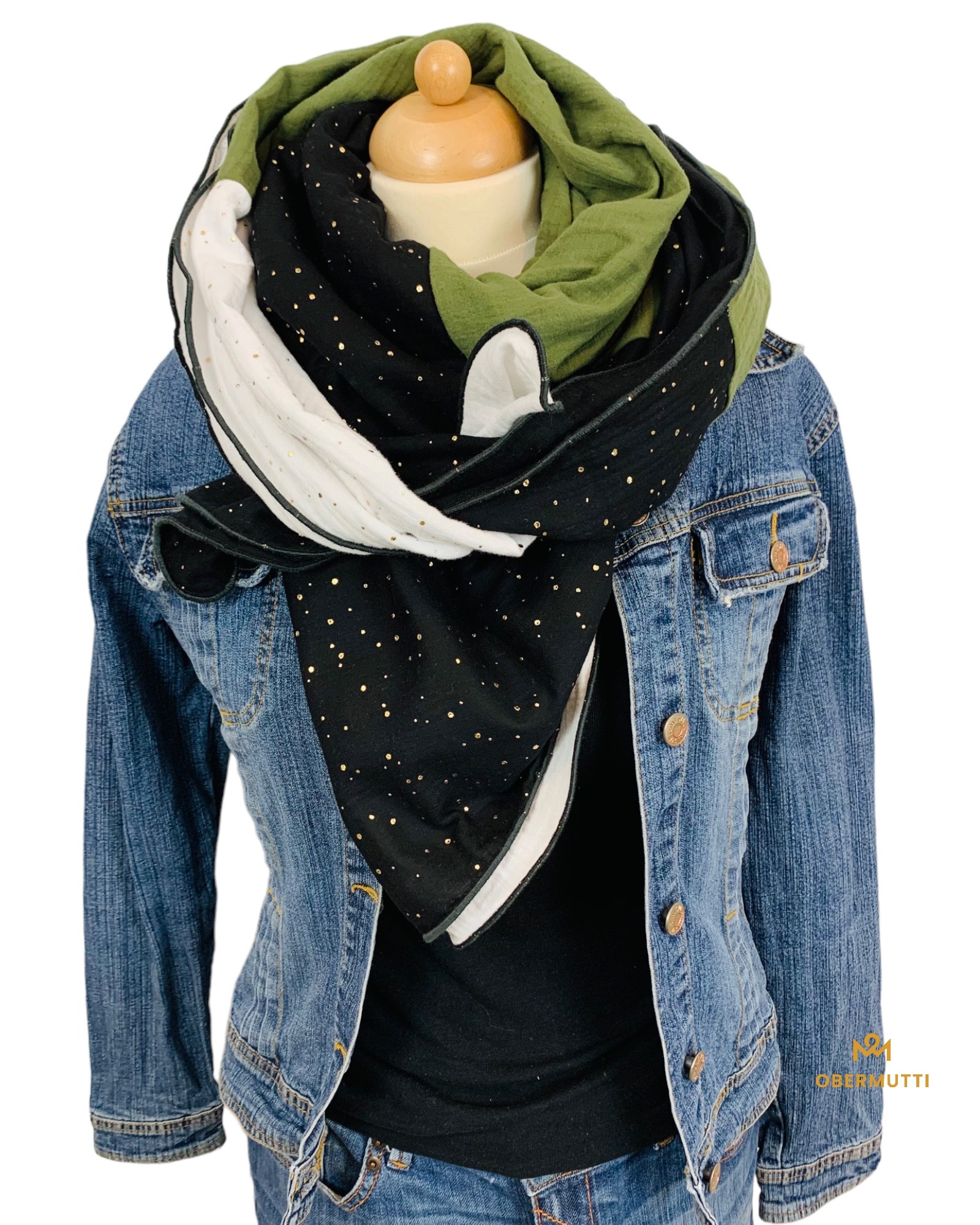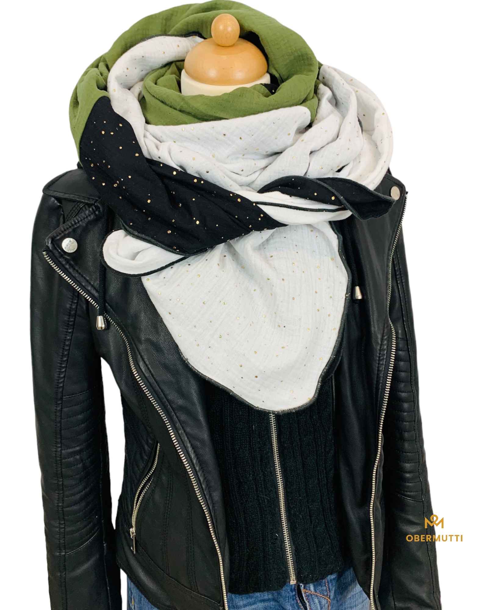 Farbe: Schwarz mit goldenen Tropfem, weiß mit goldenen Tropfen und Olivegrün