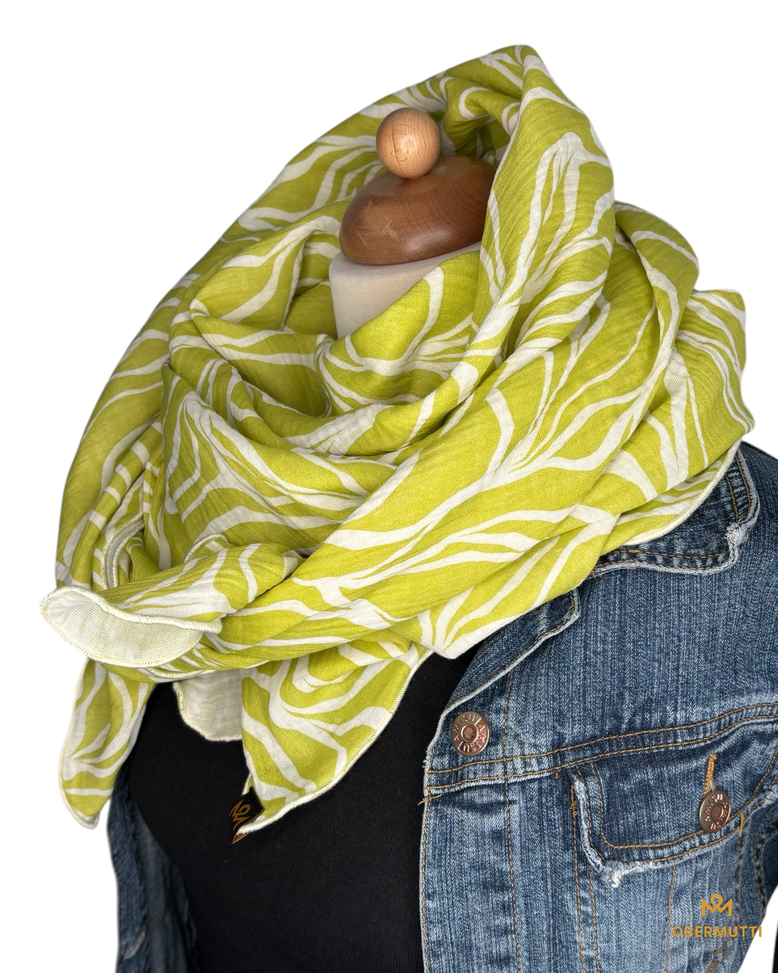 Der Schal besteht aus einem glatten, lockeren und feinfädigen Baumwollstoff (100%).