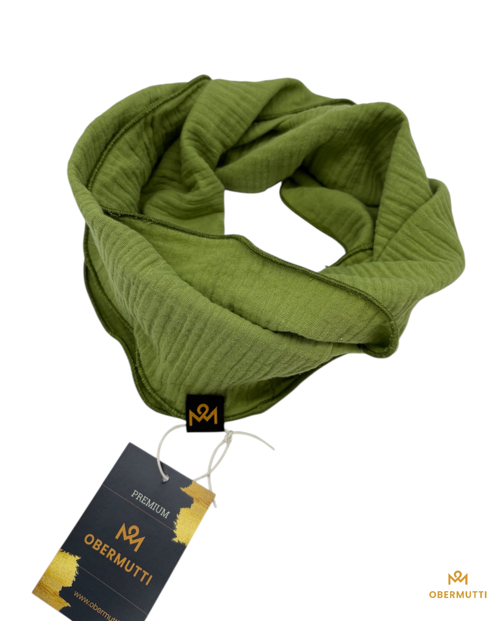 Dieser hochwertige, doppelt gewebte Schlauchschal aus 100% Baumwollmusselin wurde in der Farbe "hellgrün" gefertigt.