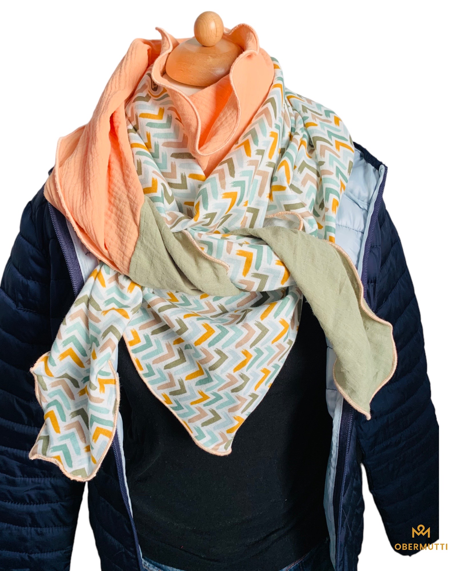 Mit einem großen dreickigen Schnittformat lässt er alle Trage- und Kombinationsmöglichkeiten offen.