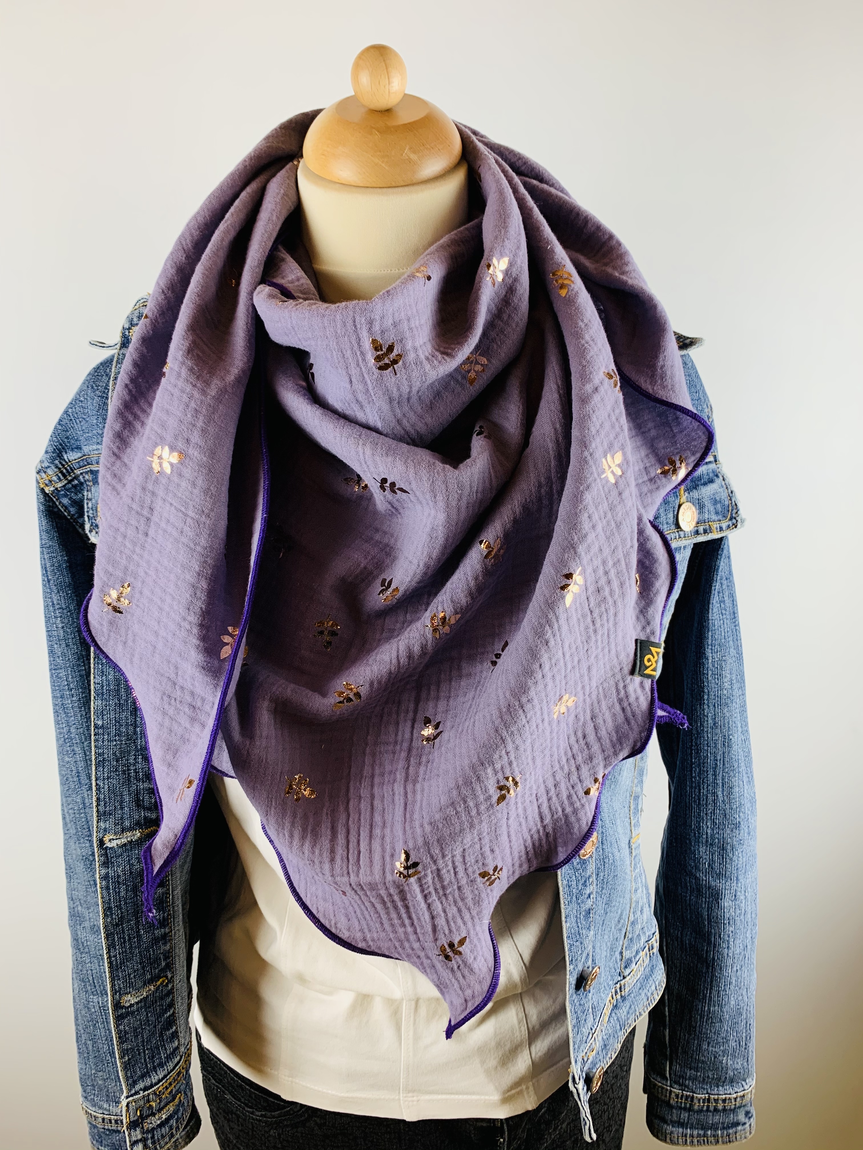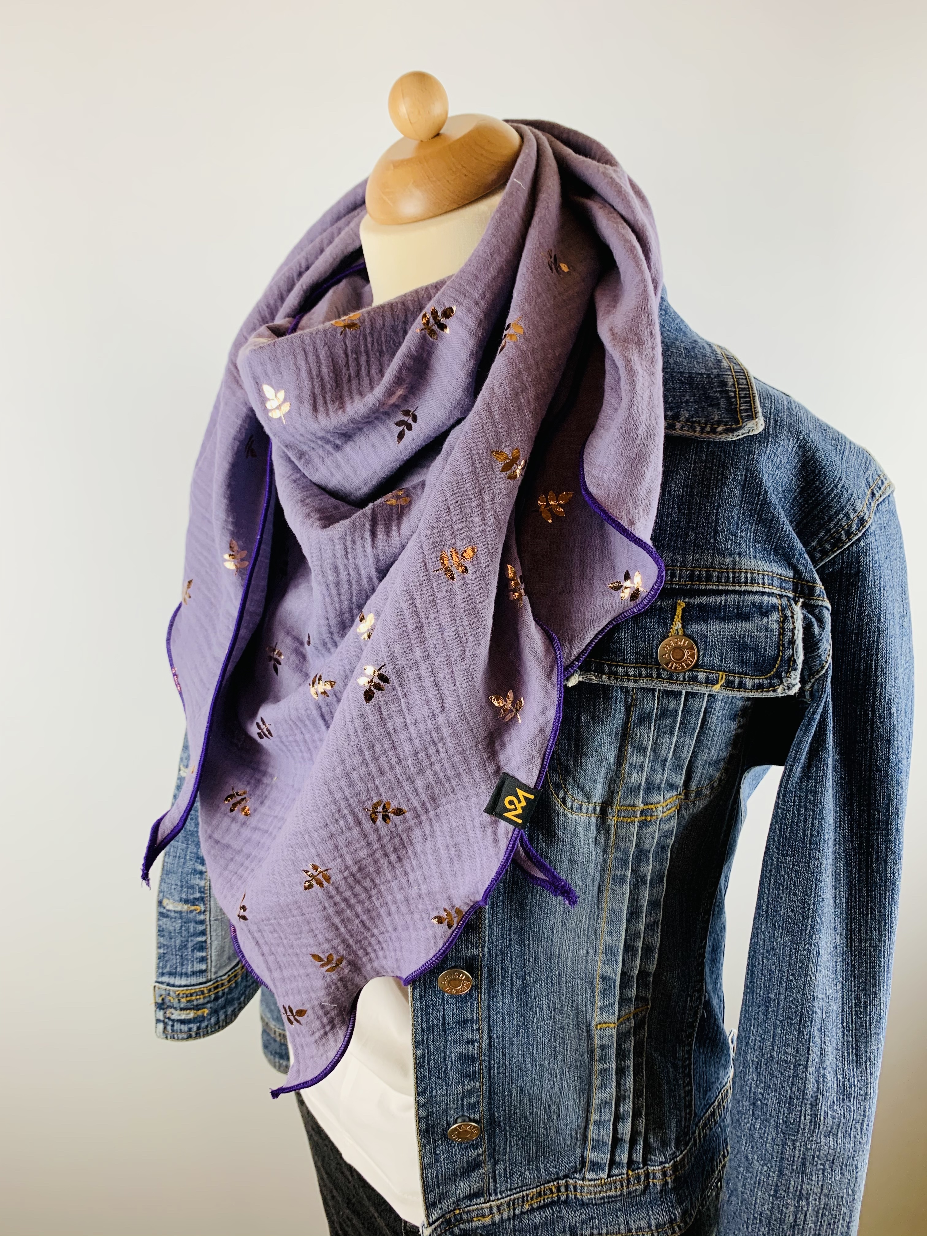 - 100% weiche Musselinbaumwolle in flieder mit glitzer Zweigen