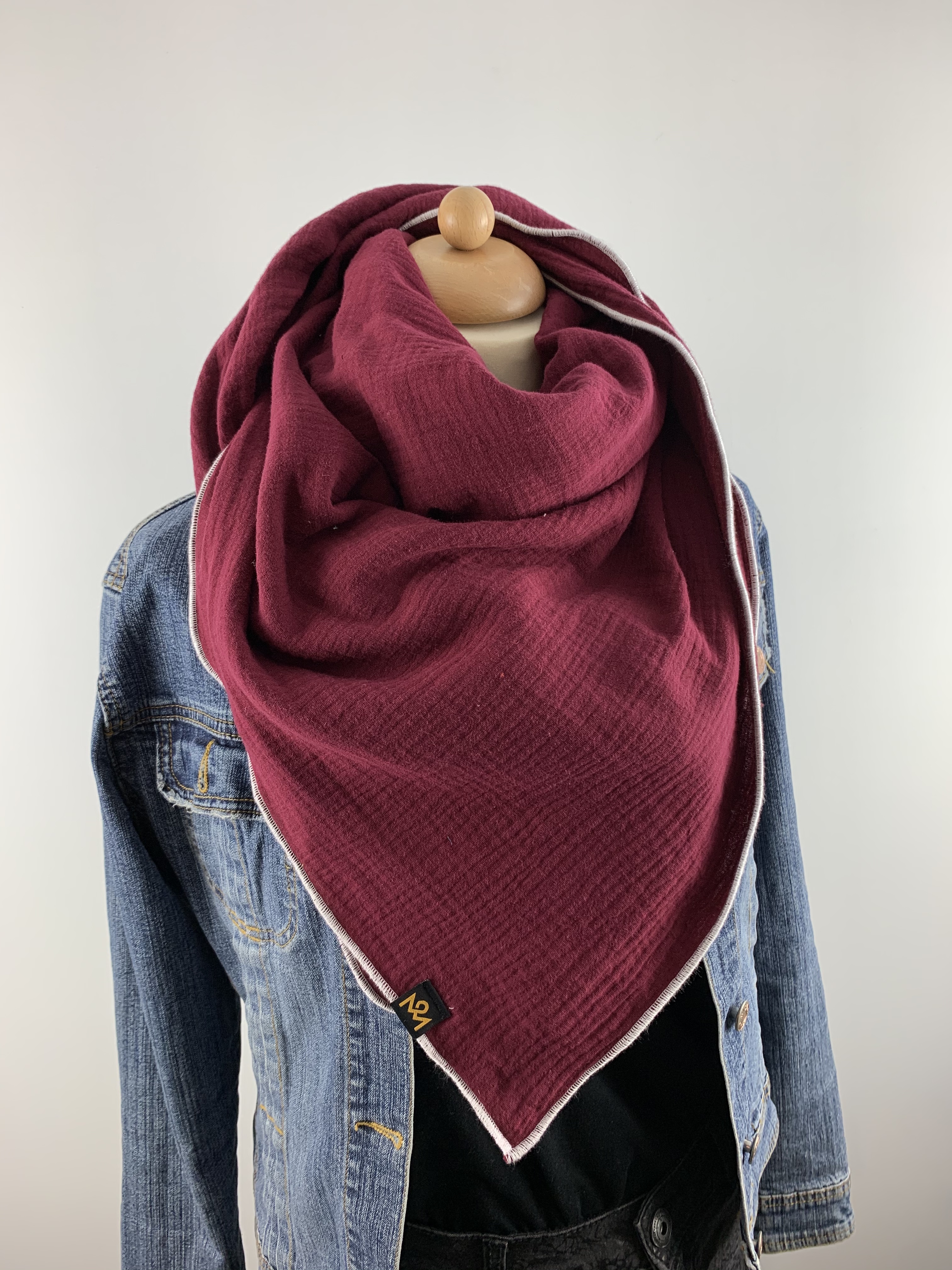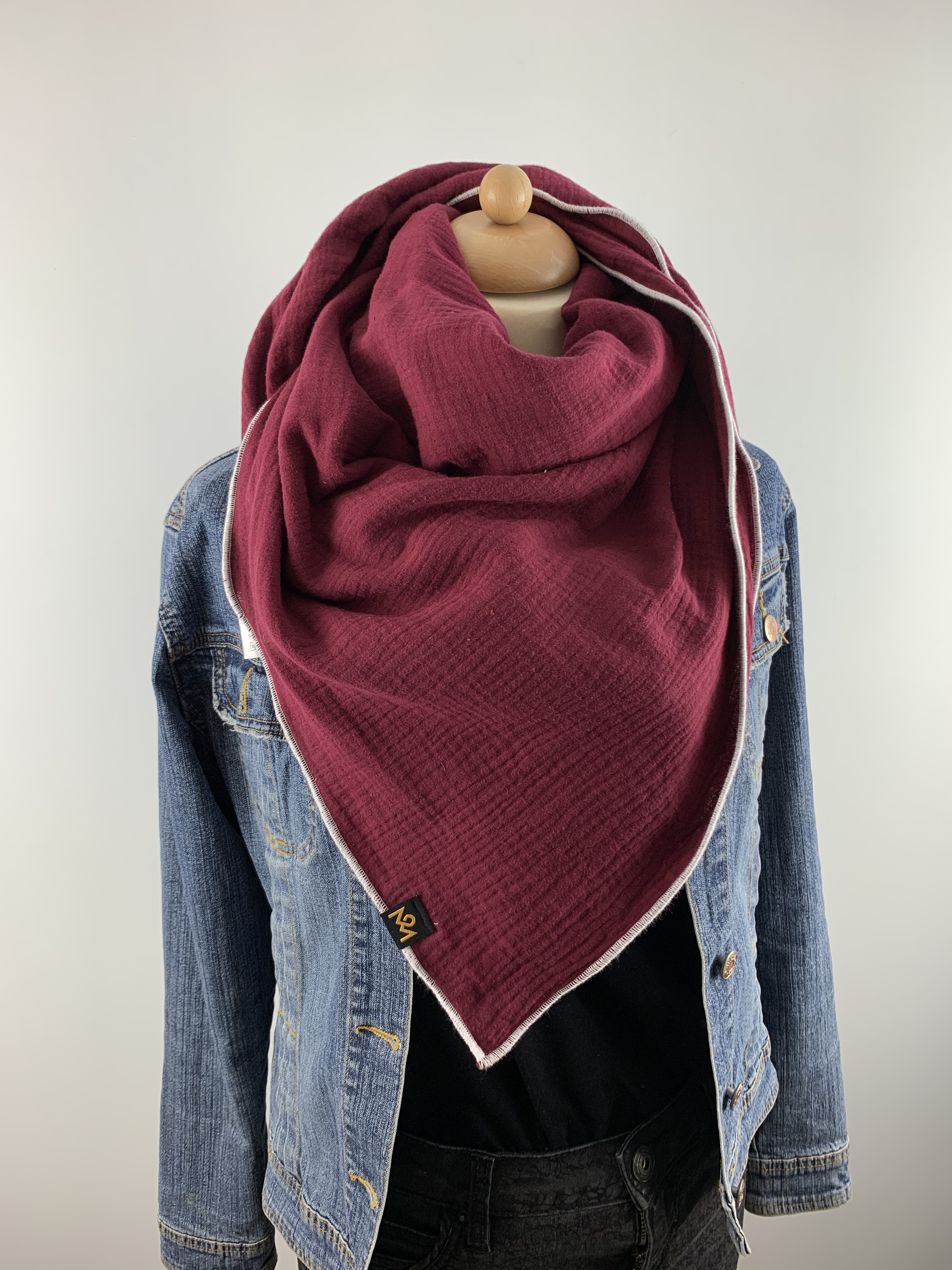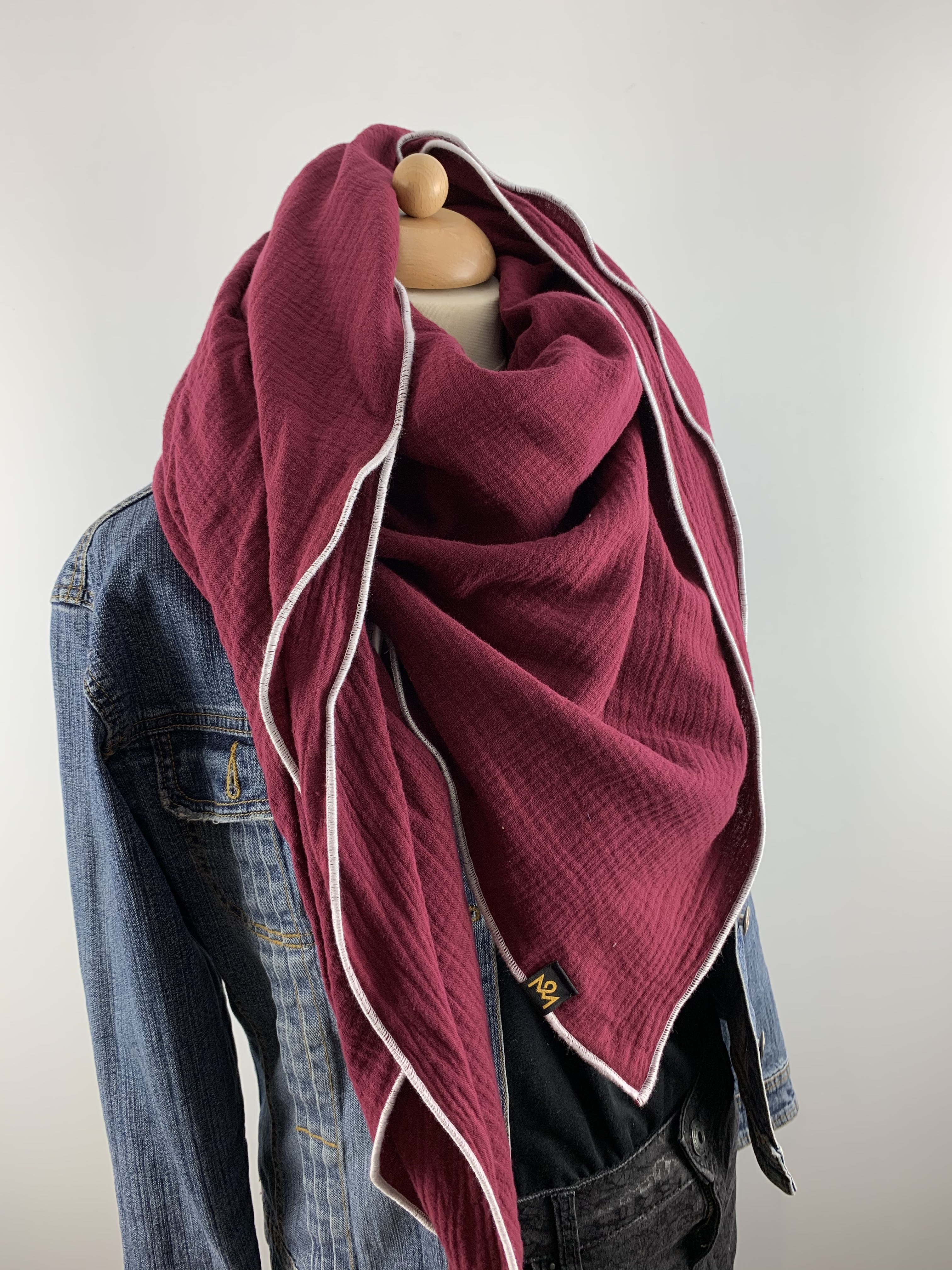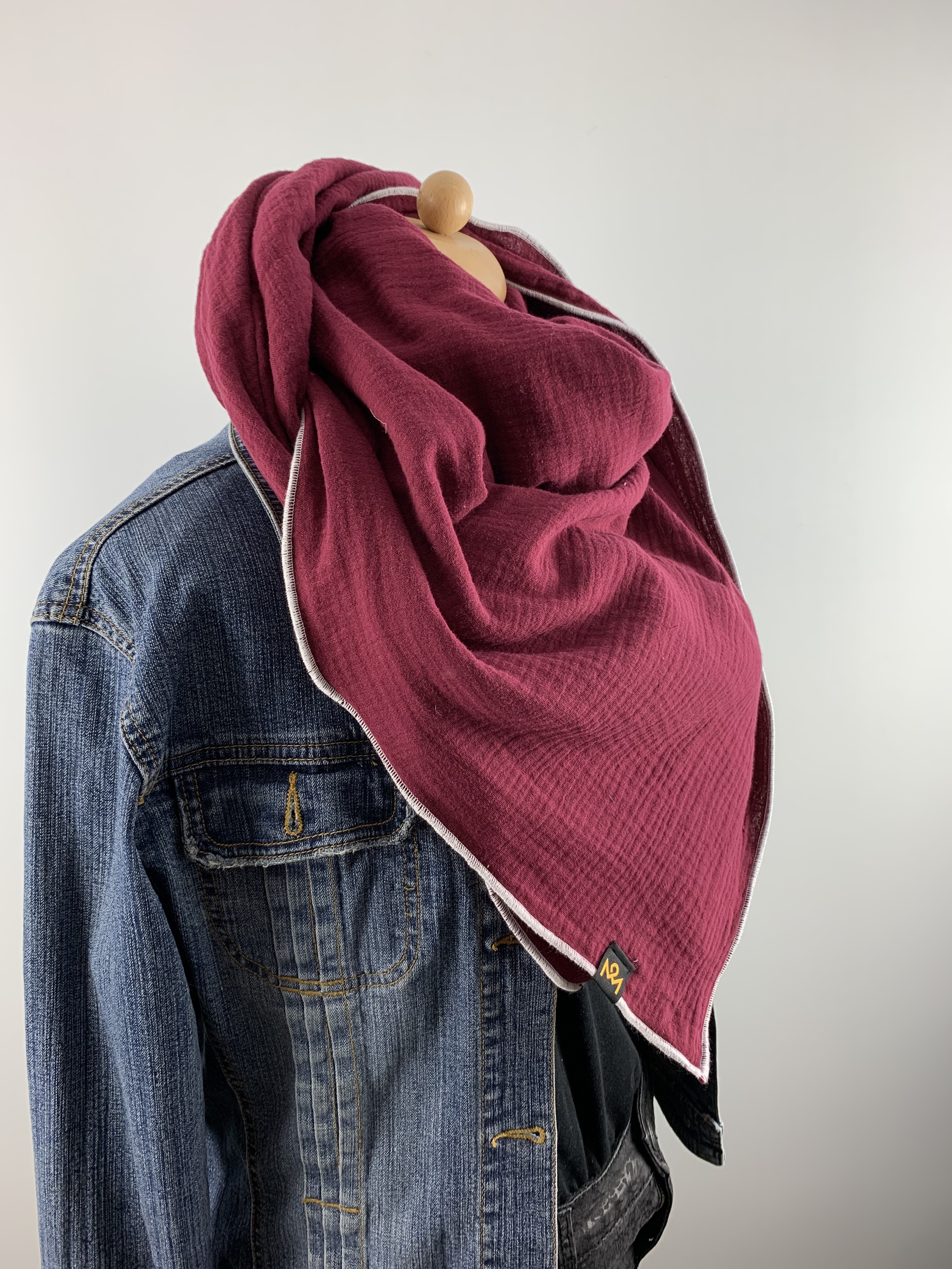 Hochwertiger, doppelt gewebter Schal aus 100 % Baumwollmusselin in der Farbe Weinrot.