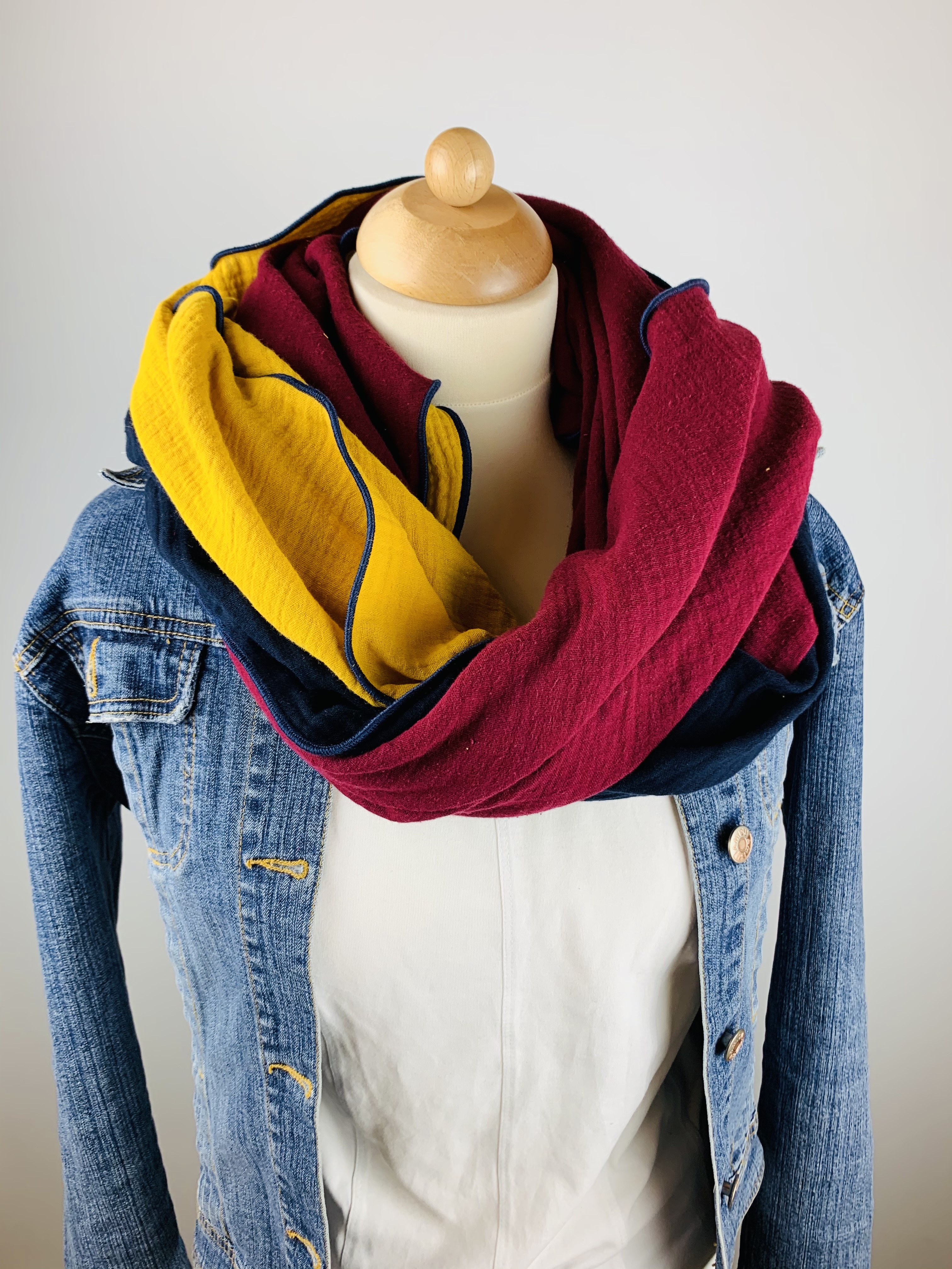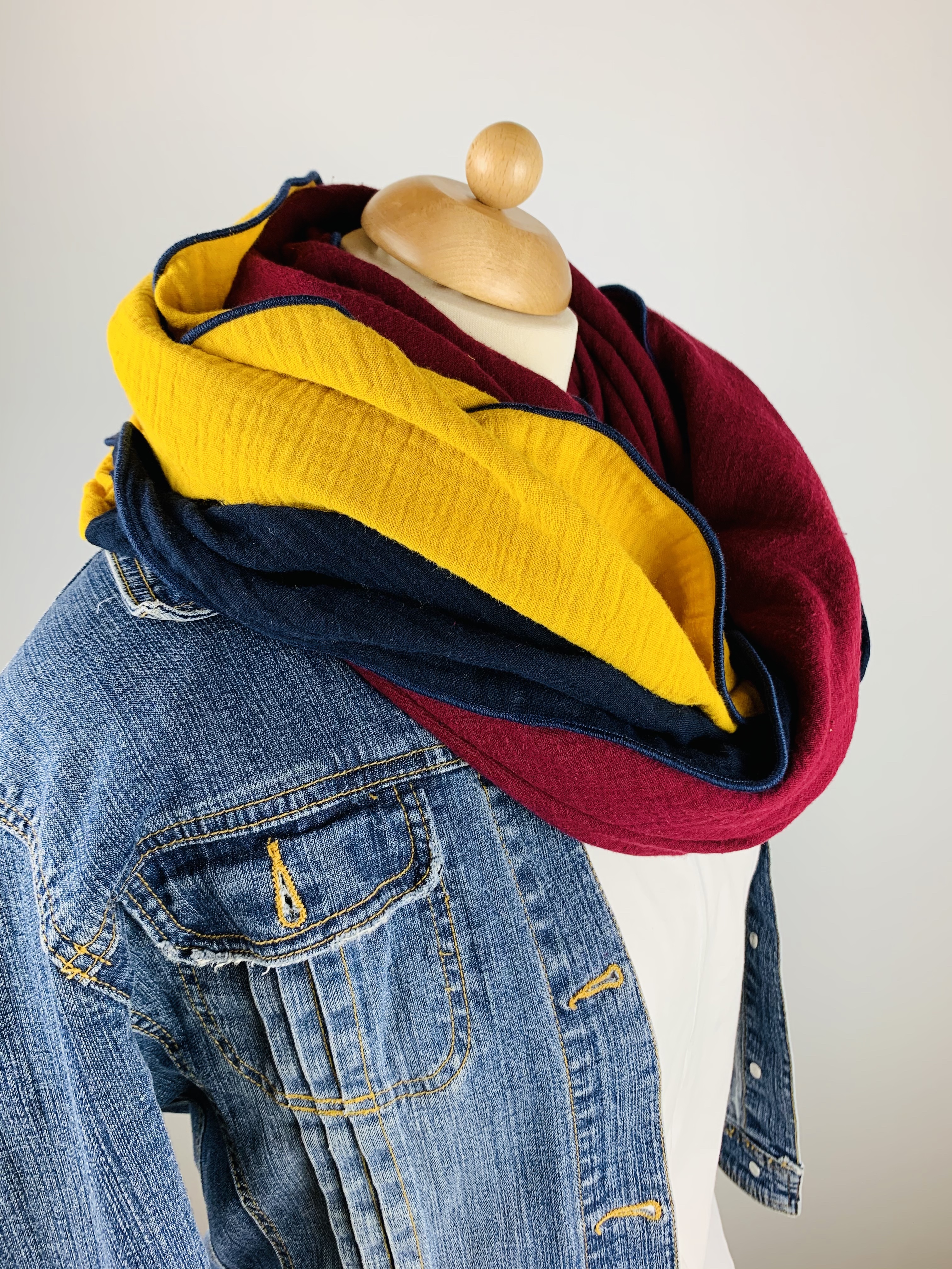 - 100% weiche Musselinbaumwolle in bordeaux, senfgelb und dunkelblau