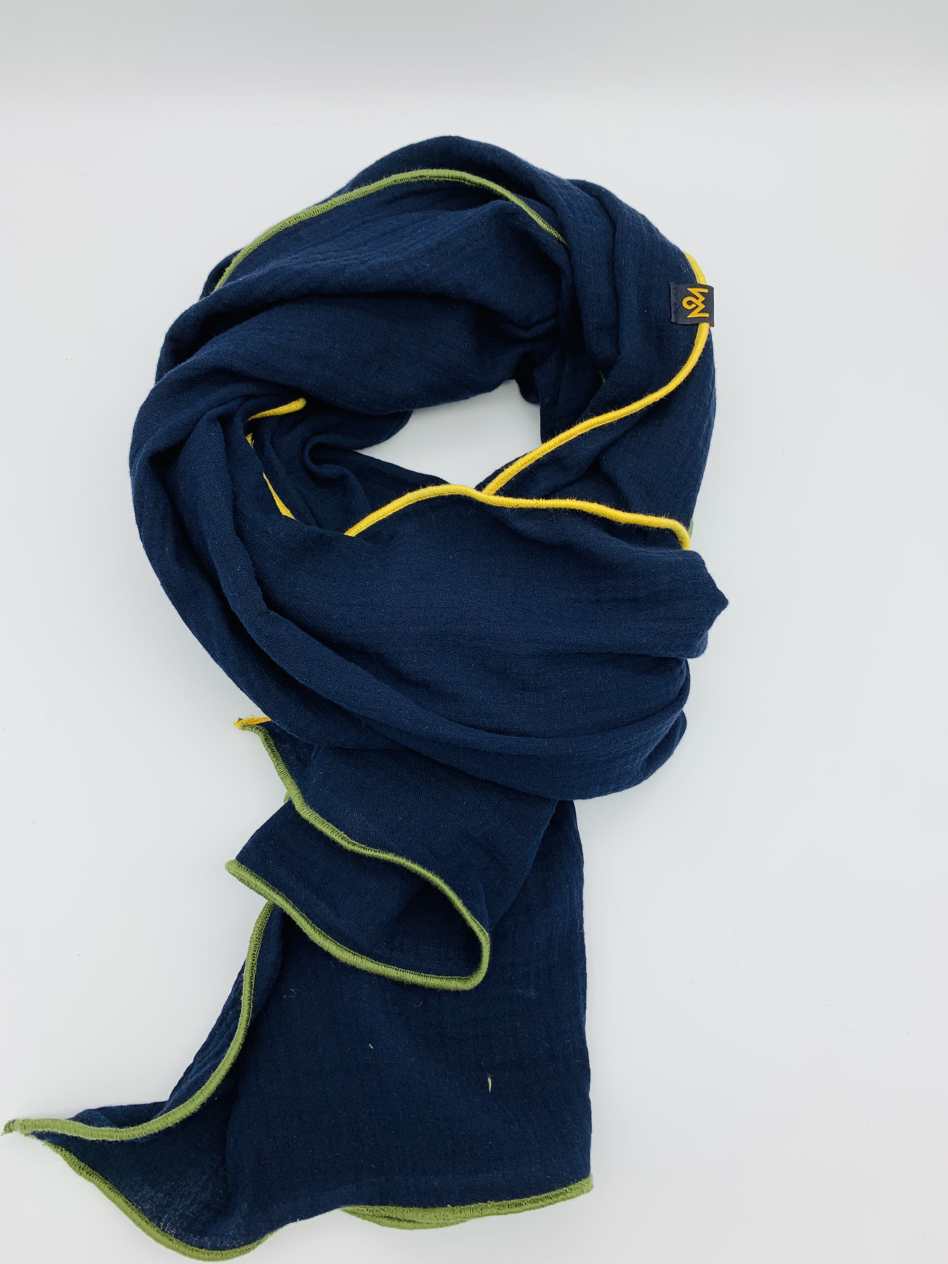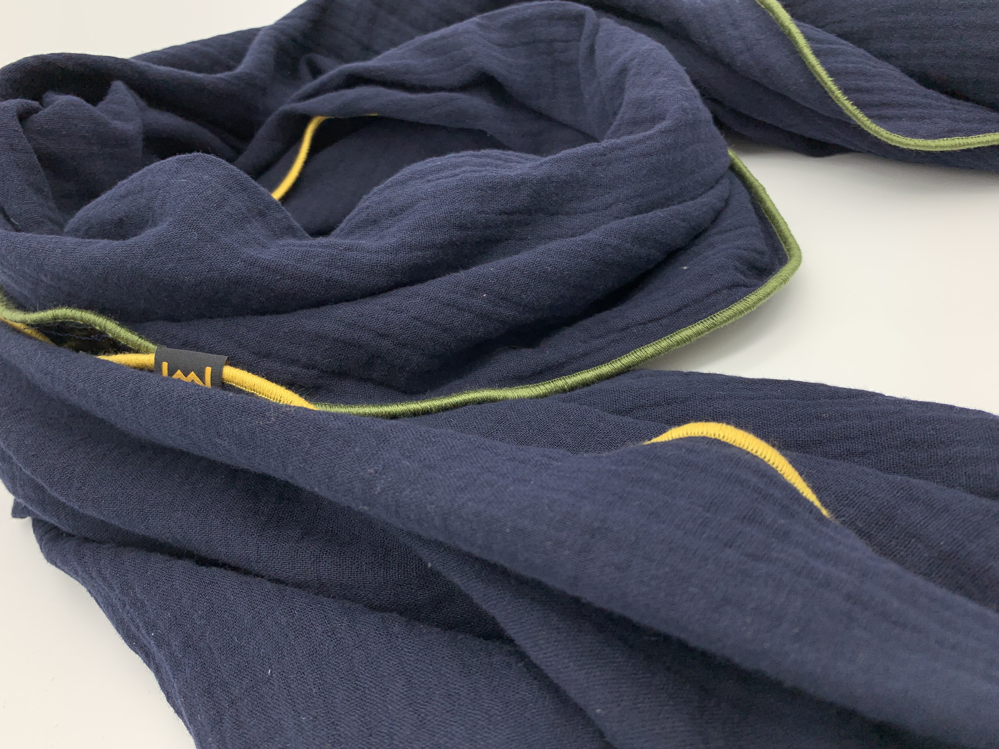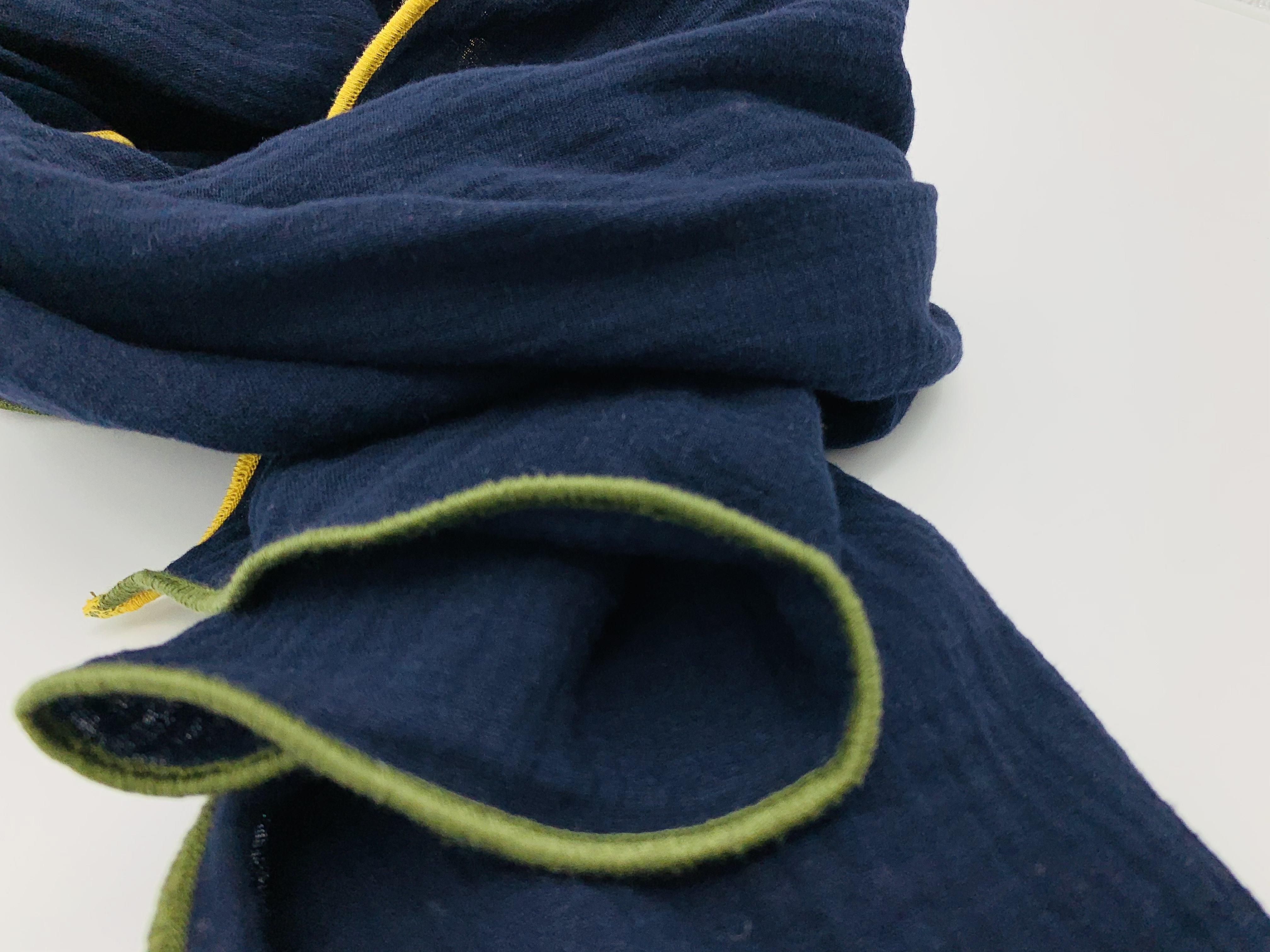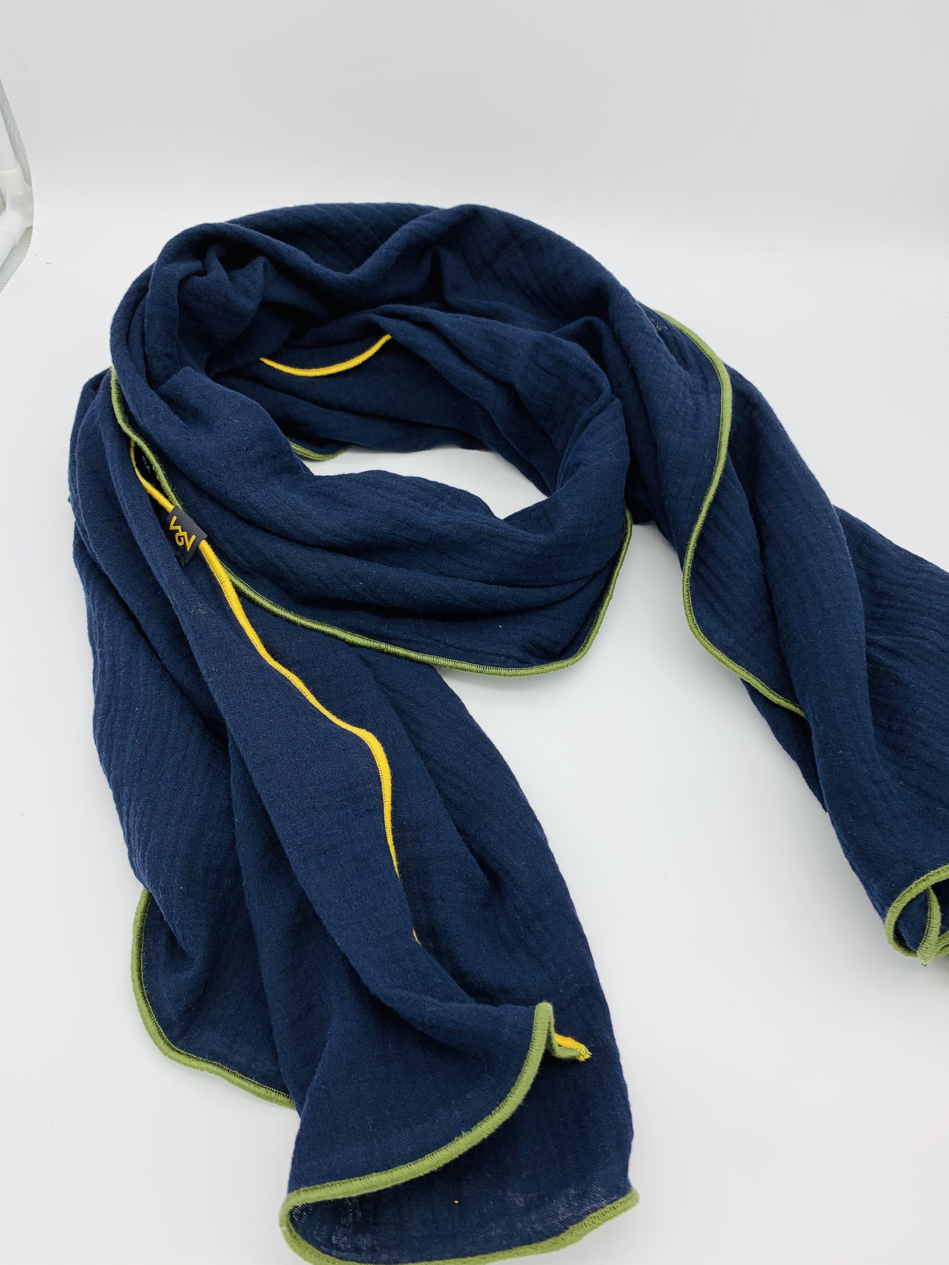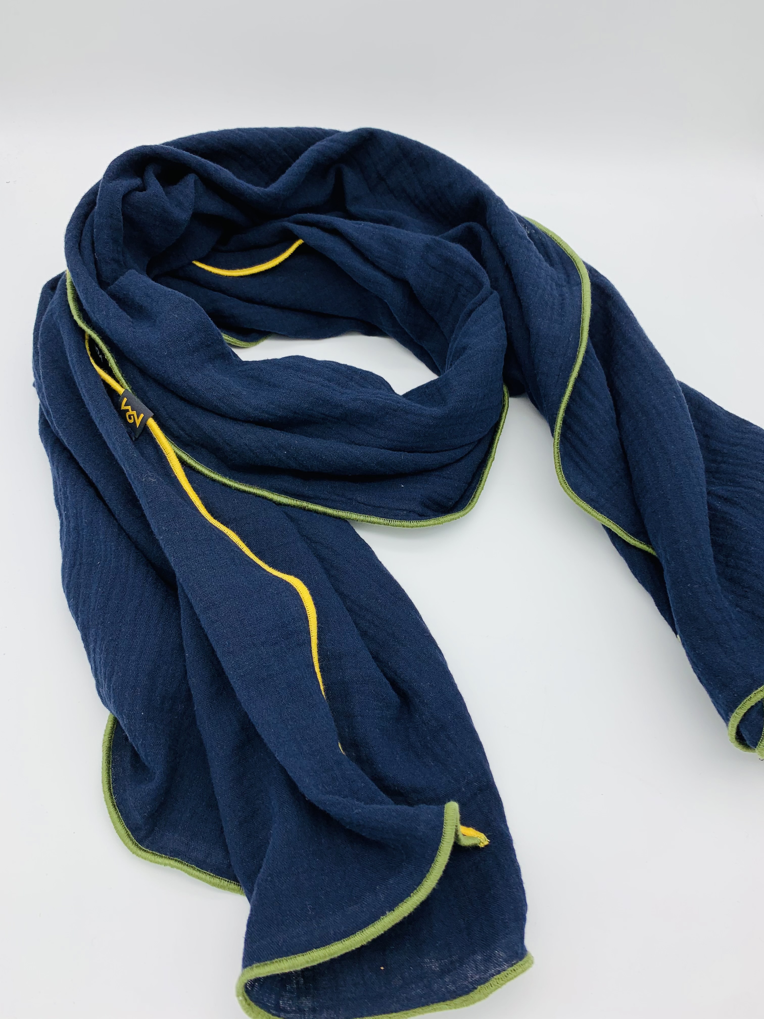 Hochwertiger, doppelt gewebter Schal aus 100 % Baumwollmusselin in der Farbe dunkelblau