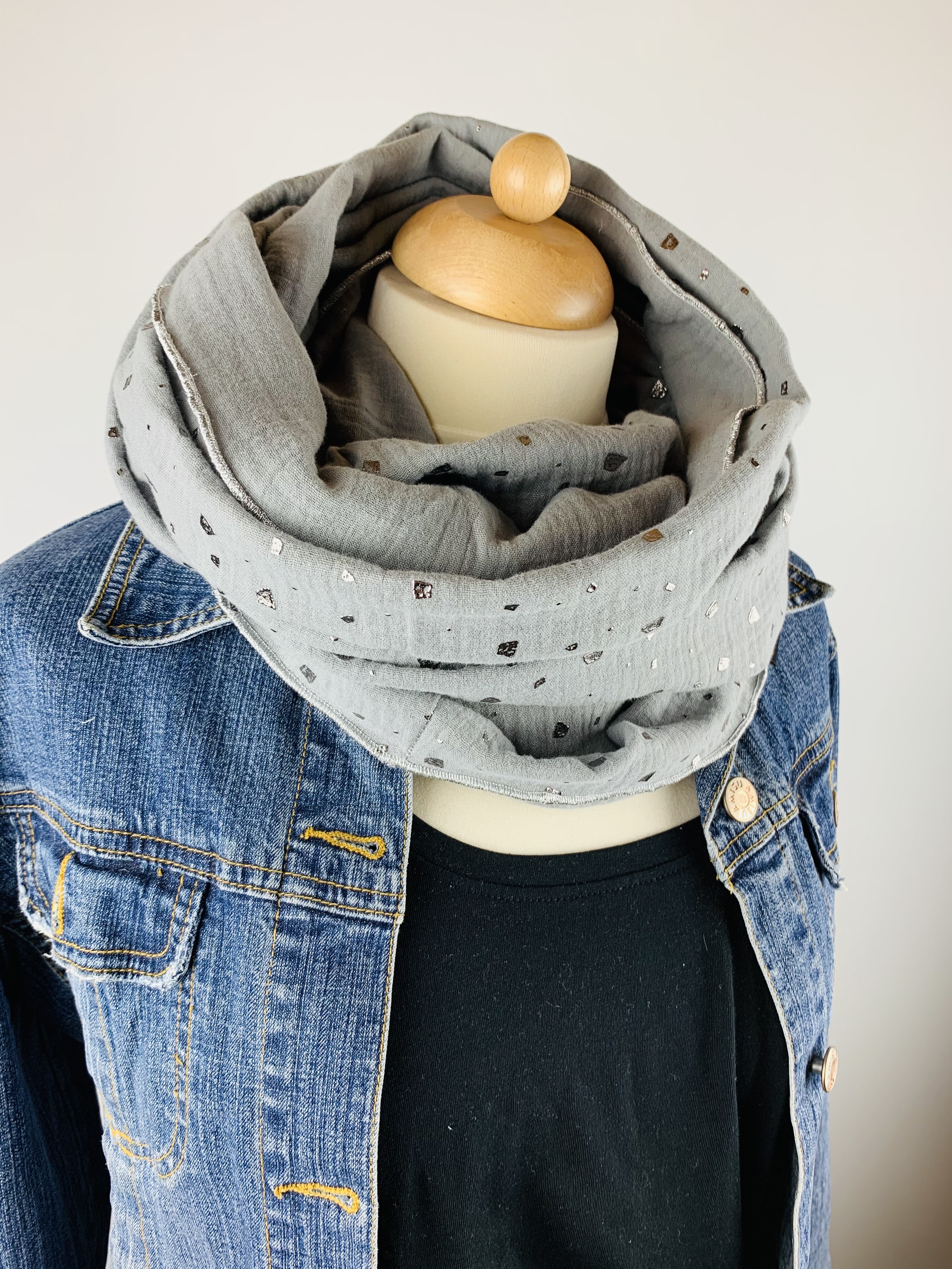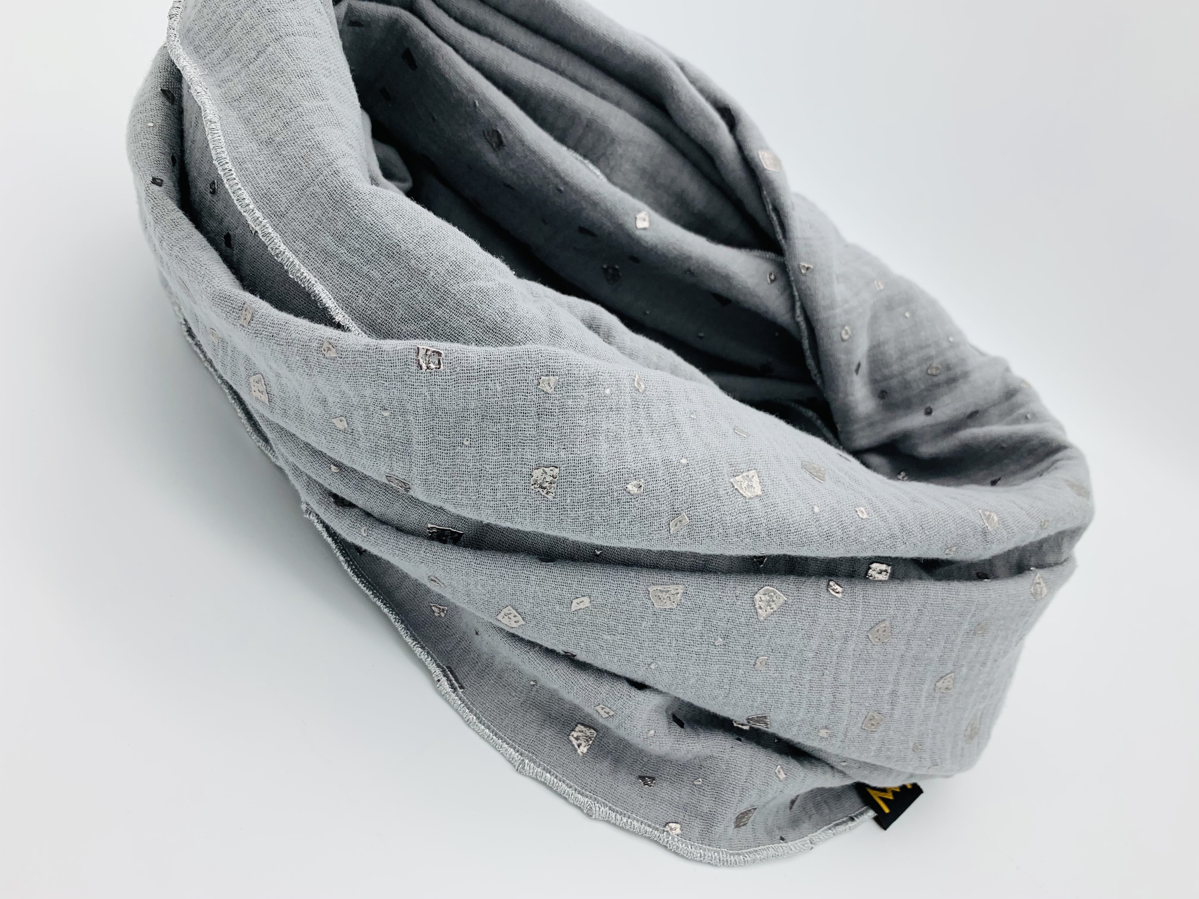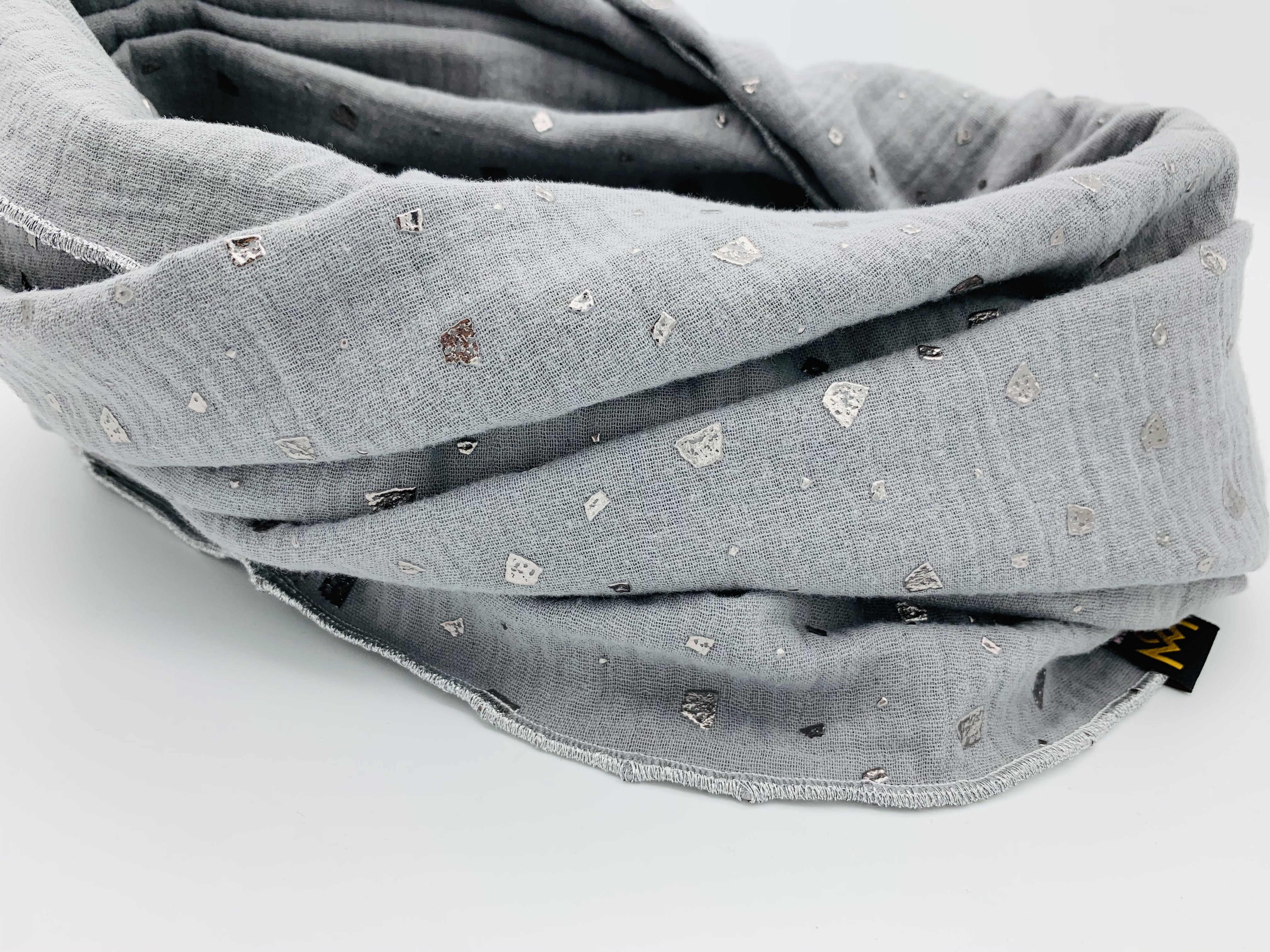 Hochwertiger, doppelt gewebter Schlauchschal aus 100 % Baumwollmusselin in der Farbe grau / silber