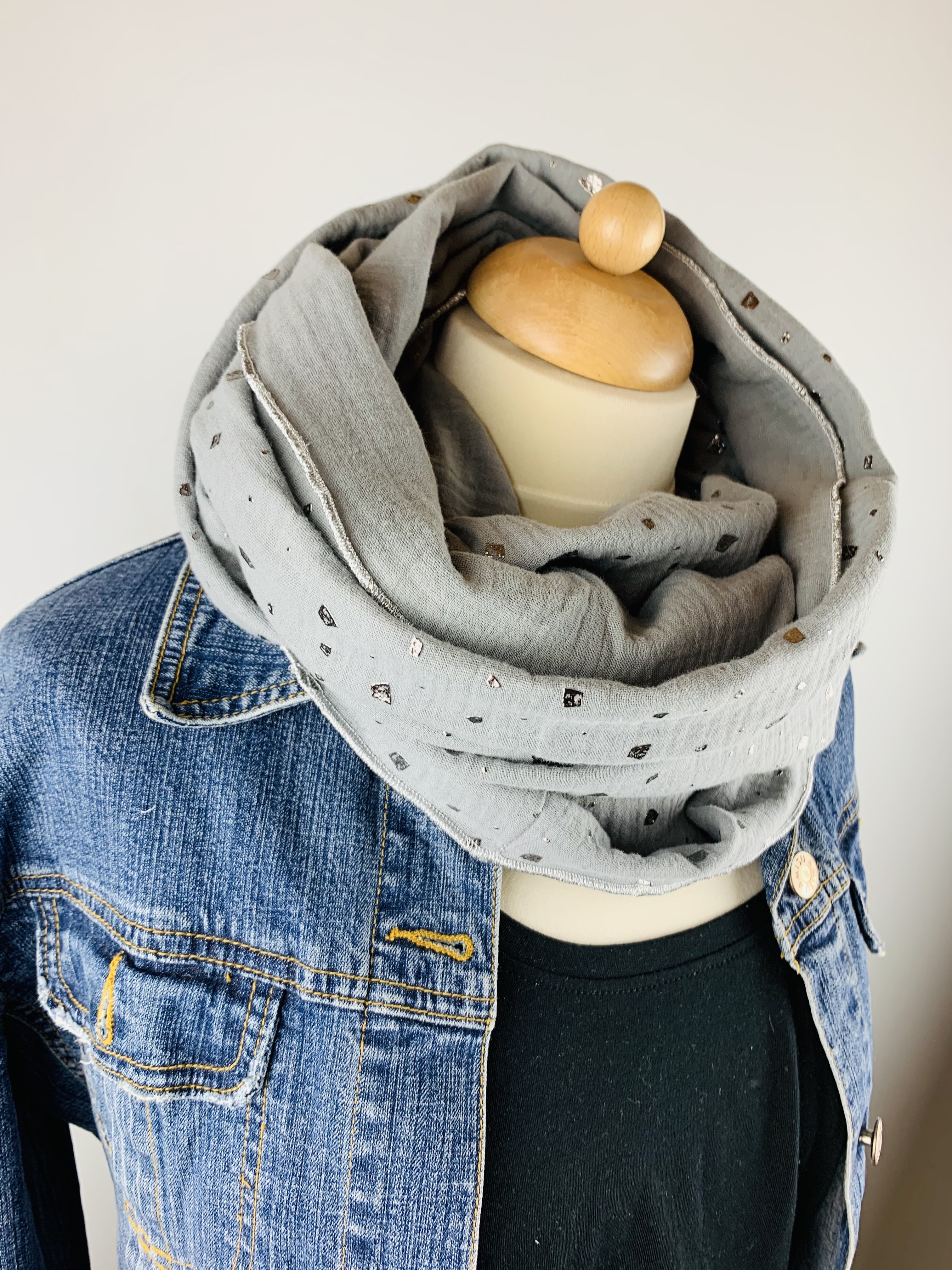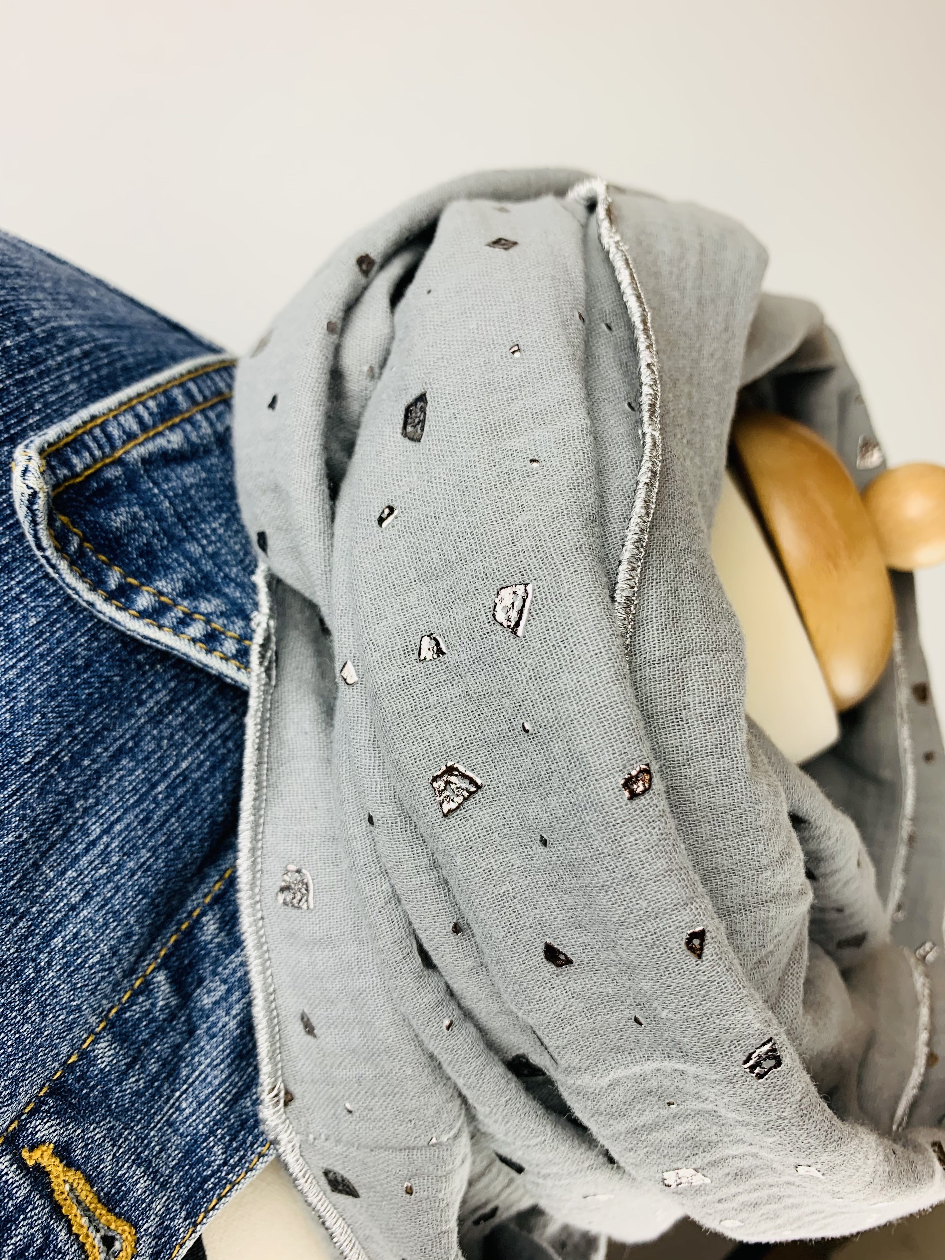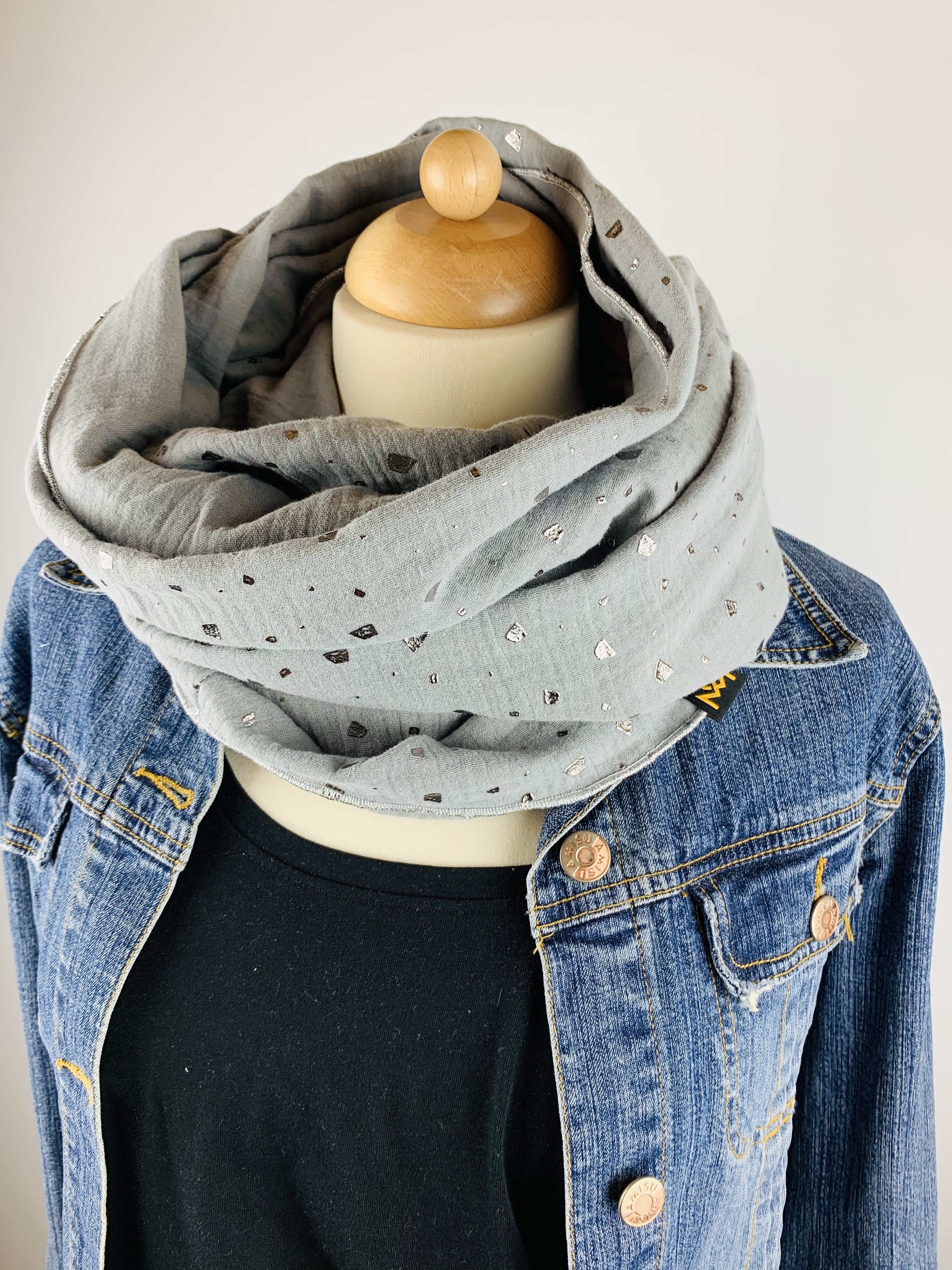 Hochwertiger, doppelt gewebter Schlauchschal aus 100 % Baumwollmusselin in der Farbe grau / silber