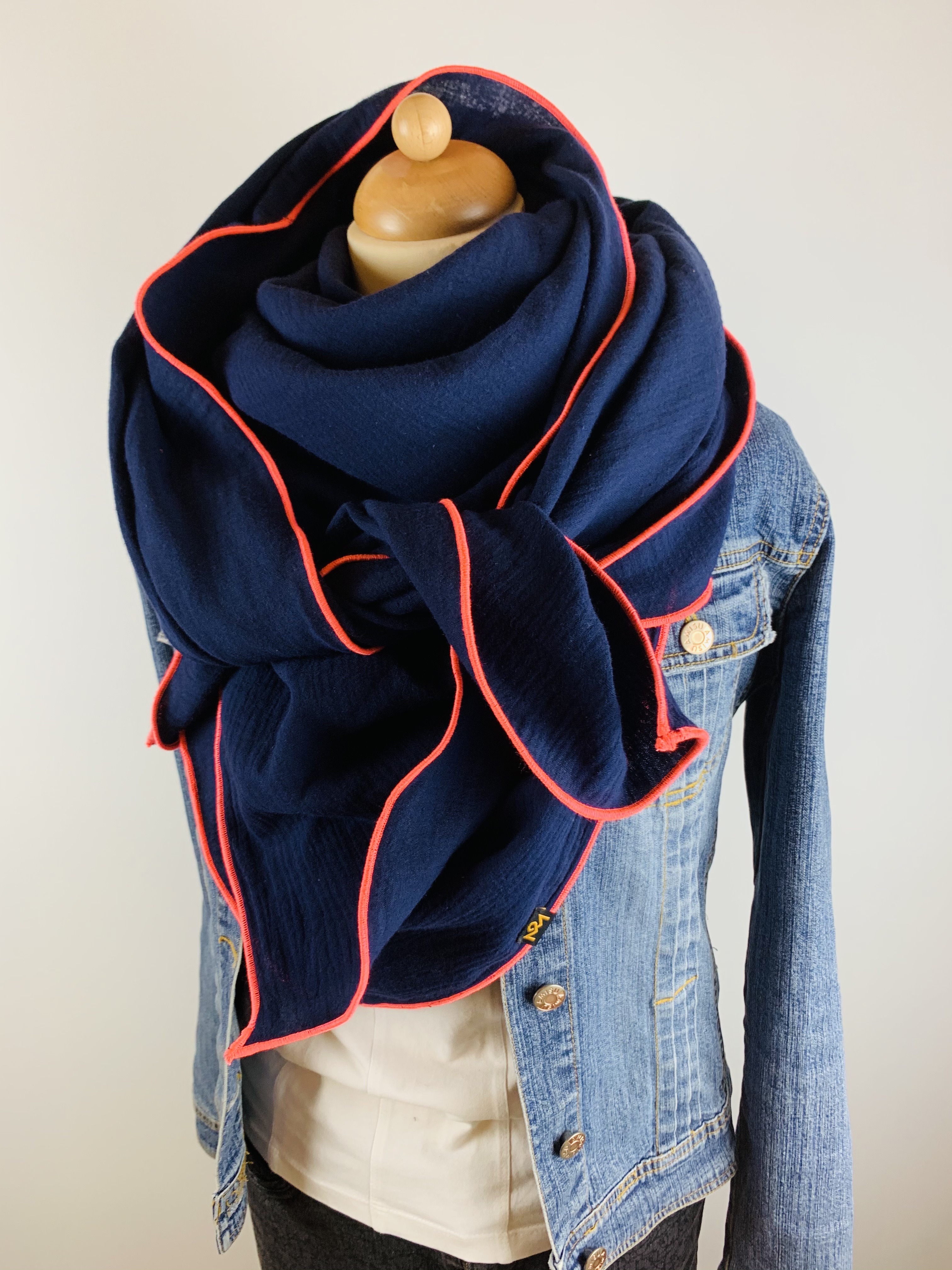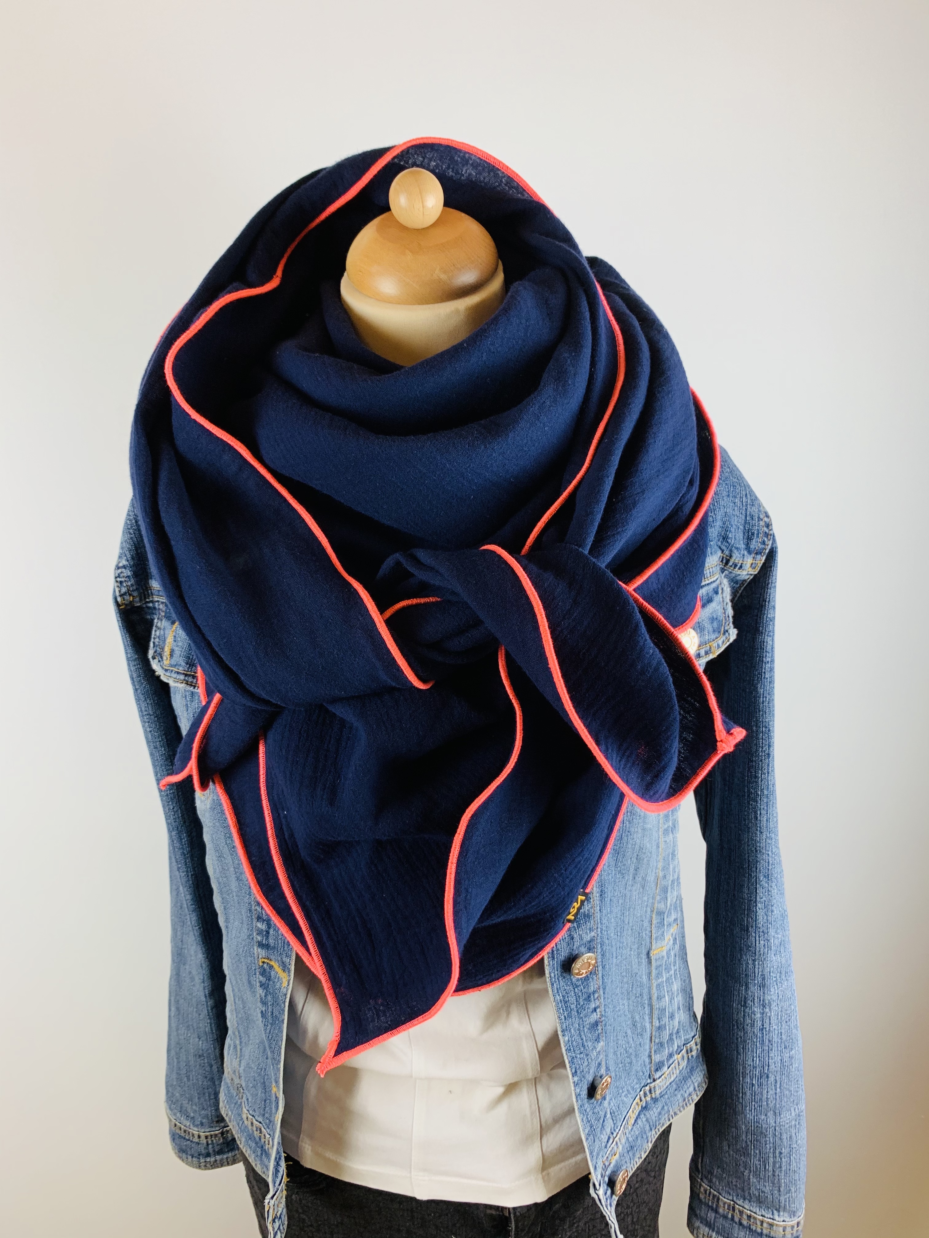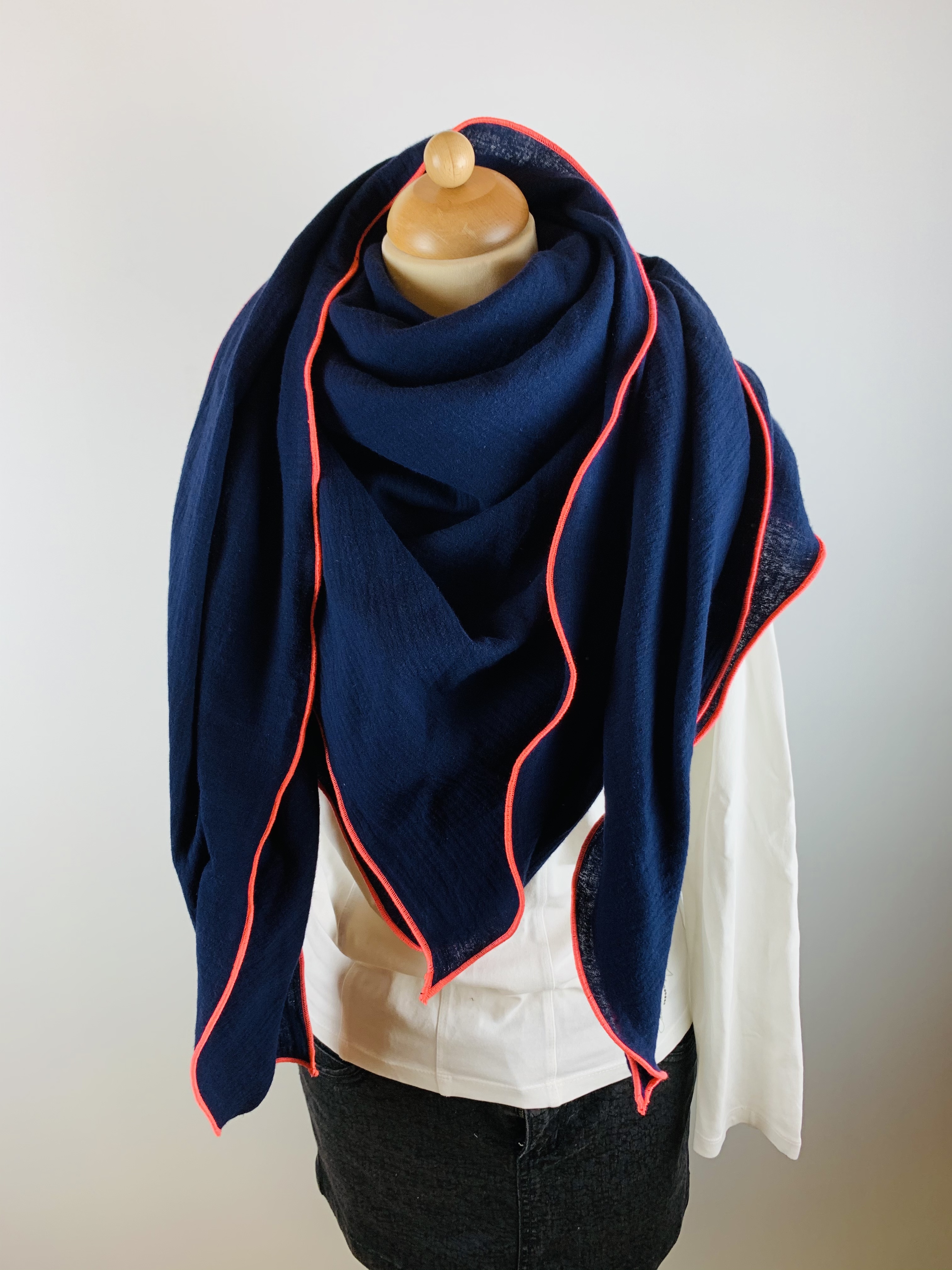 Dieser hochwertige, doppelt gewebte Schal aus 100 % Baumwollmusselin wurde in marineblau gefertigt.