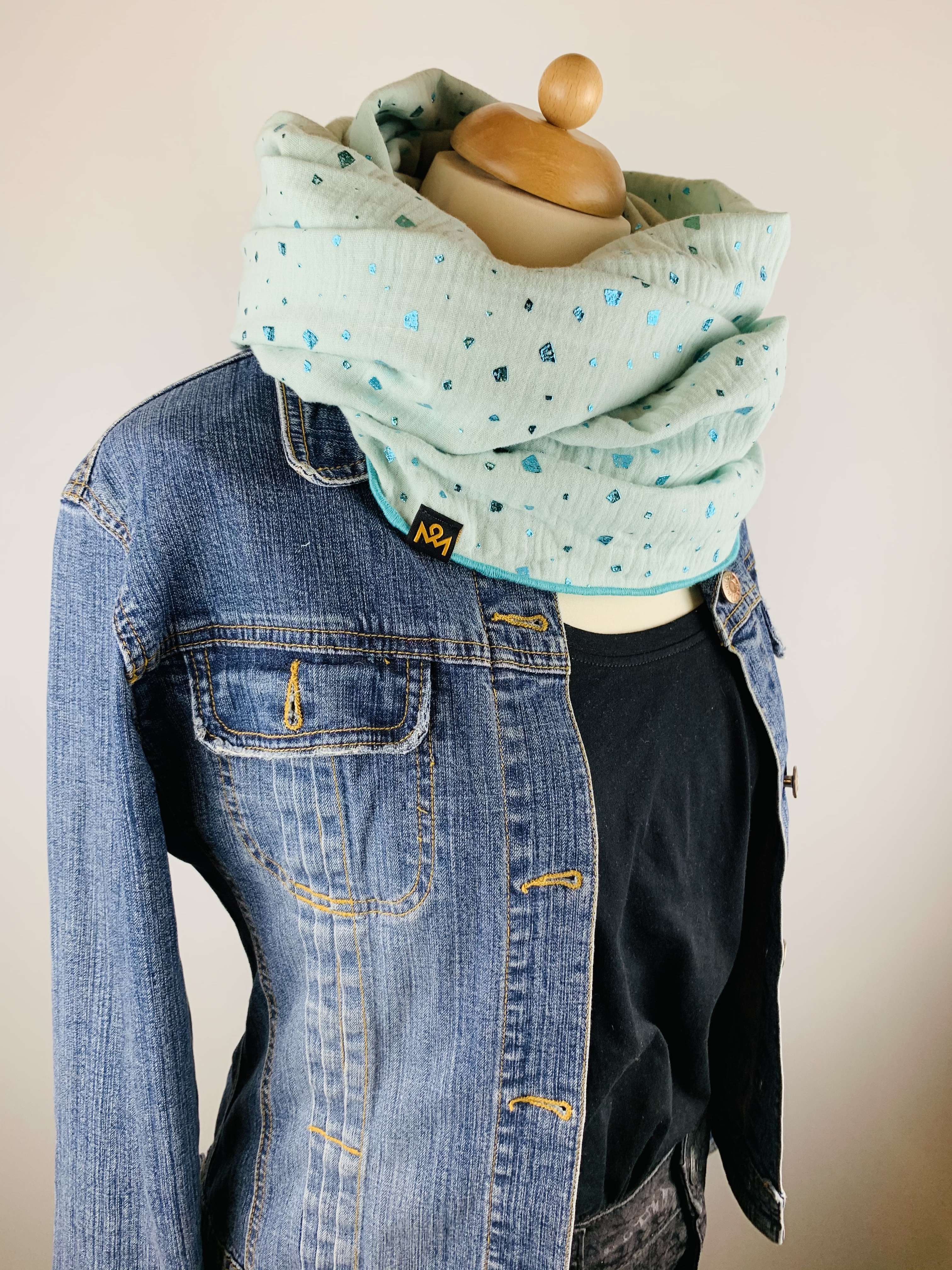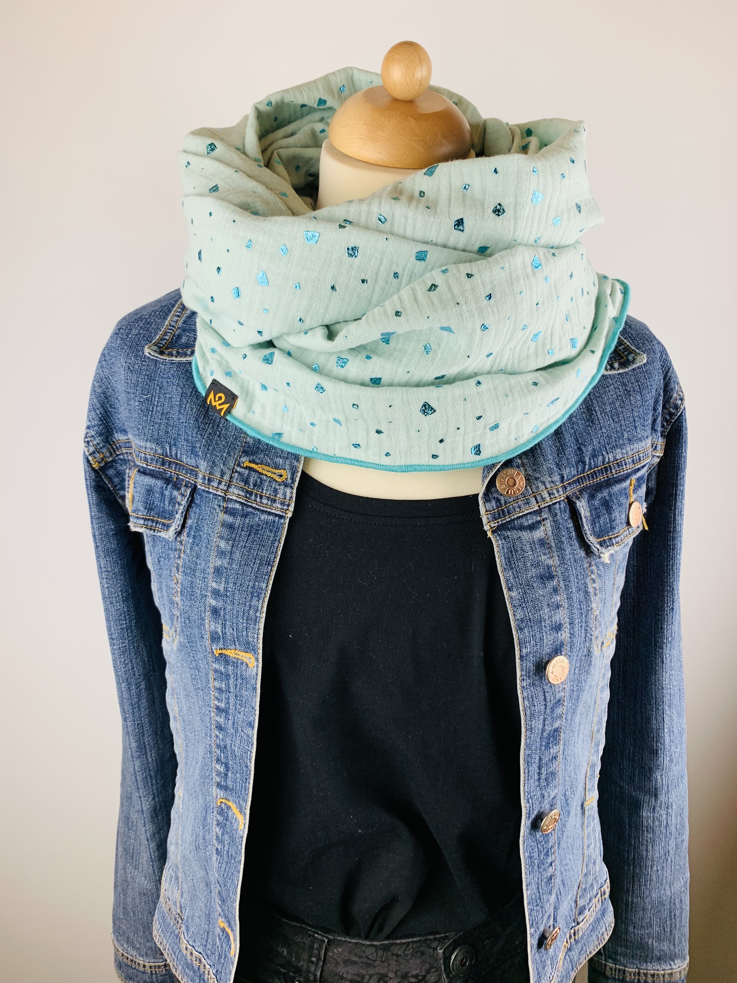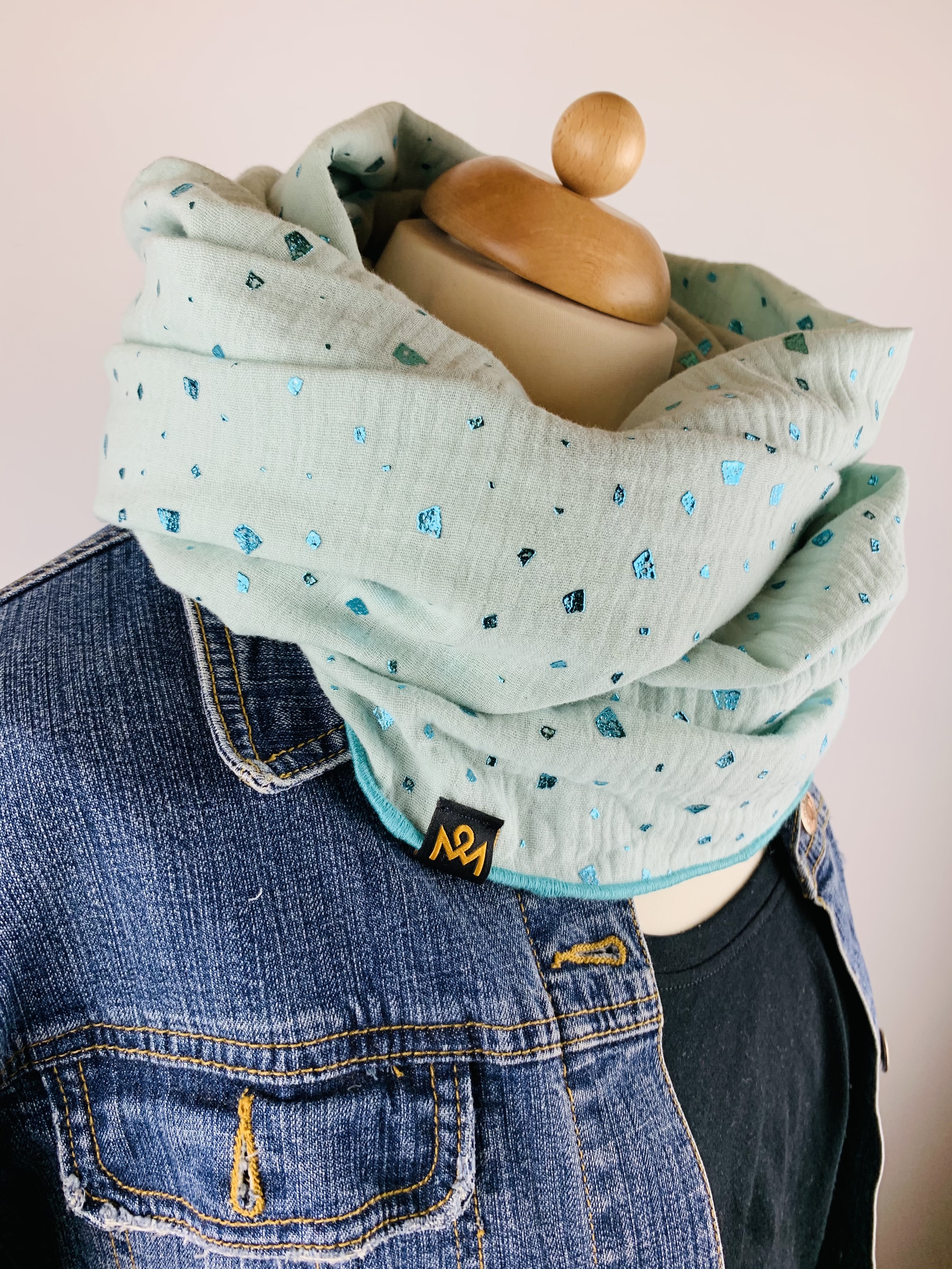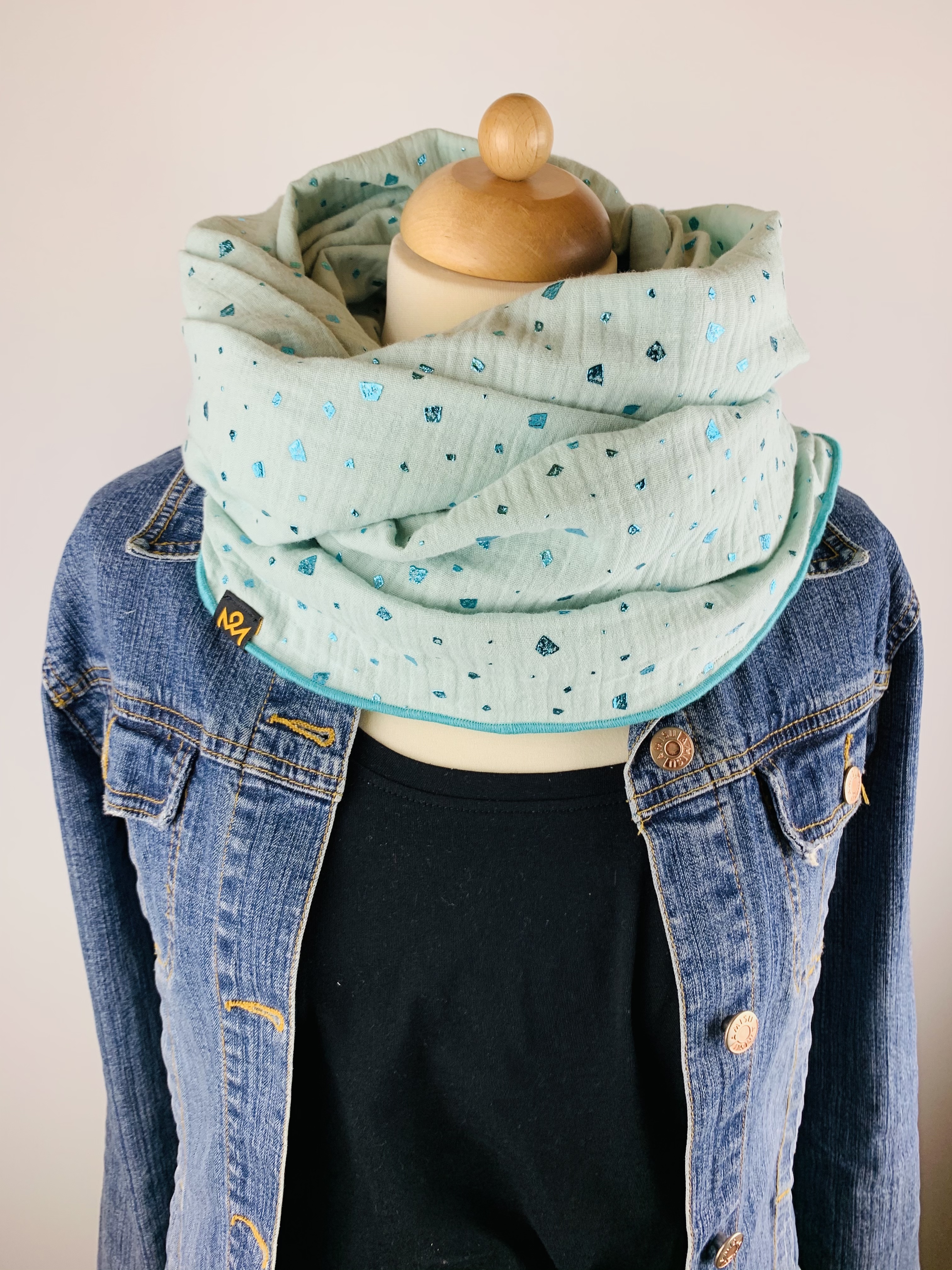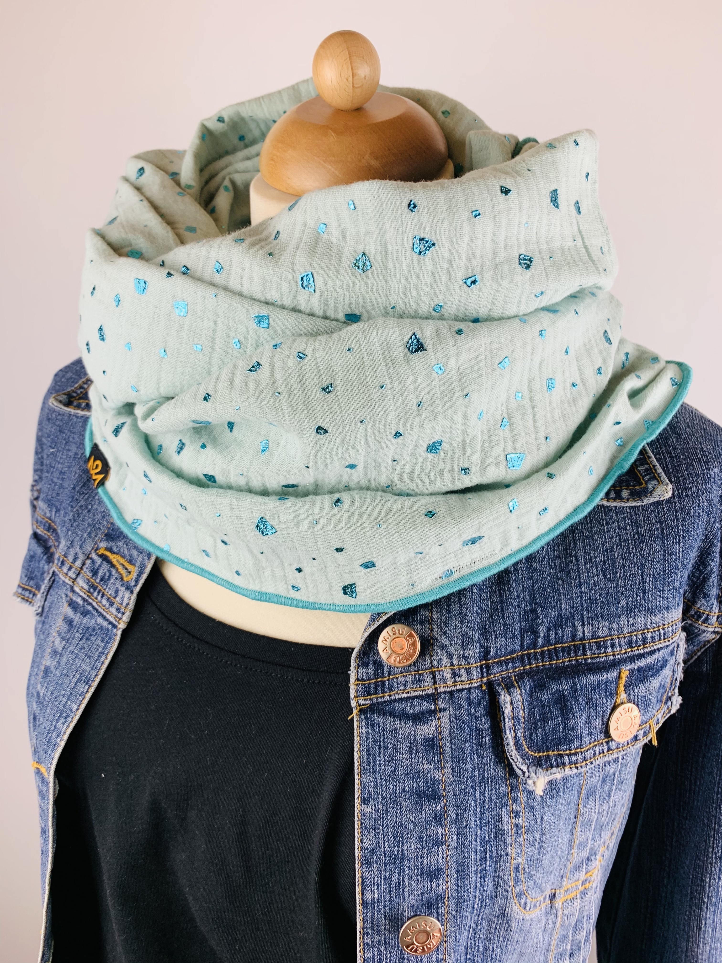 Hochwertiger, doppelt gewebter Schlauchschal aus 100 % Baumwollmusselin in der Farbe mint