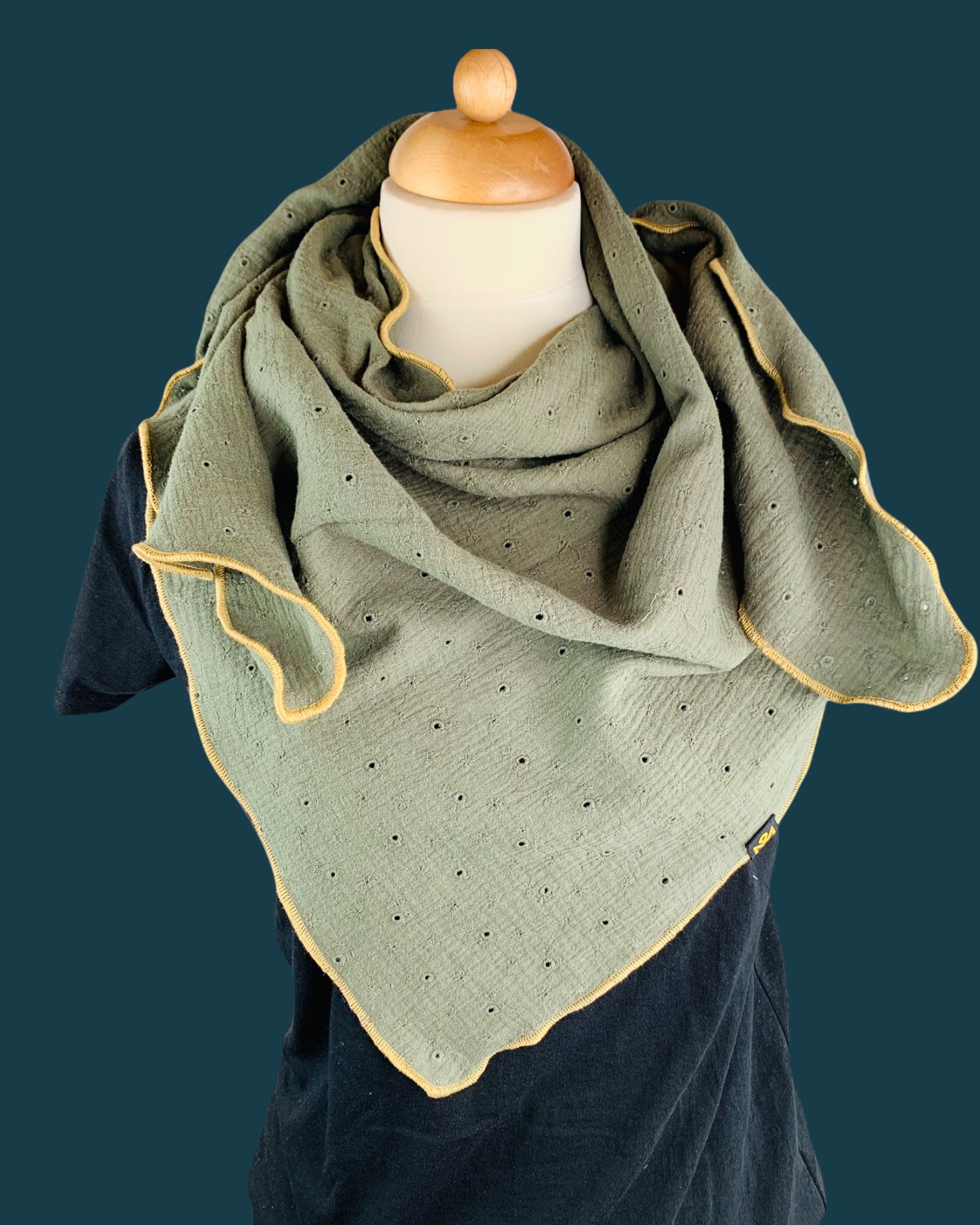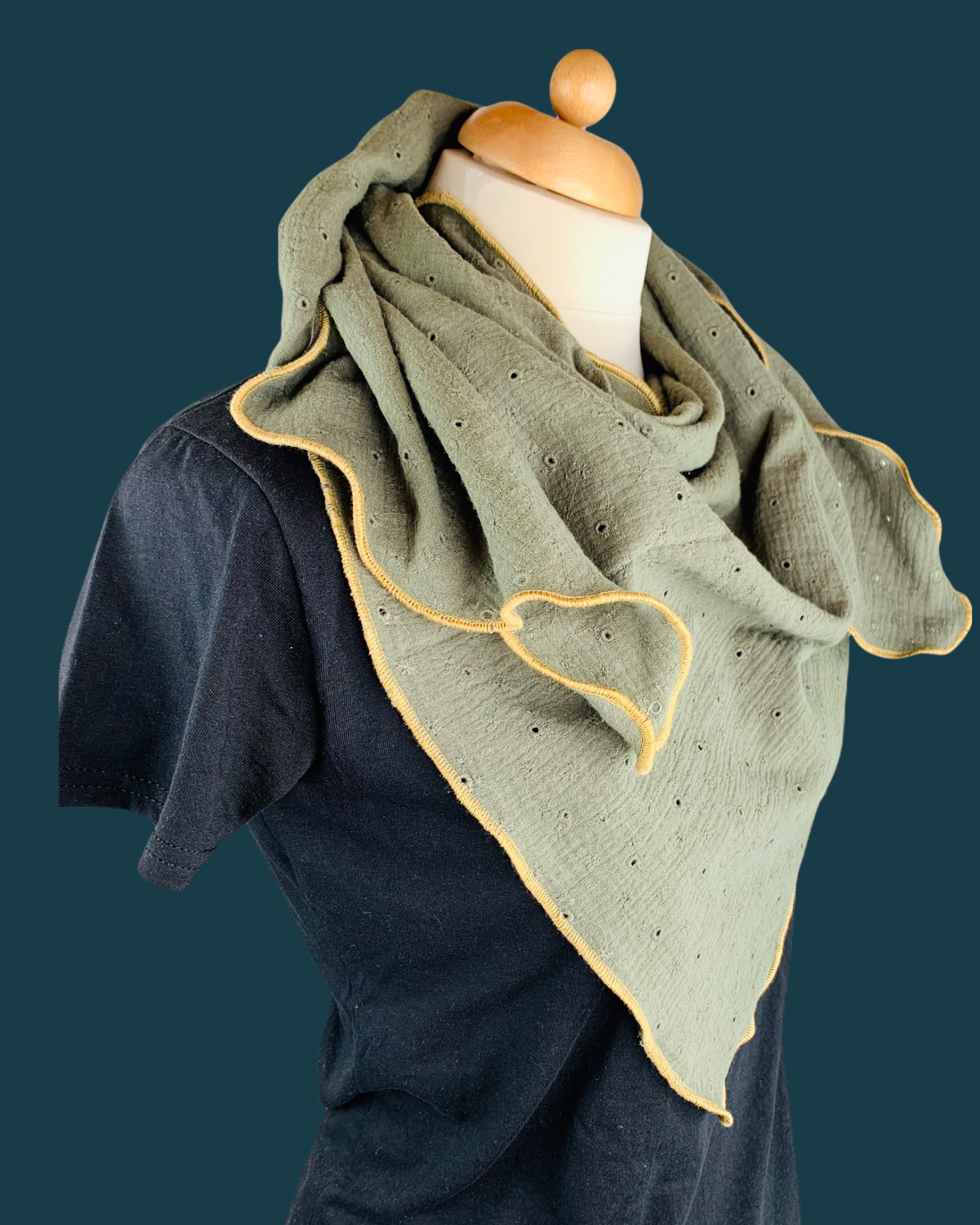 Der Schal besteht aus einem glatten, lockeren und feinfädigen Musselinbaumwollstoff.