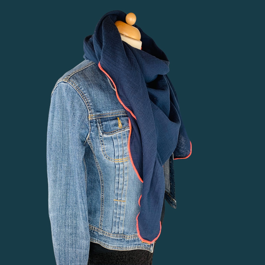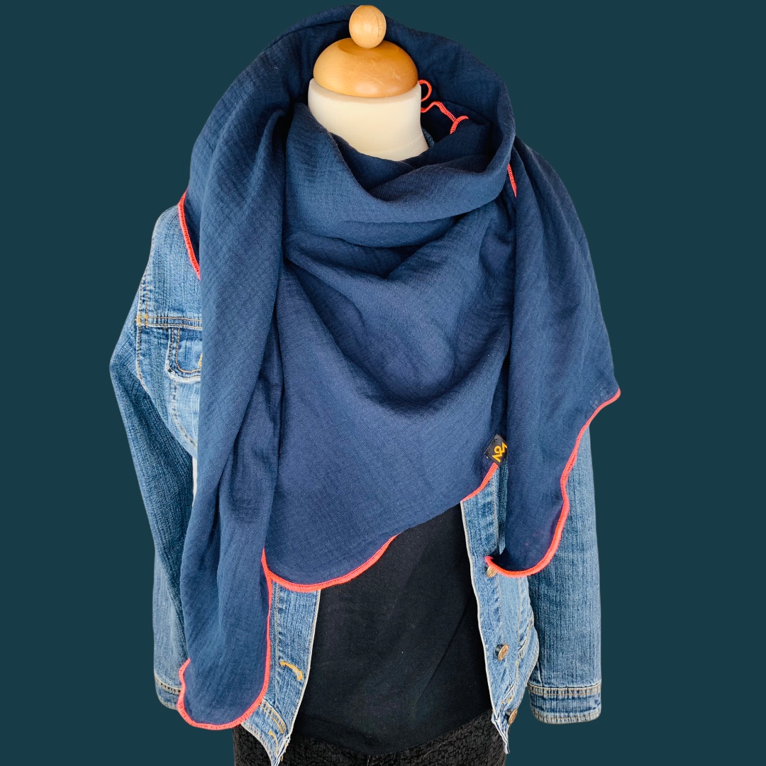 Dieses hochwertige, doppelt gewebte Tuch aus 100% Baumwollmusselin wurde in der Farbe "Marineblau" gefertigt.