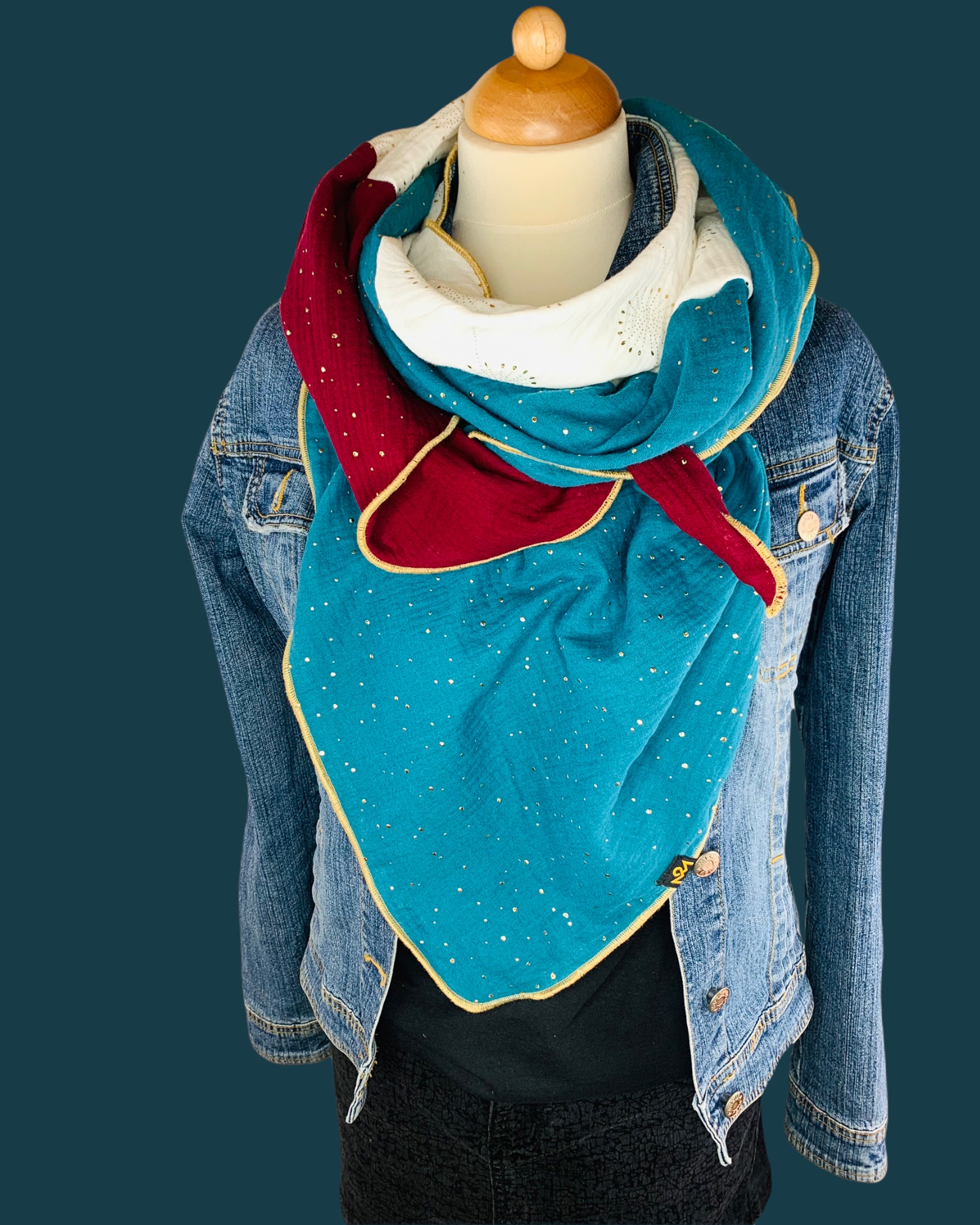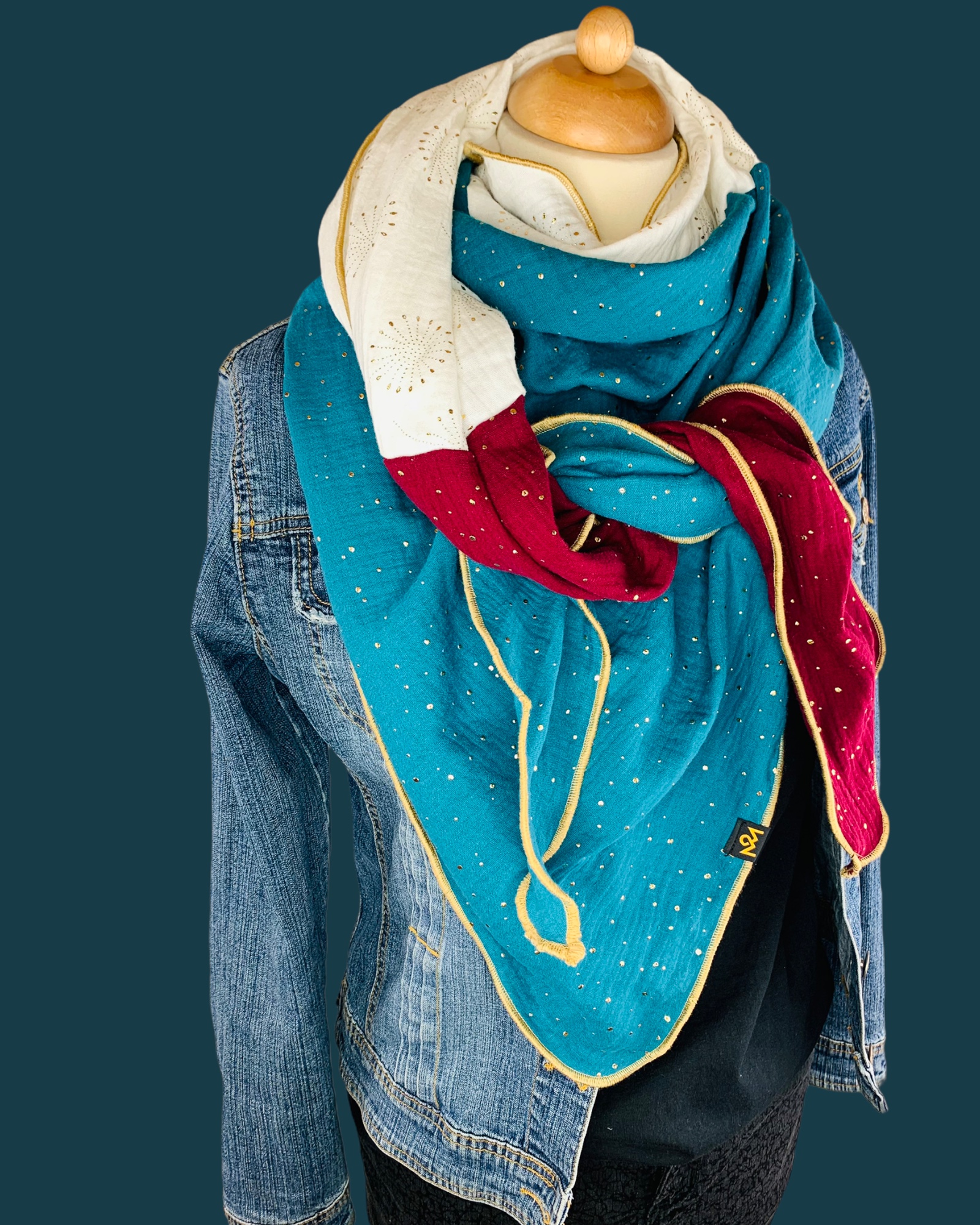 Der Schal besteht aus einem glatten, lockeren und feinfädigen Musselinbaumwollstoff.