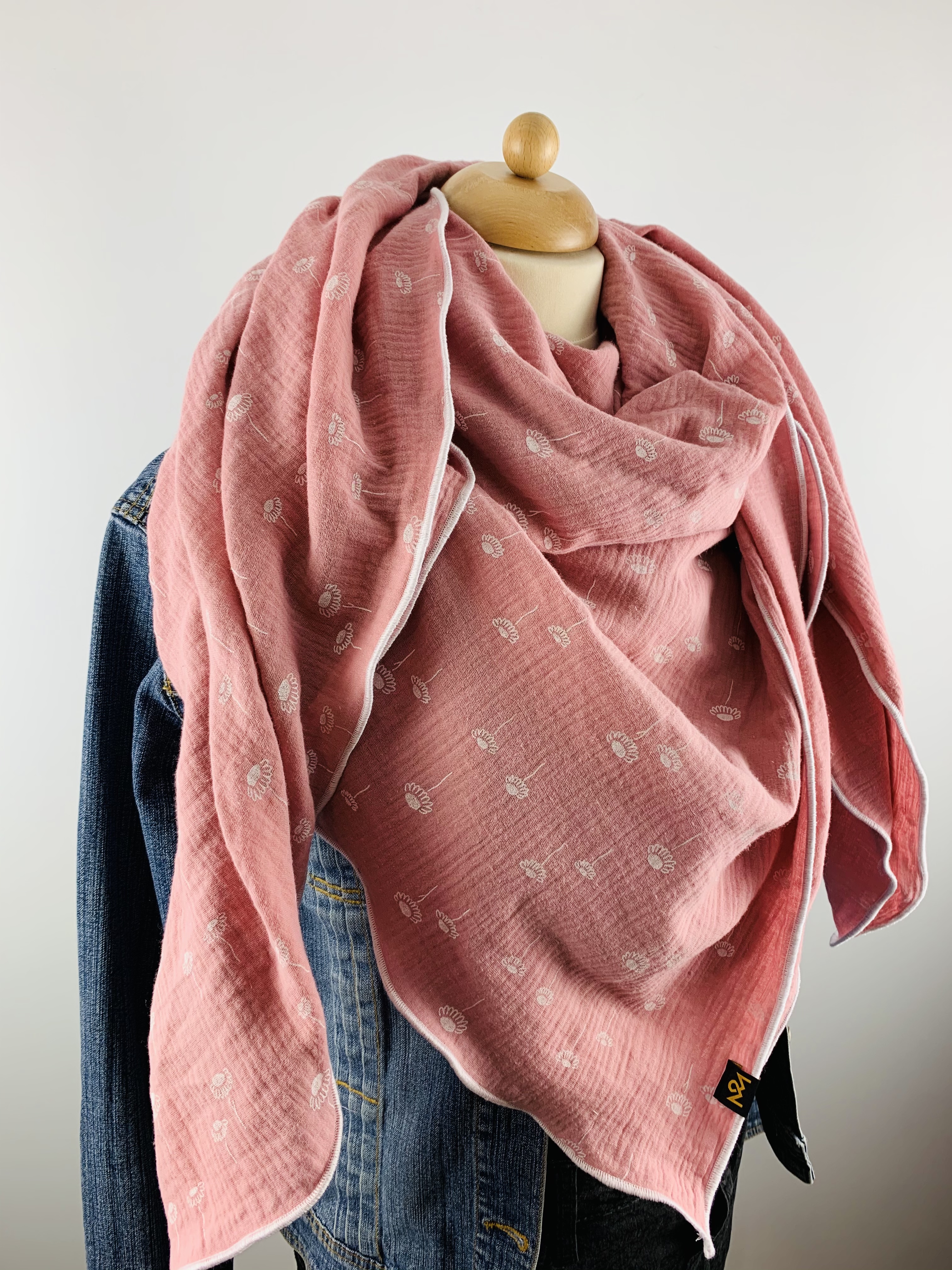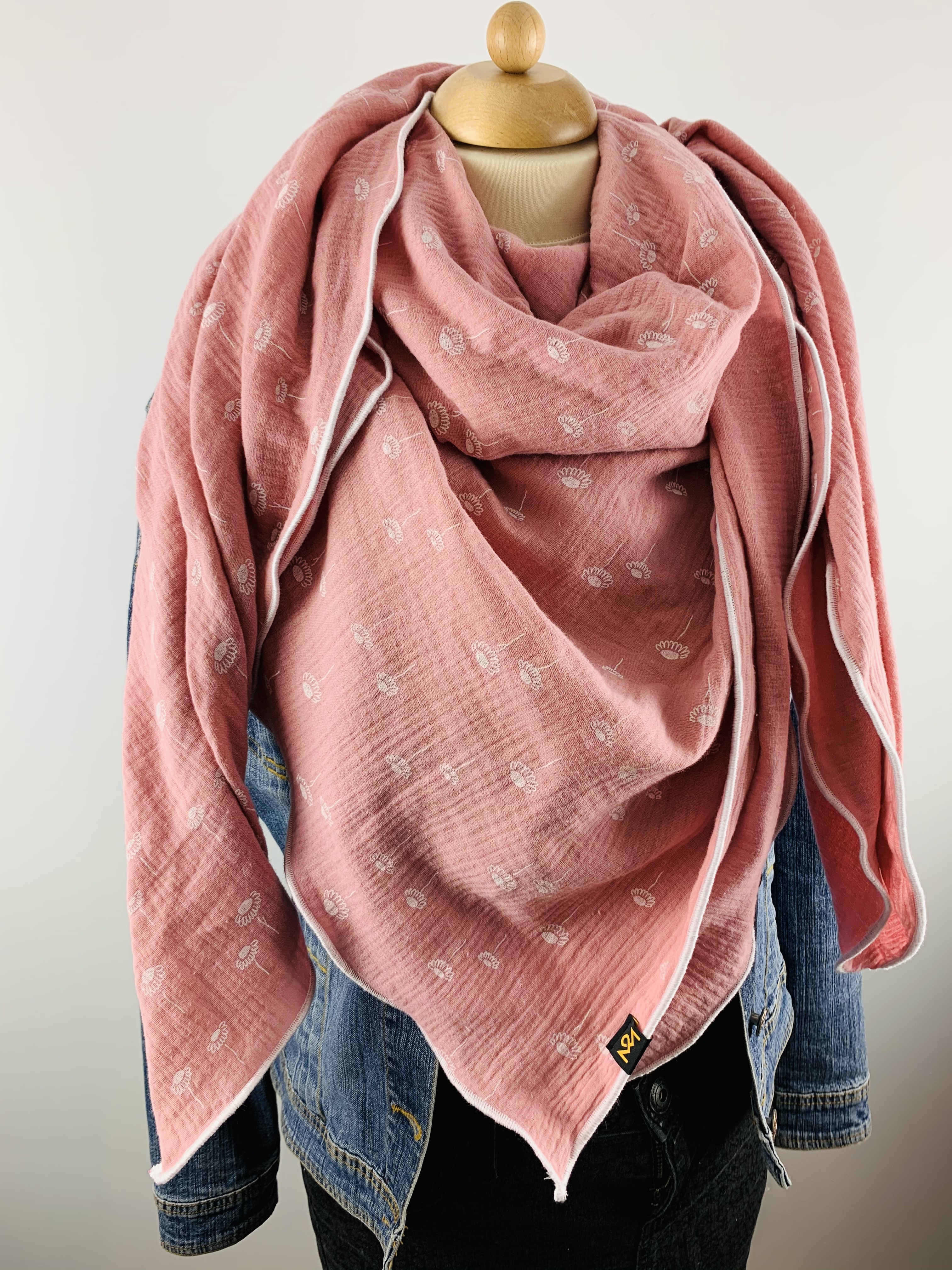 Dieses hochwertige, doppelt gewebte Tuch aus 100% Baumwollmusselin wurde in der Farbe "Rosa mit Weißen Margeriten" gefertigt.