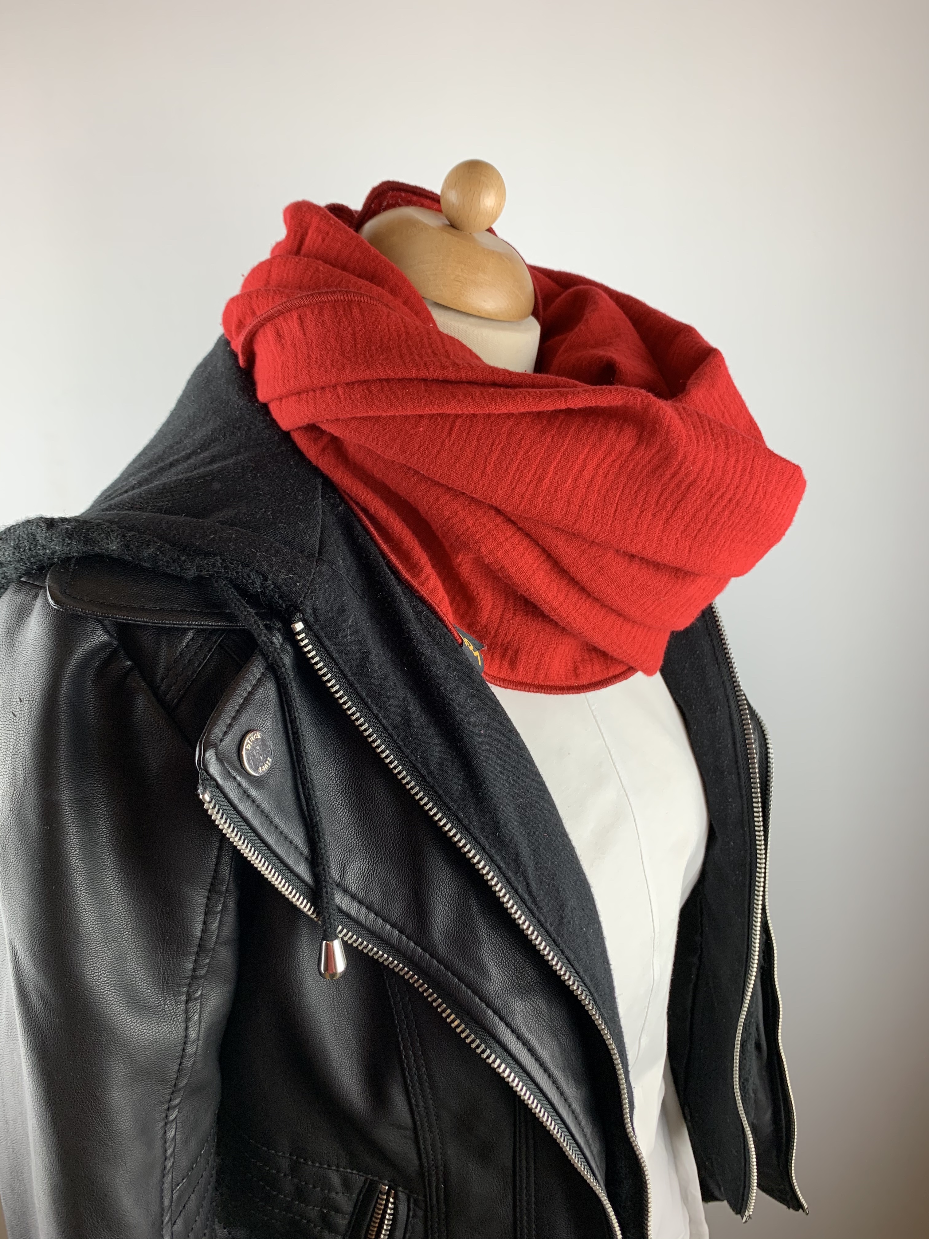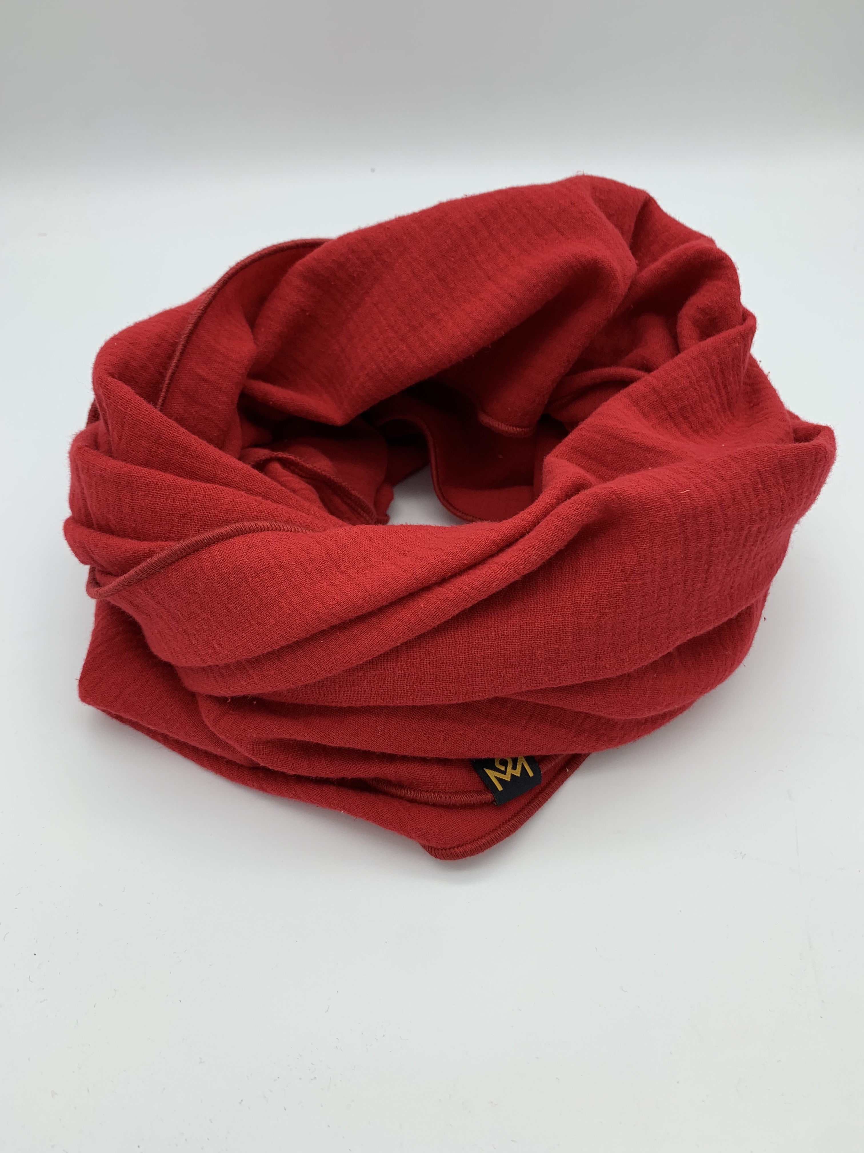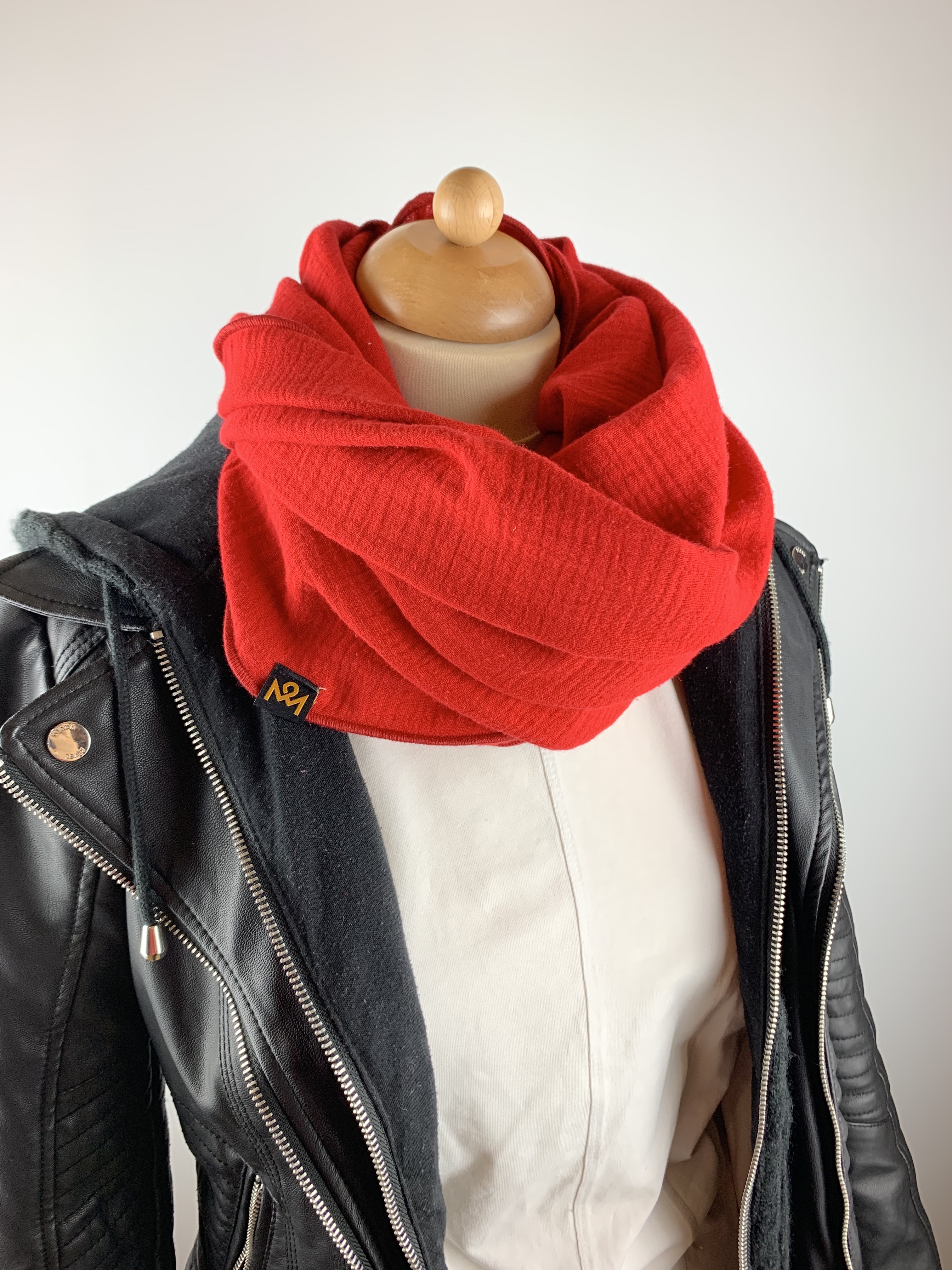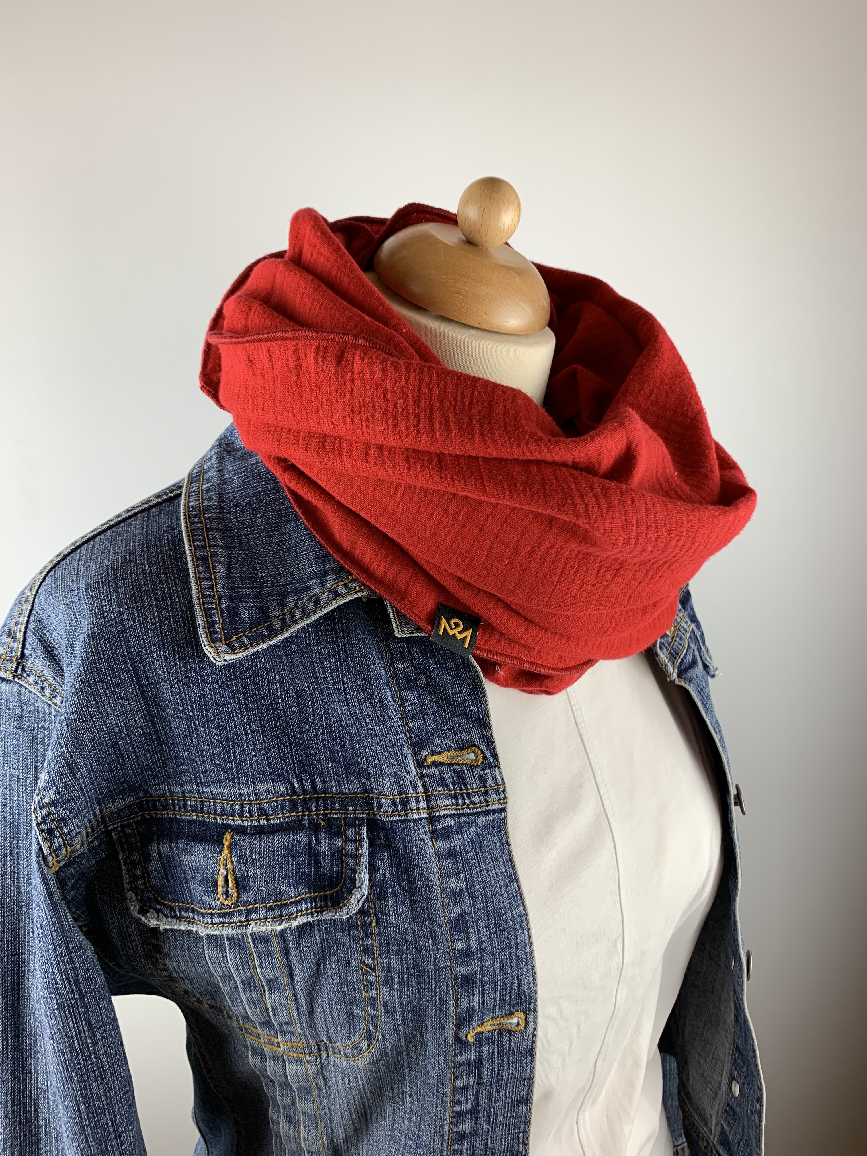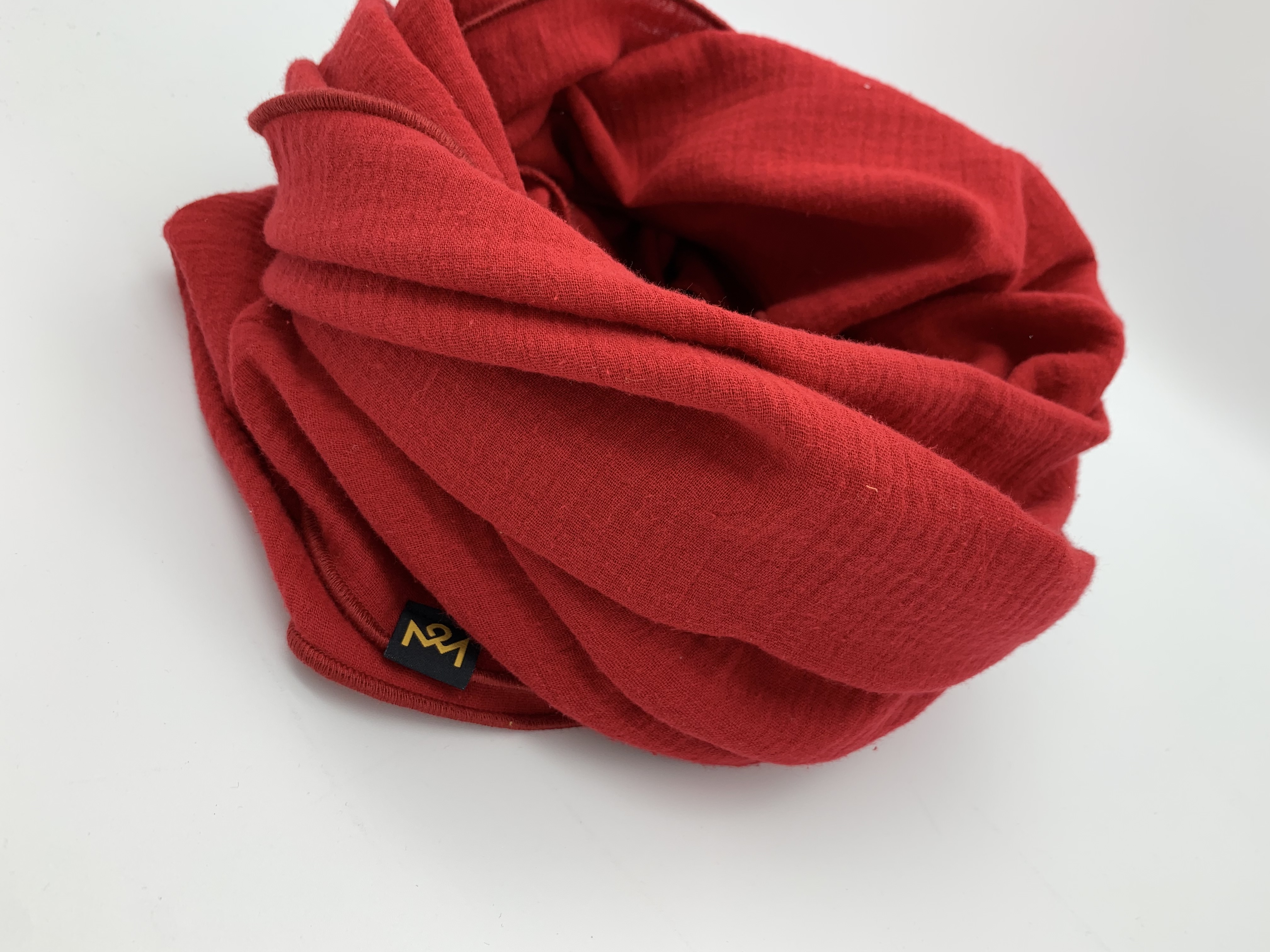 Hochwertiger, doppelt gewebter Schlauchschal aus 100 % Baumwollmusselin in der Farbe rot.