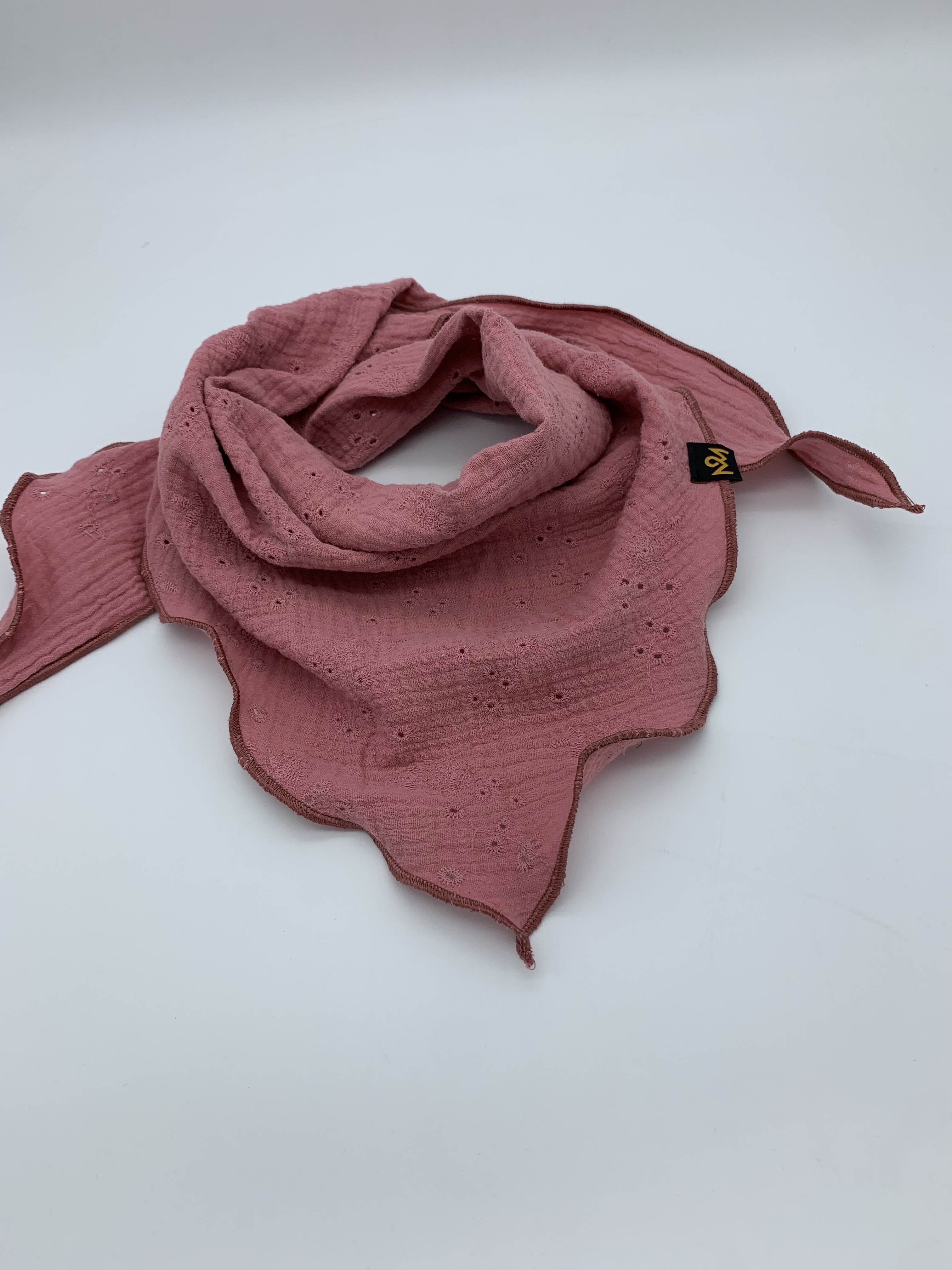 Dieser hochwertige, doppelt gewebte Schal wurde aus 100 % Baumwollmusselin in der Farbe altrosa mit Stickoptik
