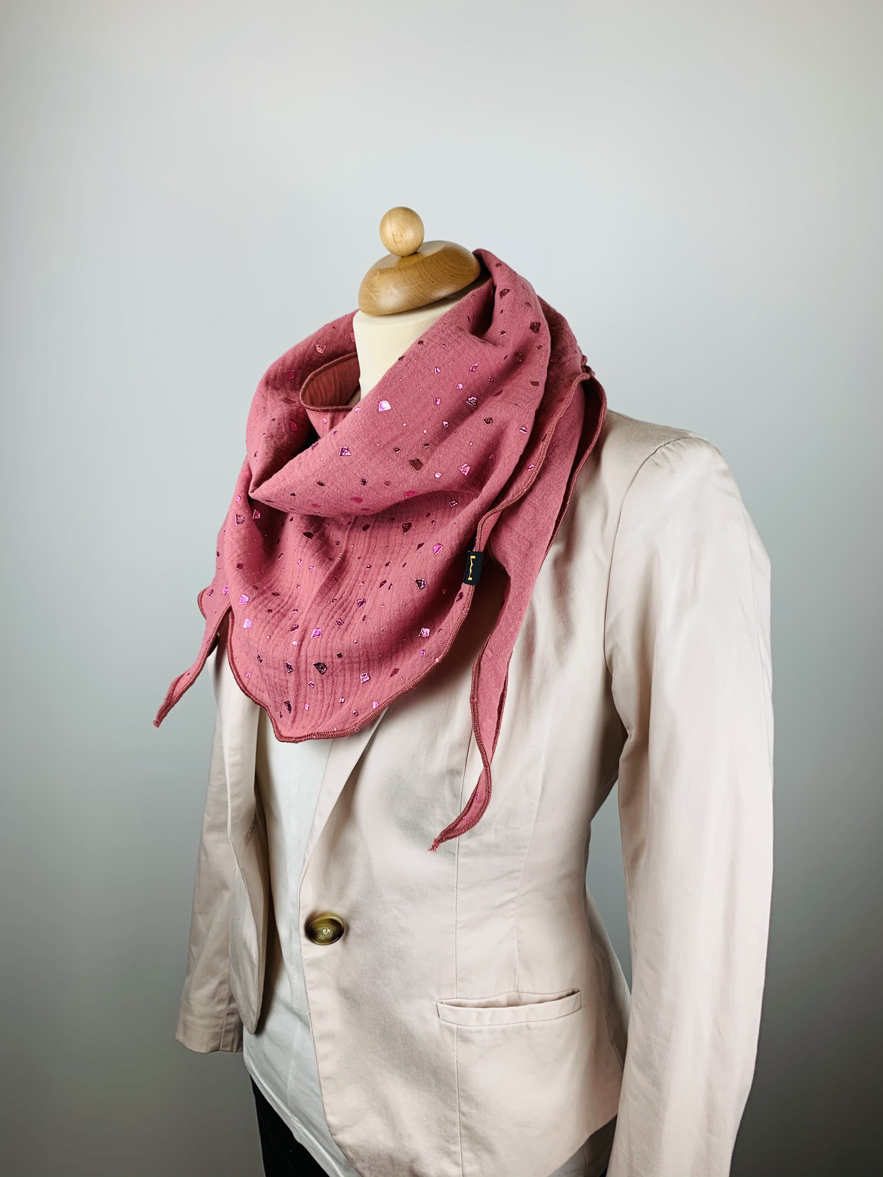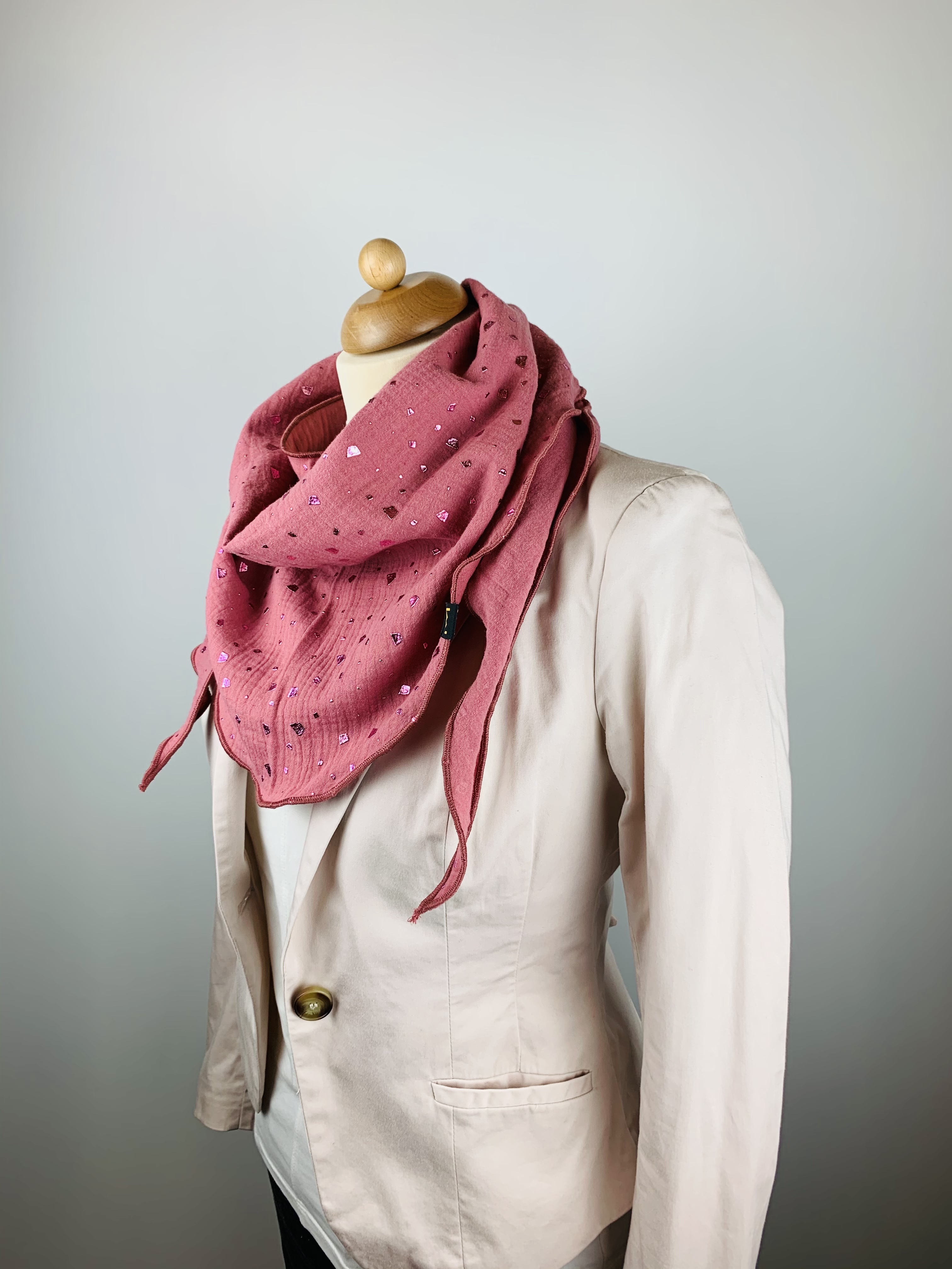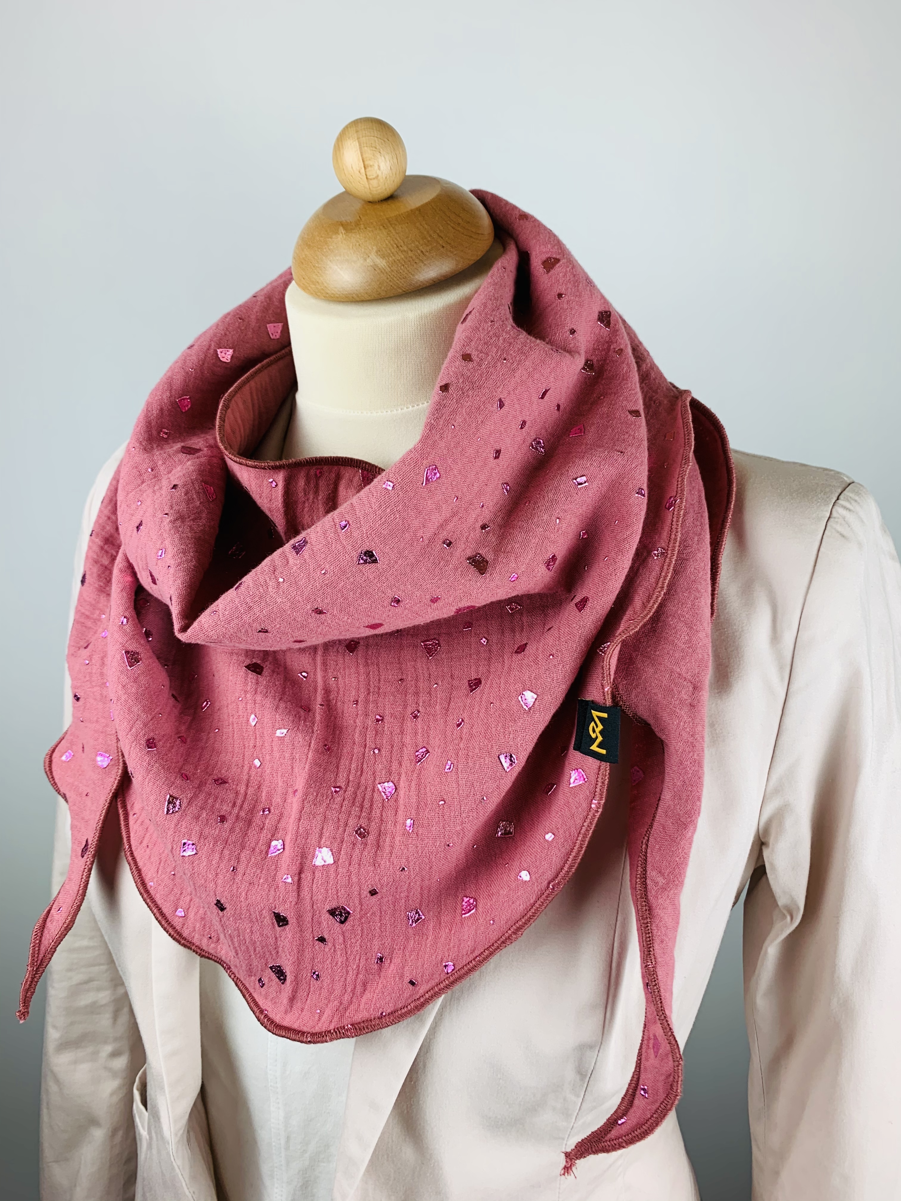 - 100% weiche Musselinbaumwolle in altrosa mit glitzer Flakes