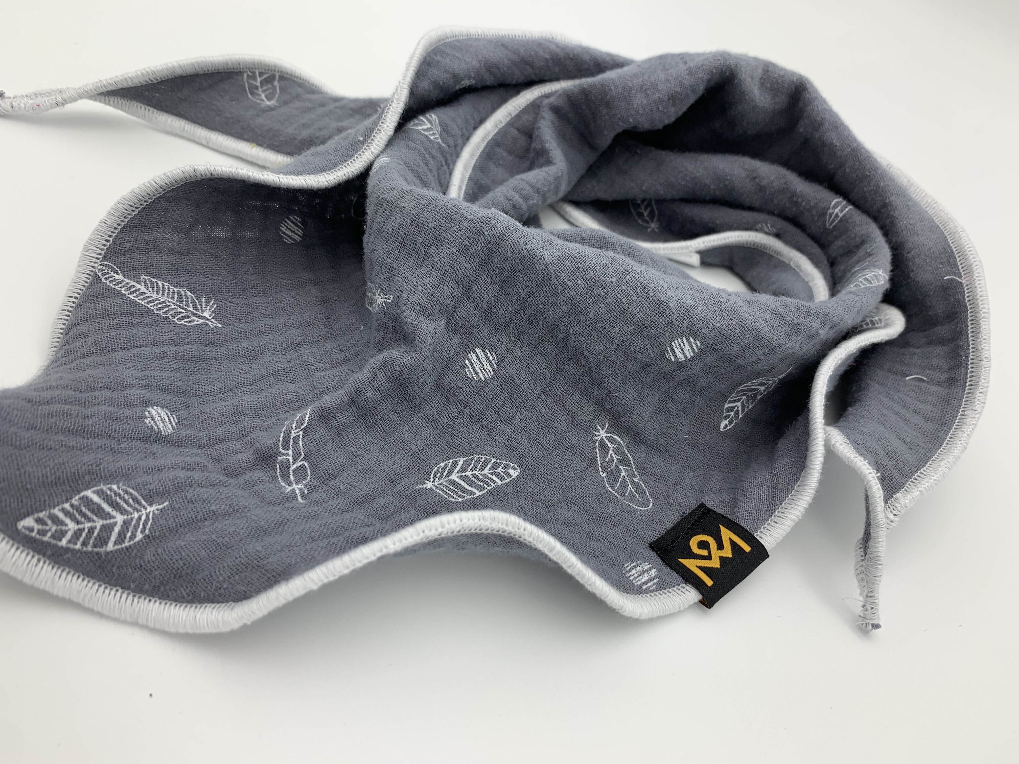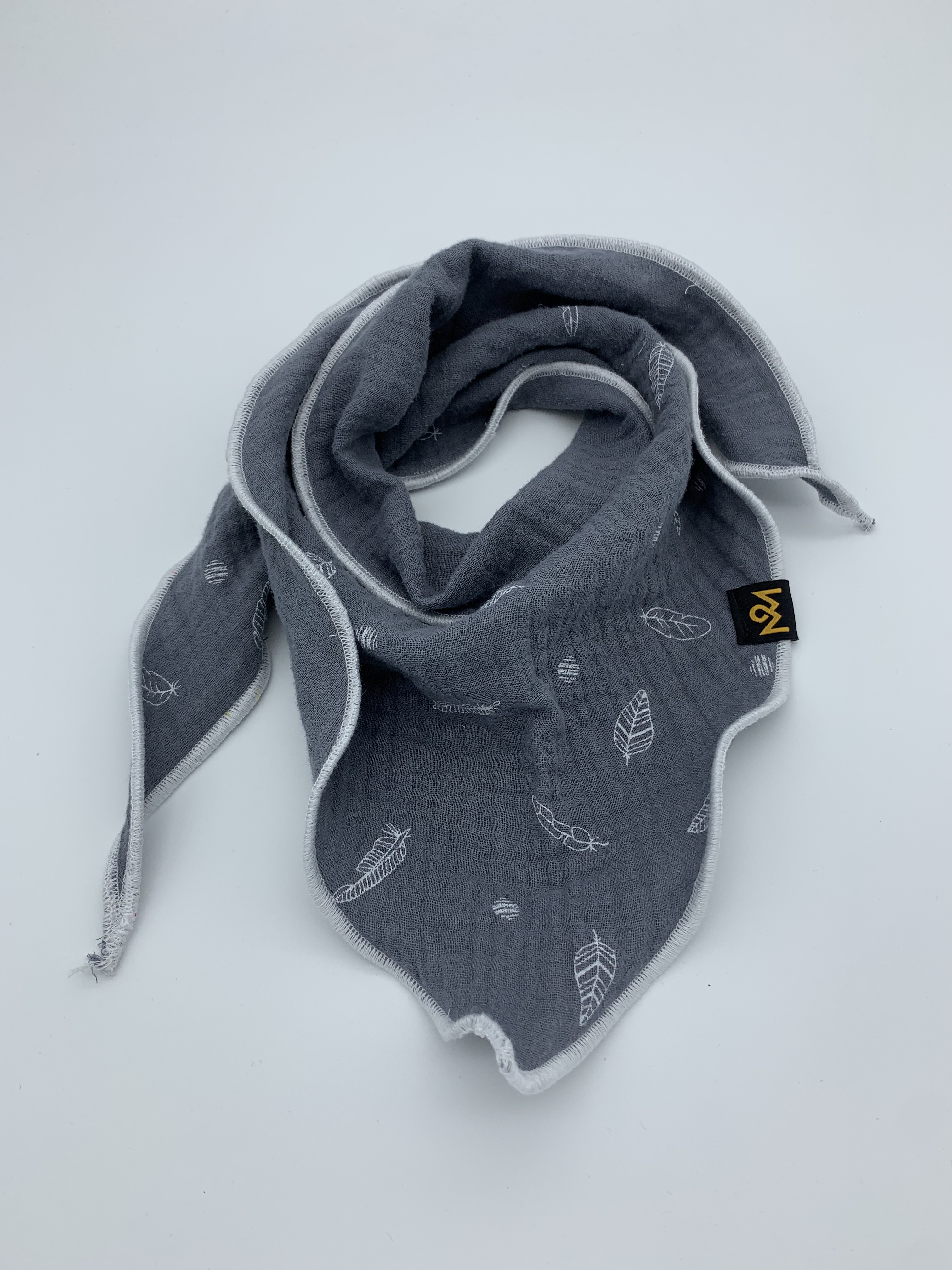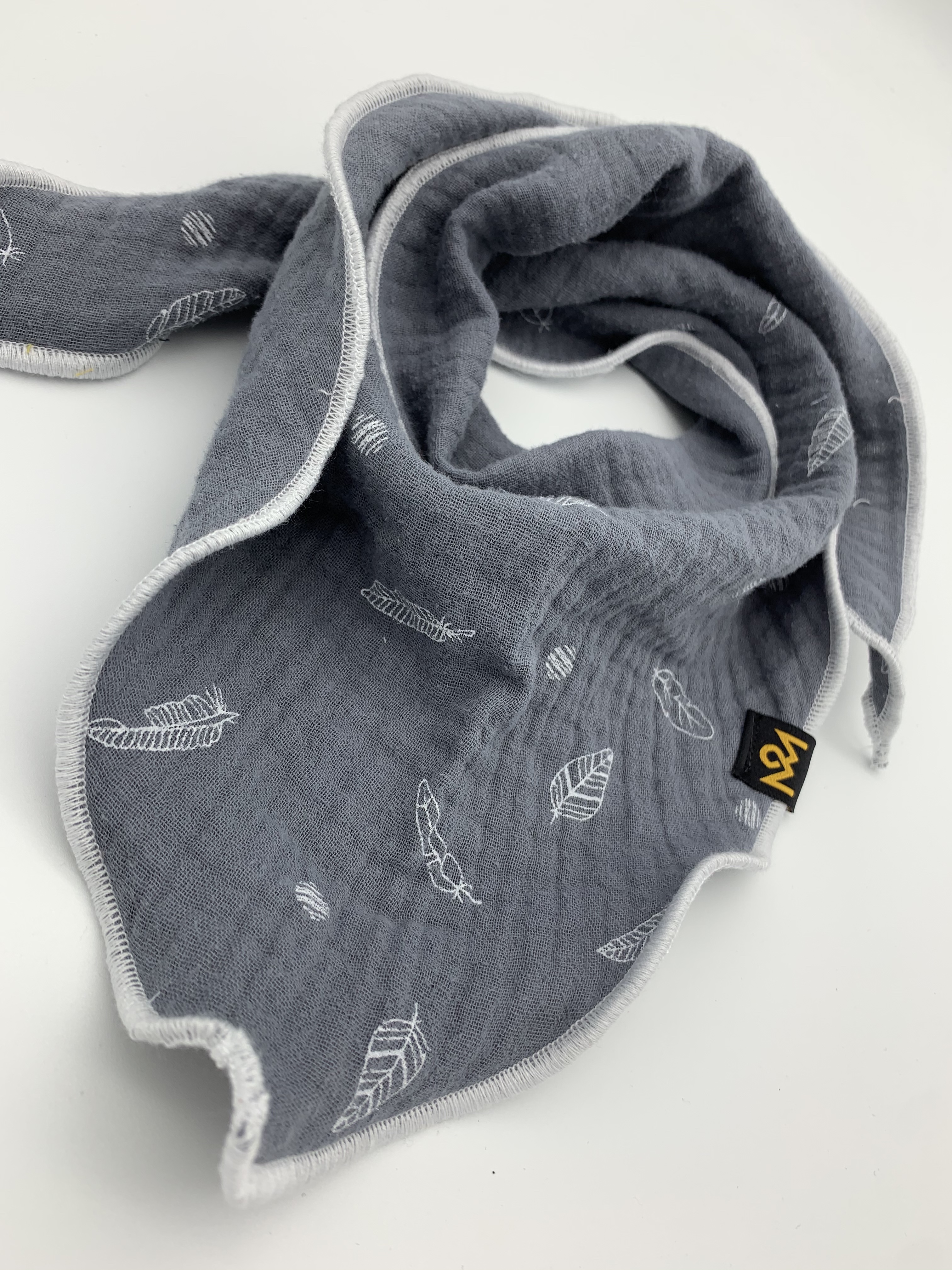 Preview: Schal aus Musselin in grau mit weißen Federn