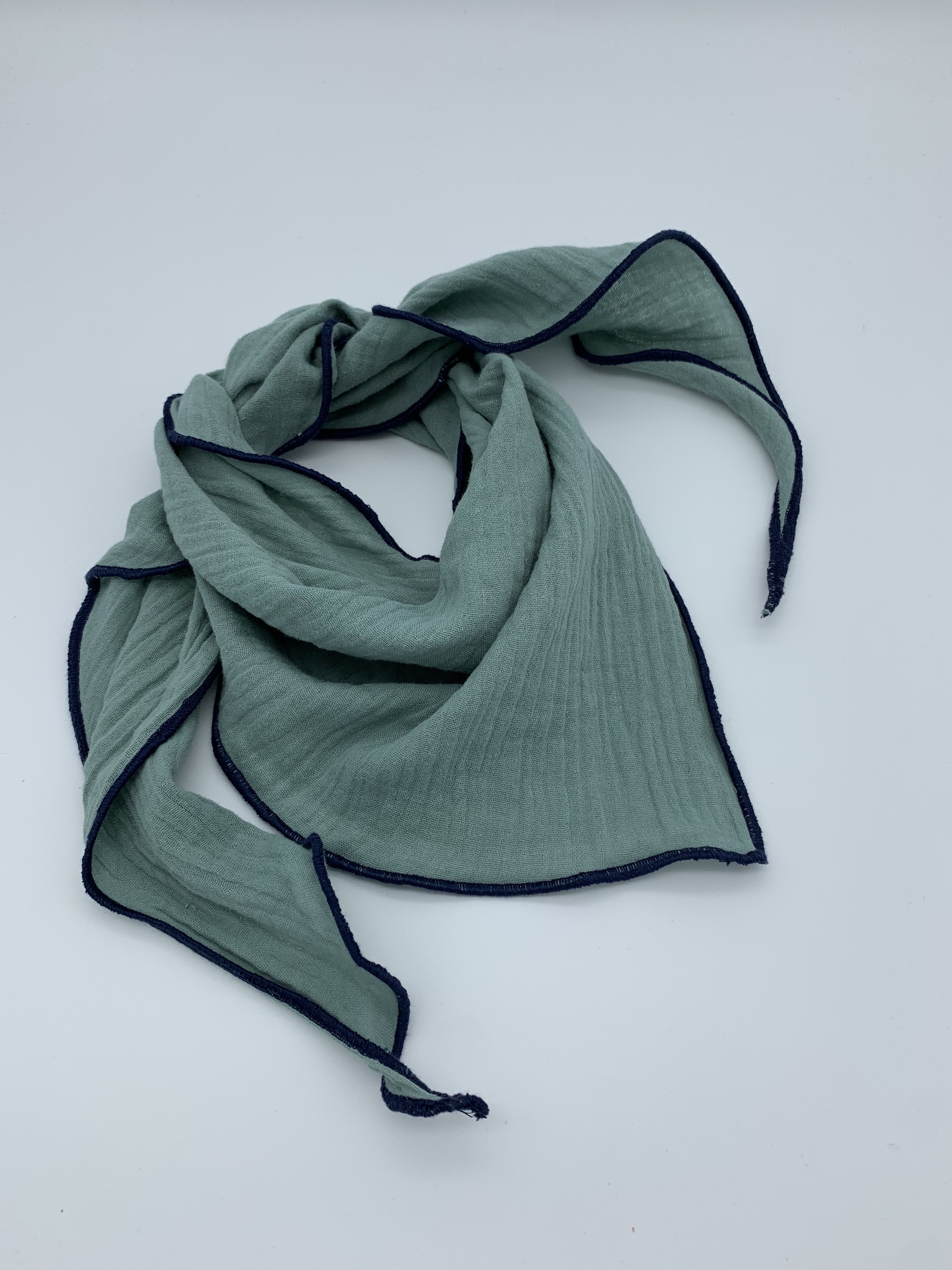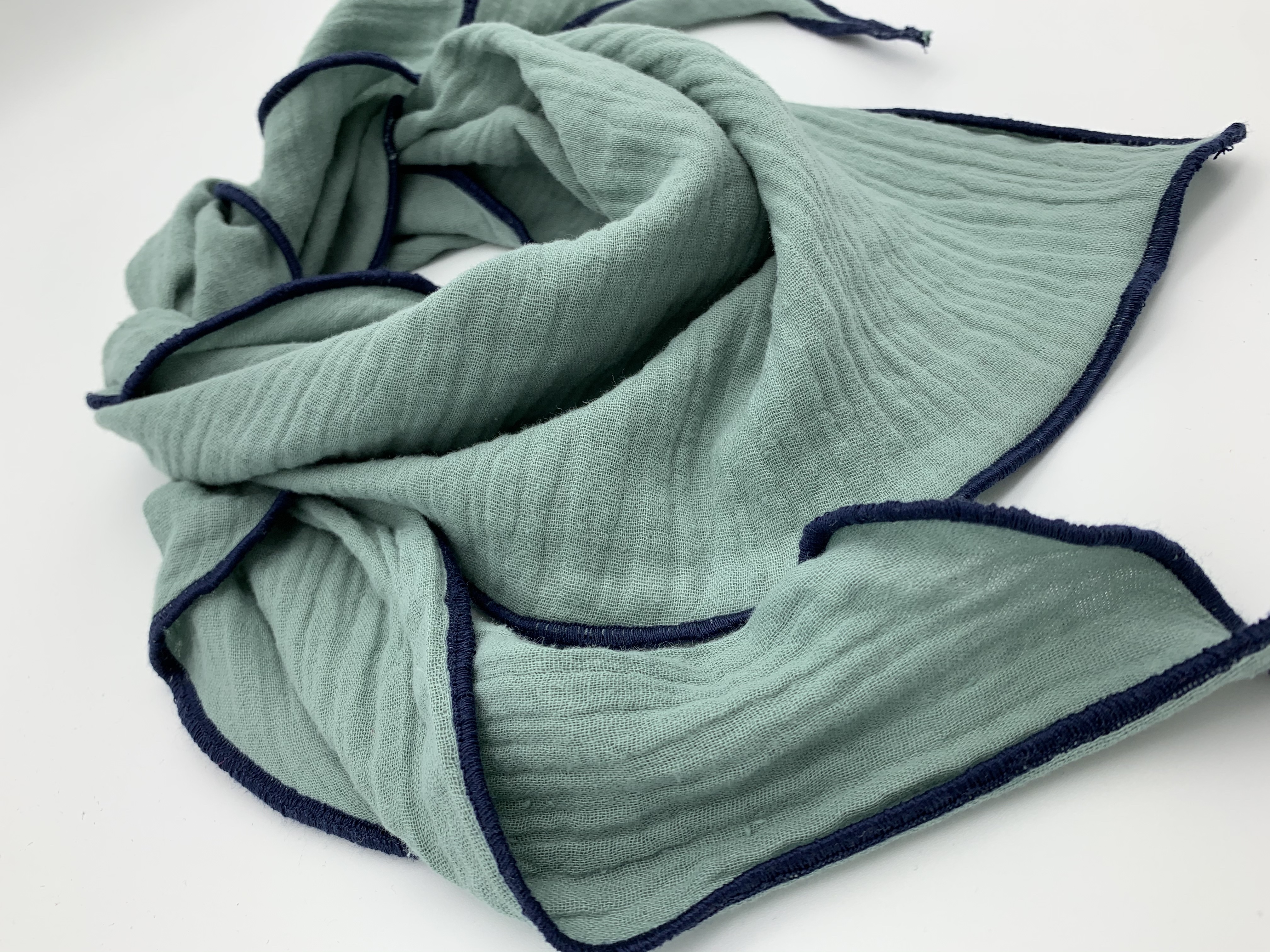 Schal aus Musselin in mint mit dunkelblauem Saum