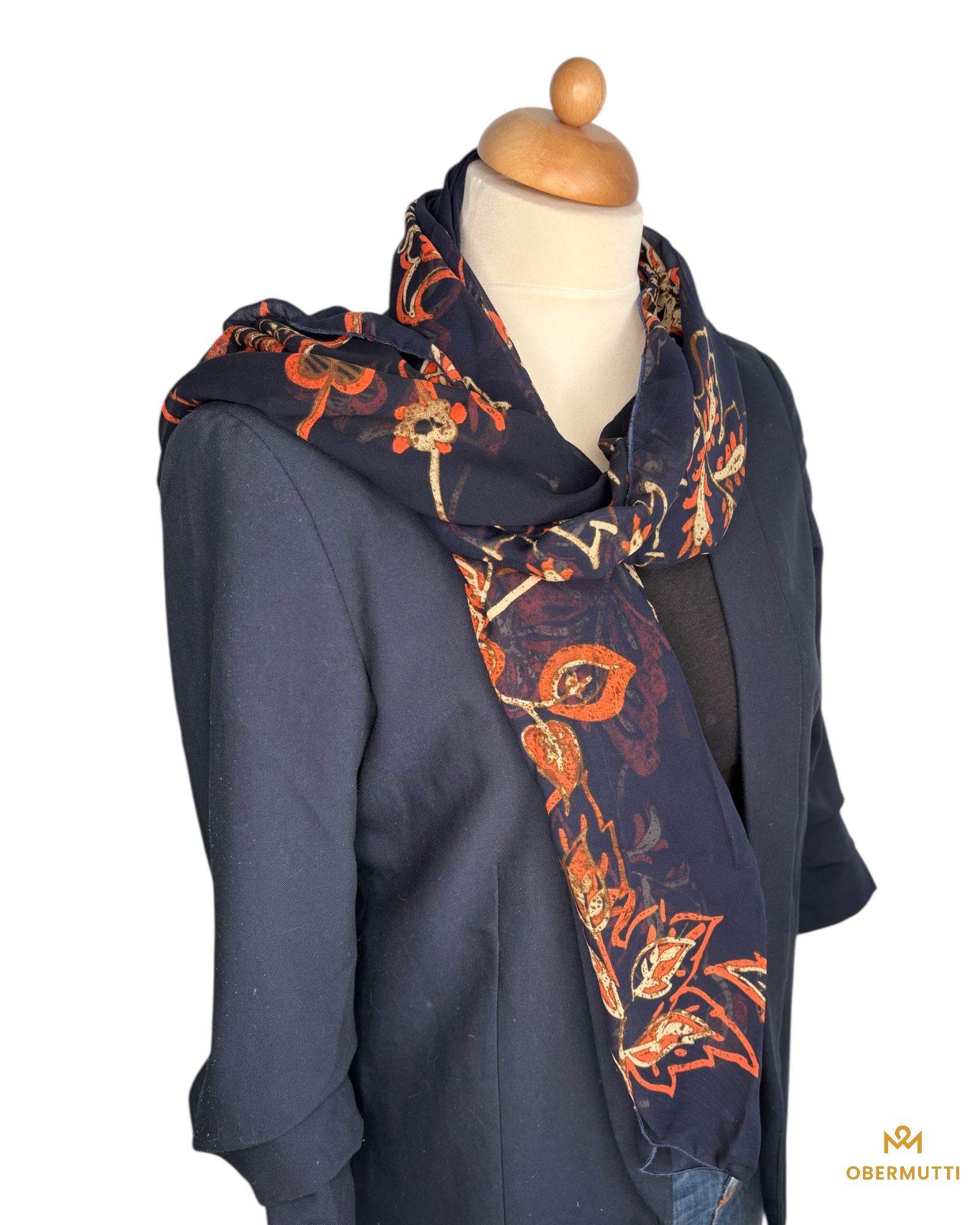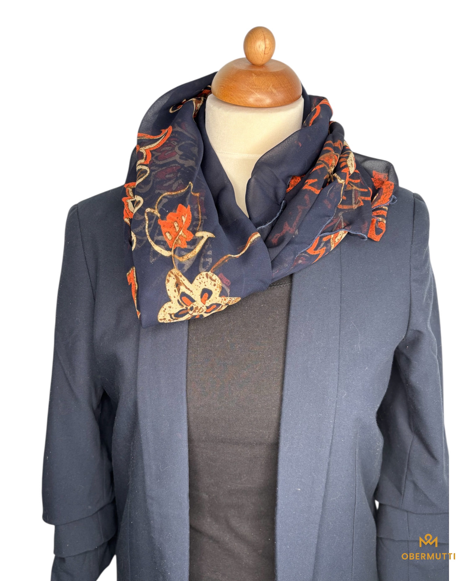 Die Einzigartigkeit des Designs wird durch die Struktur der Seide in Kombination mit der Gewebekante in der Farbe "Dunkelblau" bestimmt.