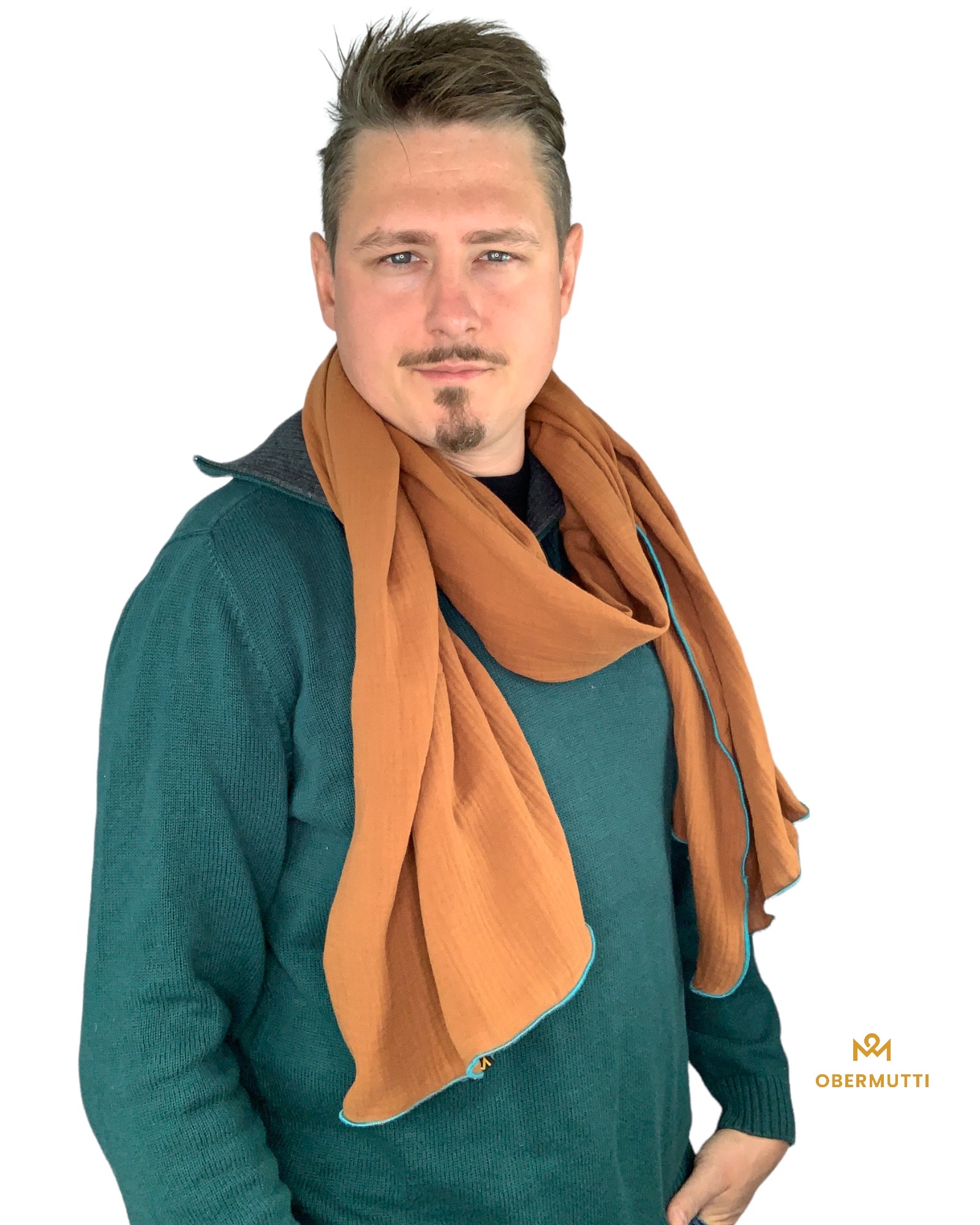 Der Schal besteht aus einem glatten, lockeren und feinfädigen Musselinbaumwollstoff und Fleece.