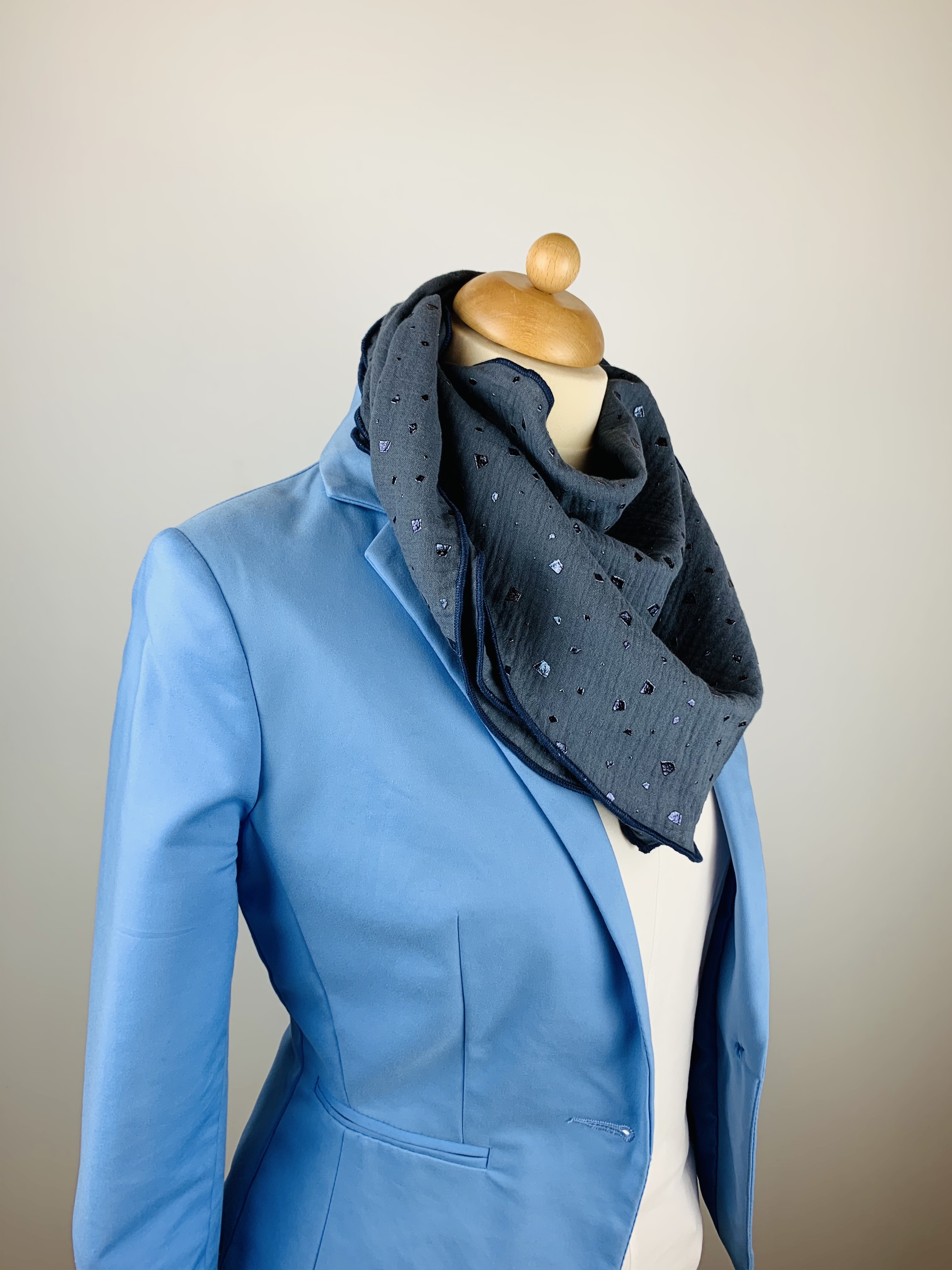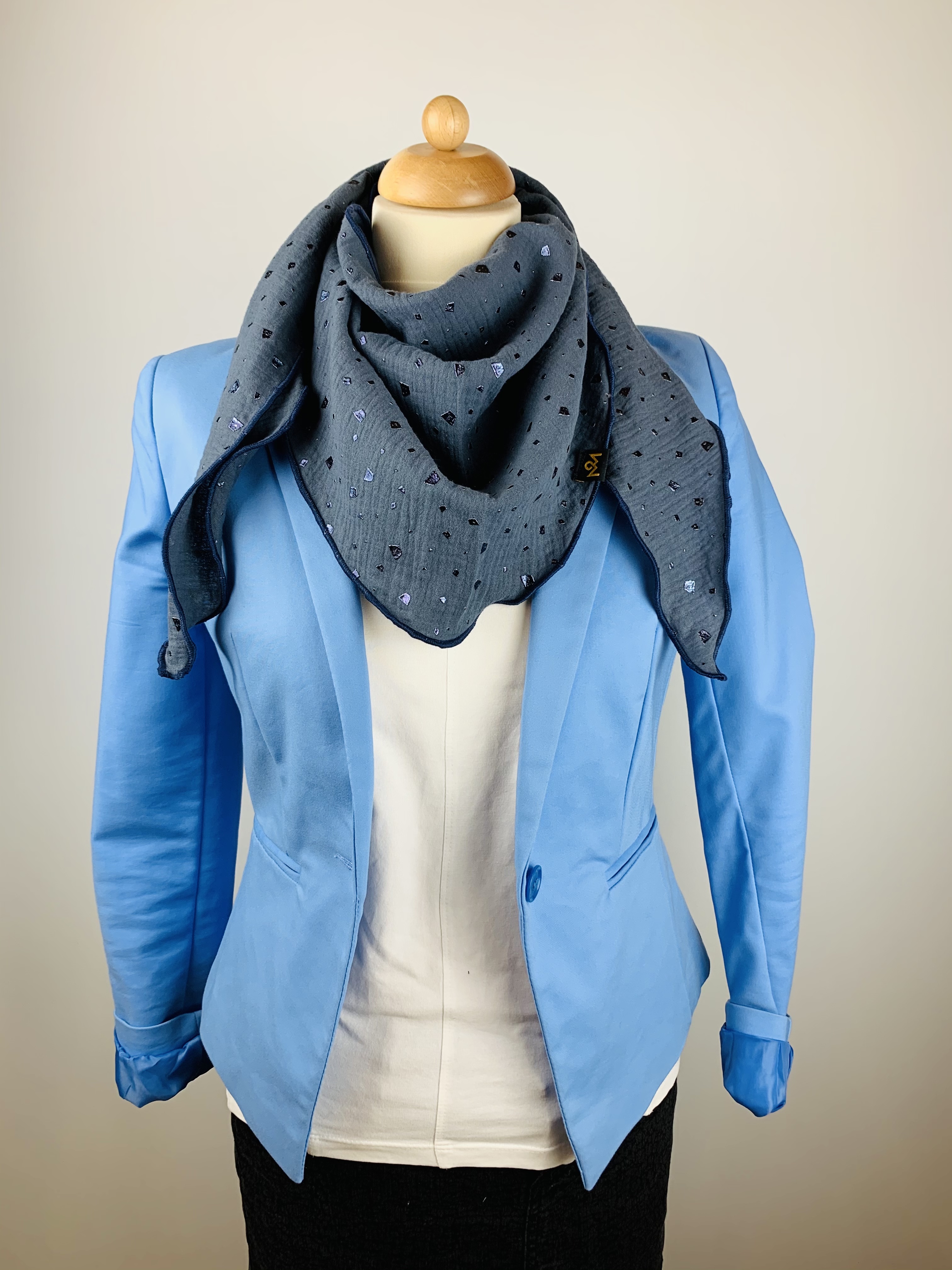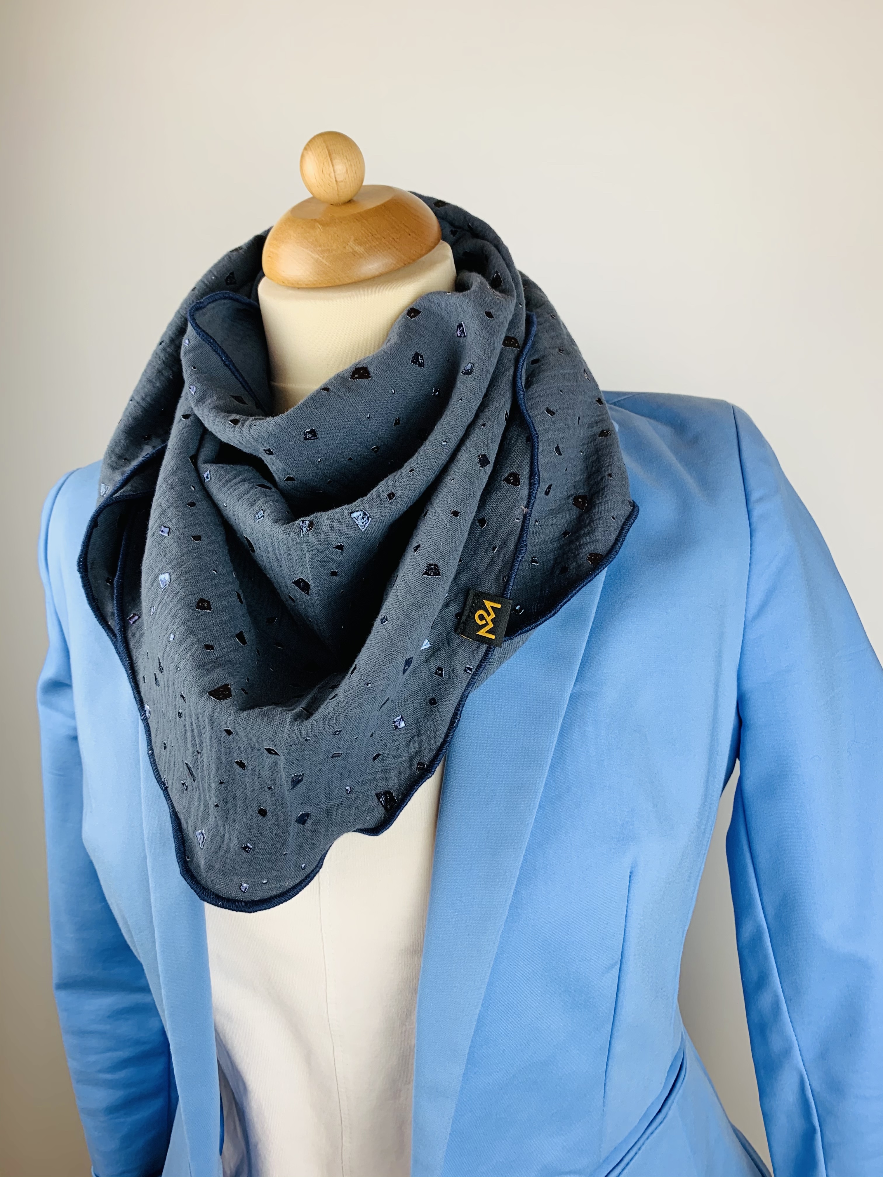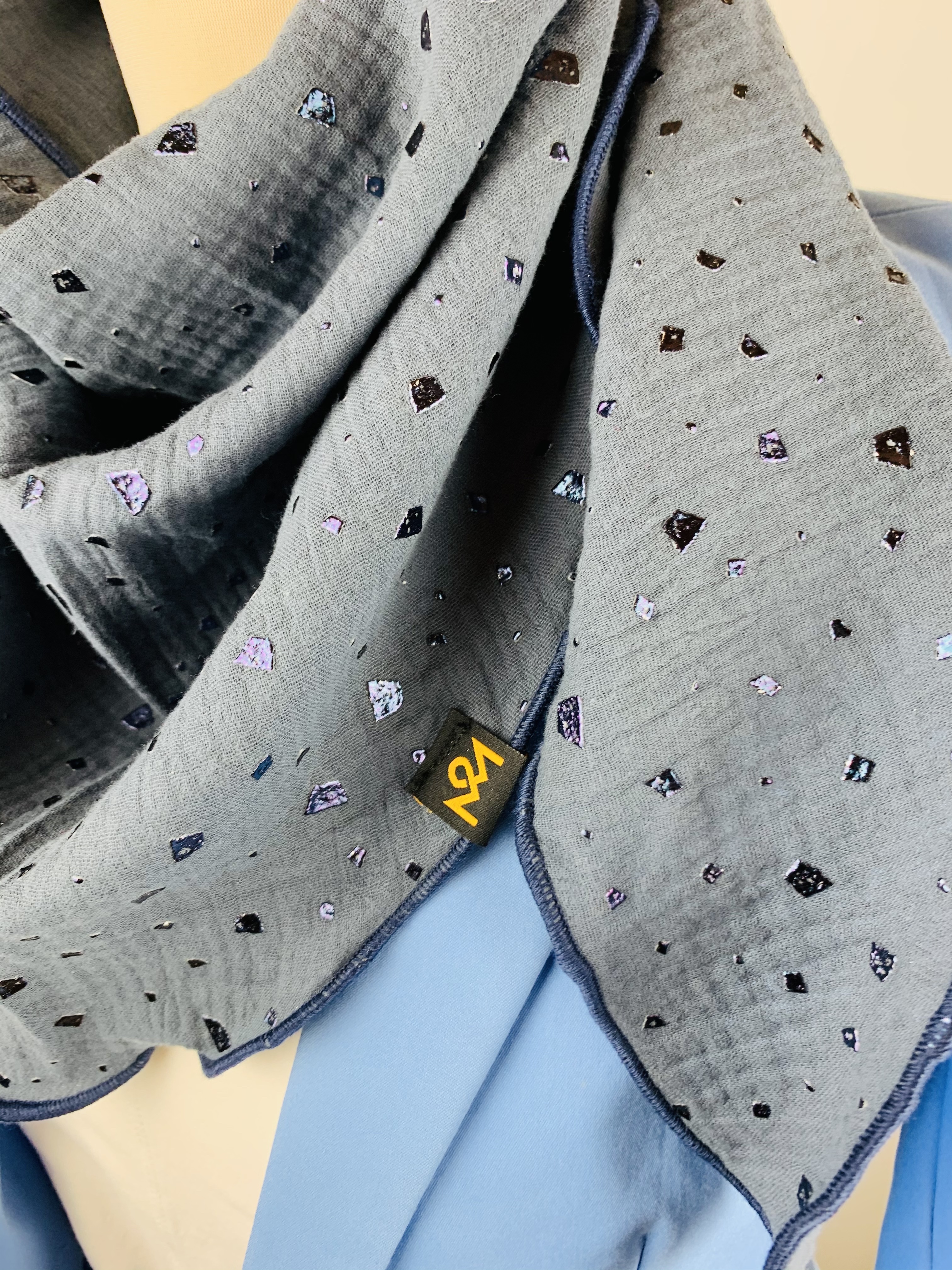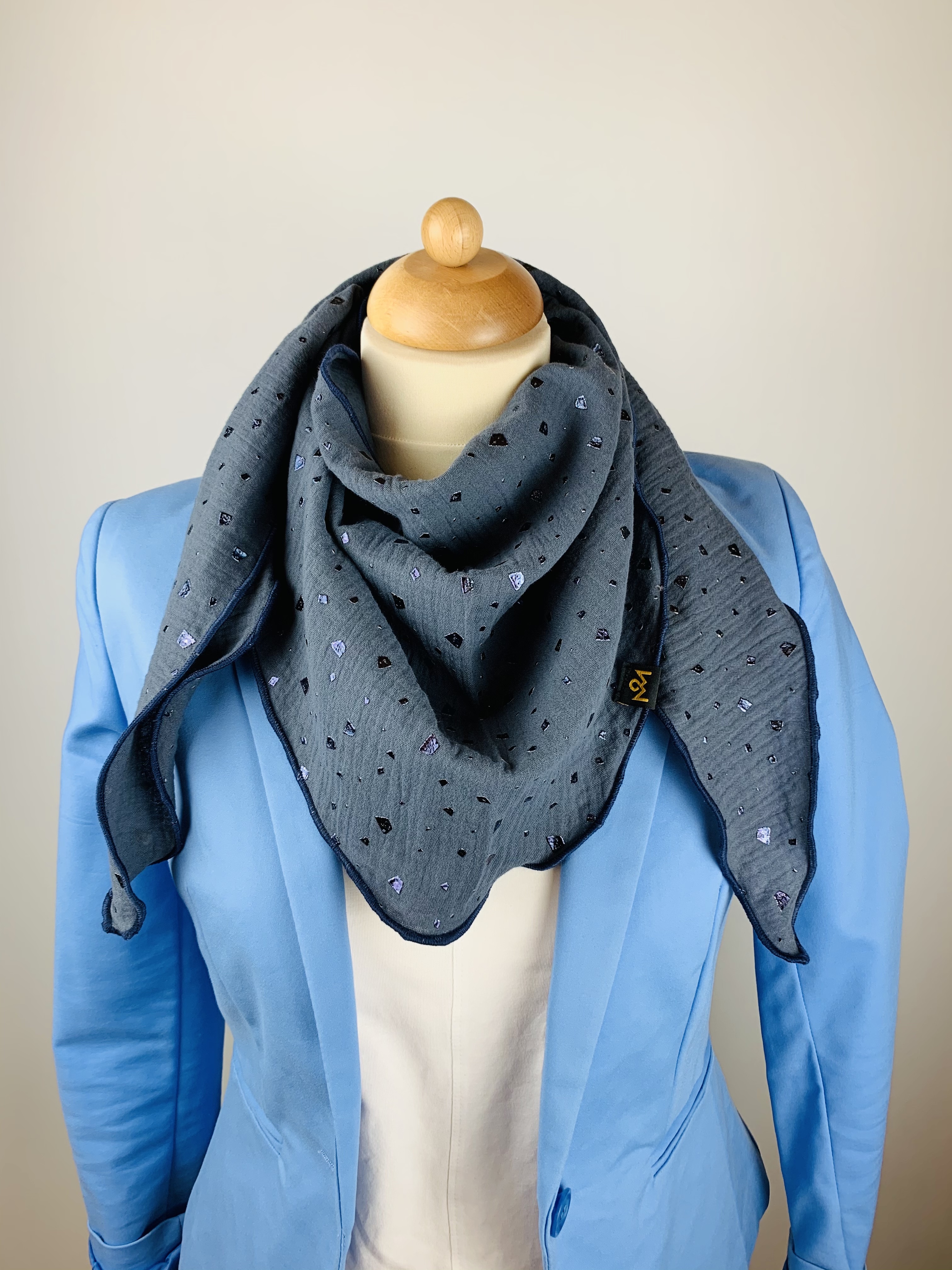 - 100% weiche Musselinbaumwolle in graublau mit glitzer Flakes