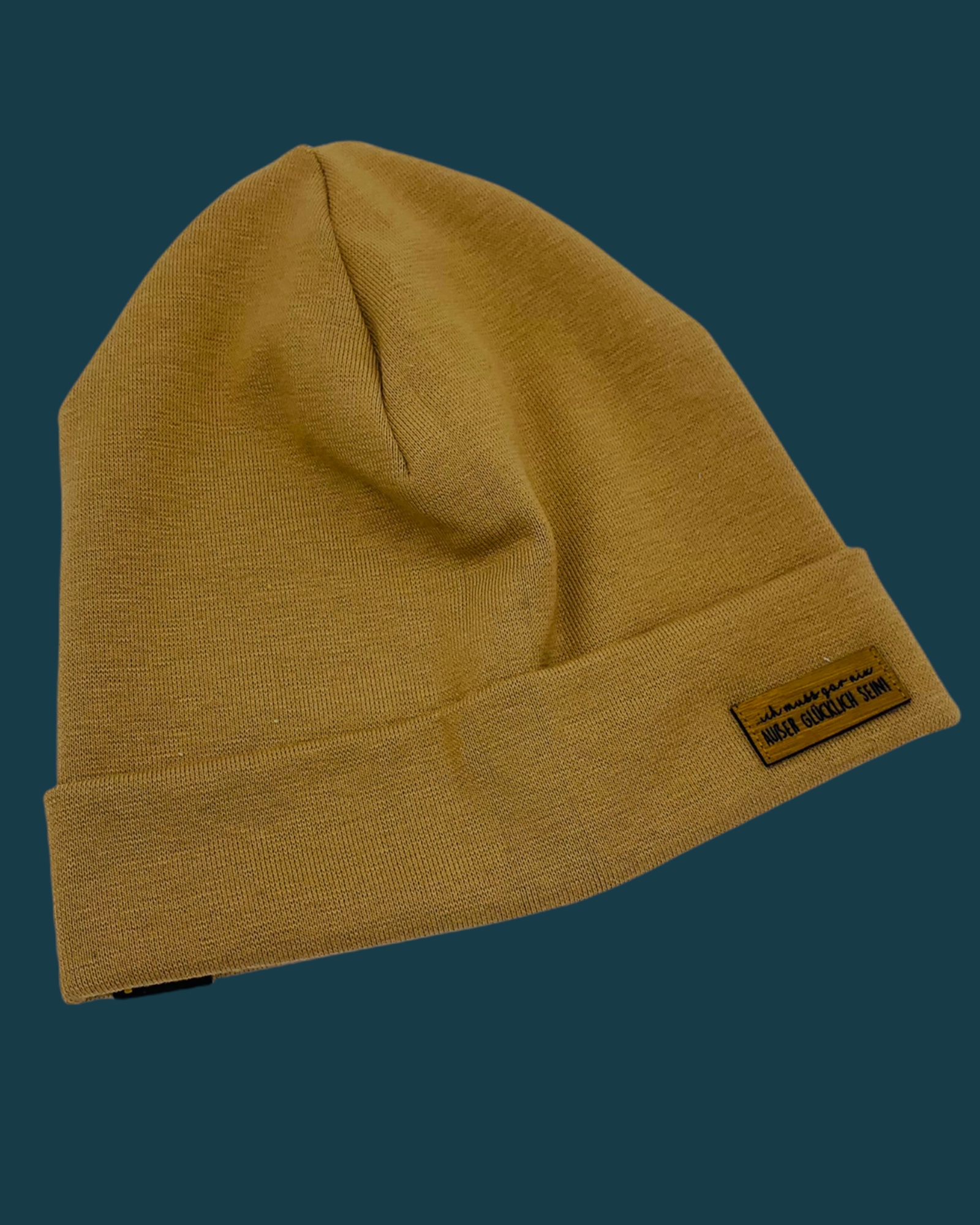 Ein klassischer Hipster Beanie aus Baumwolle in der Farbe "Cognac".