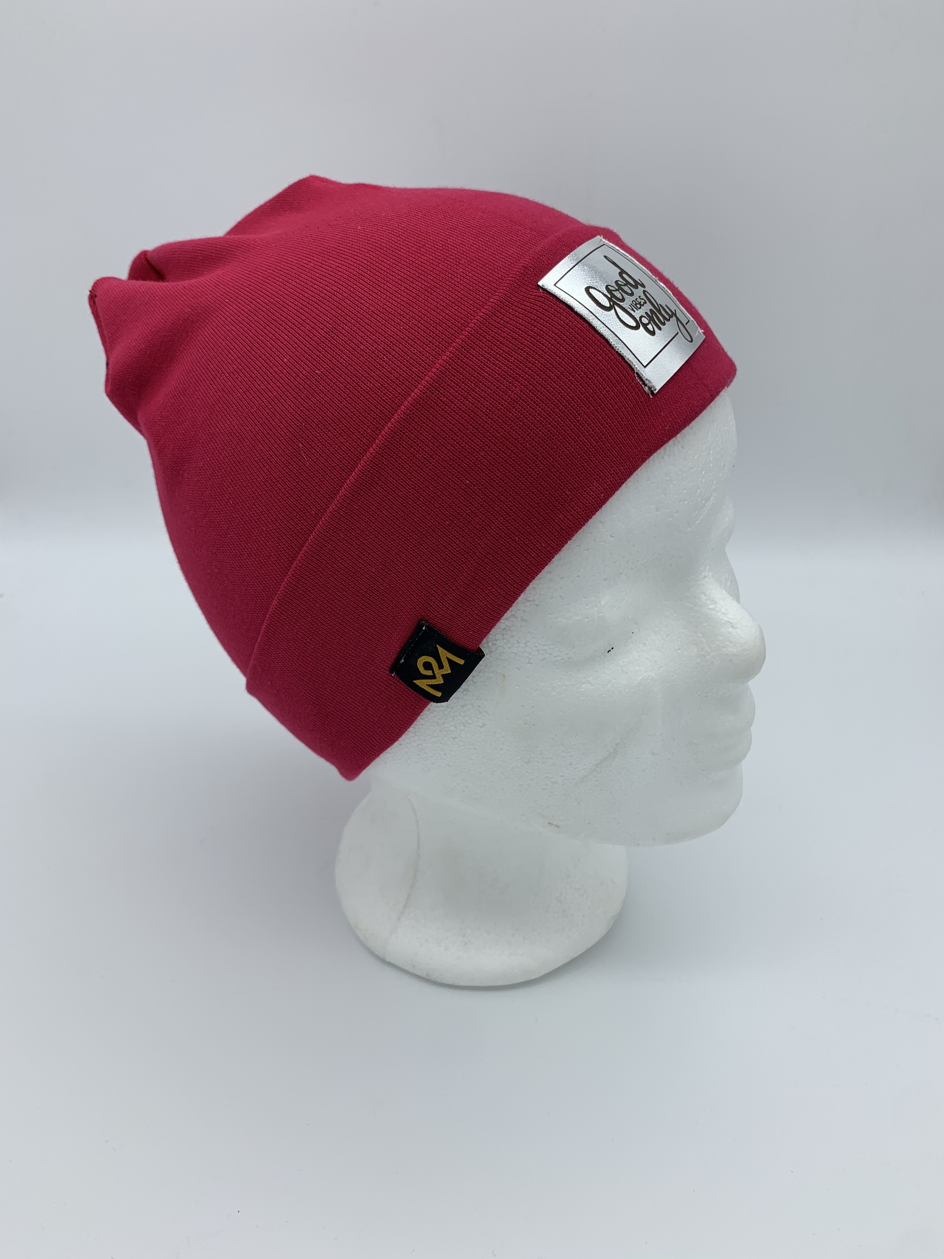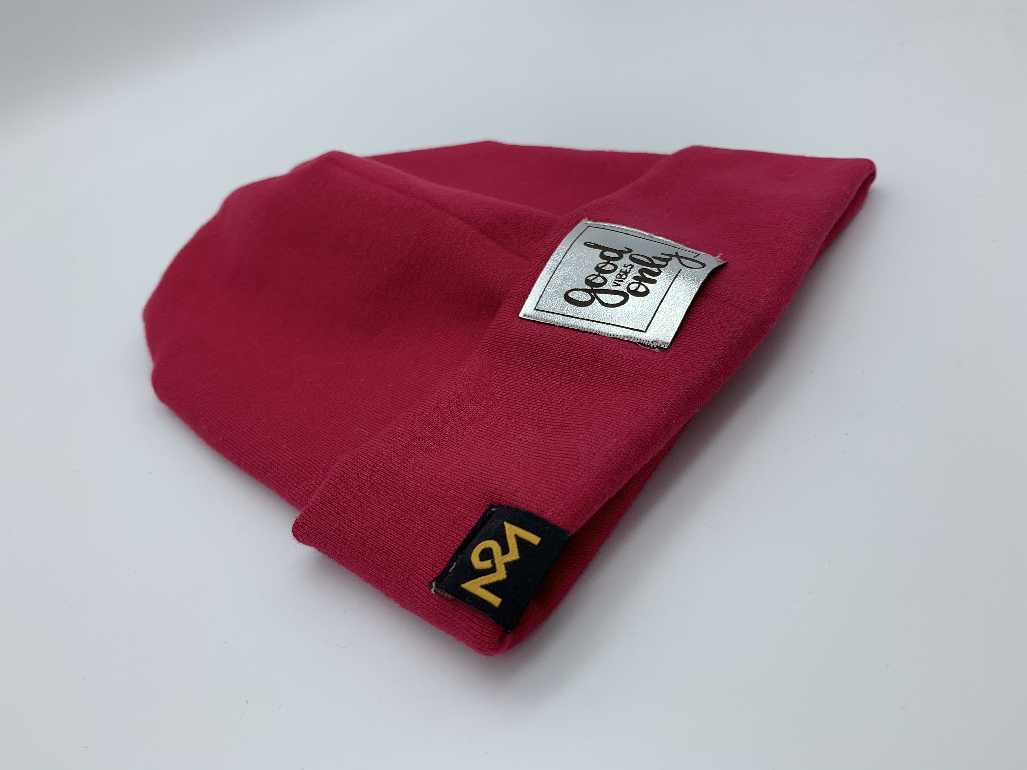 Ein klassischer Hipster Beanie aus Baumwolle in der Farbe "Rotpink".