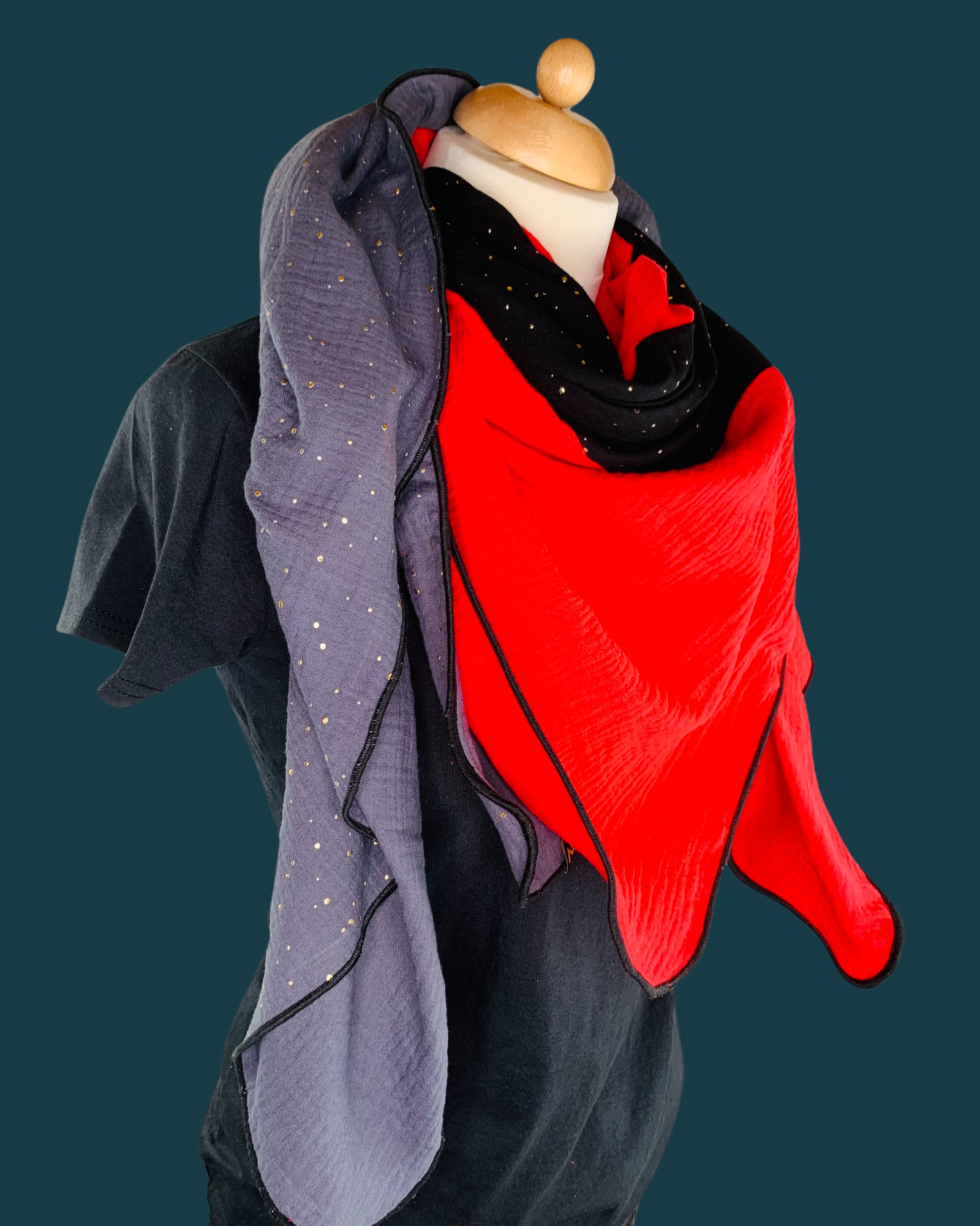 Der Schal besteht aus einem glatten, lockeren und feinfädigen Musselinbaumwollstoff.
