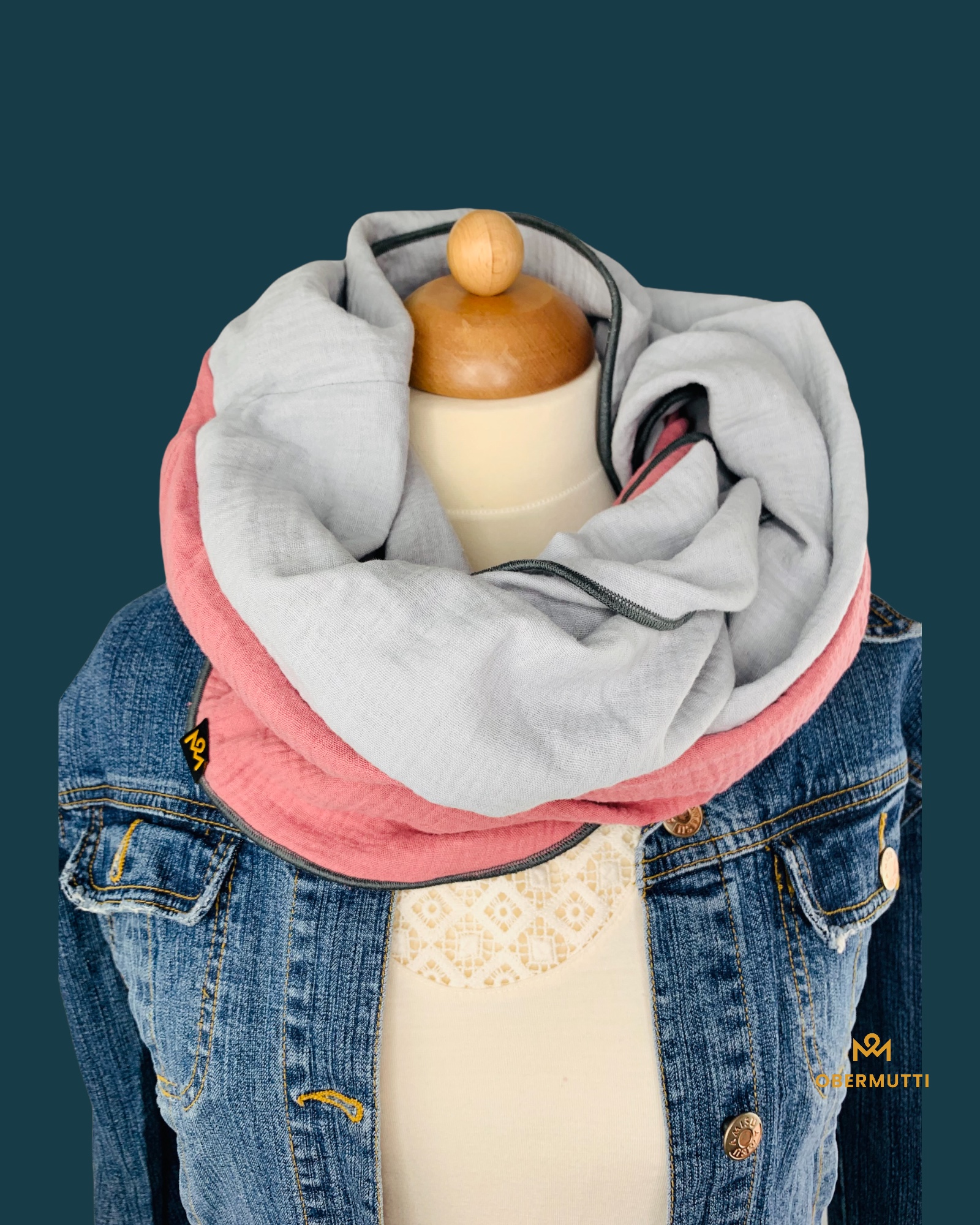 Der Schlauchschal orientiert sich an dem klassischem Loop (Schlaufenschal) und ist eine geschlossene Stoff-Schlaufe ohne Anfang und ohne Ende.