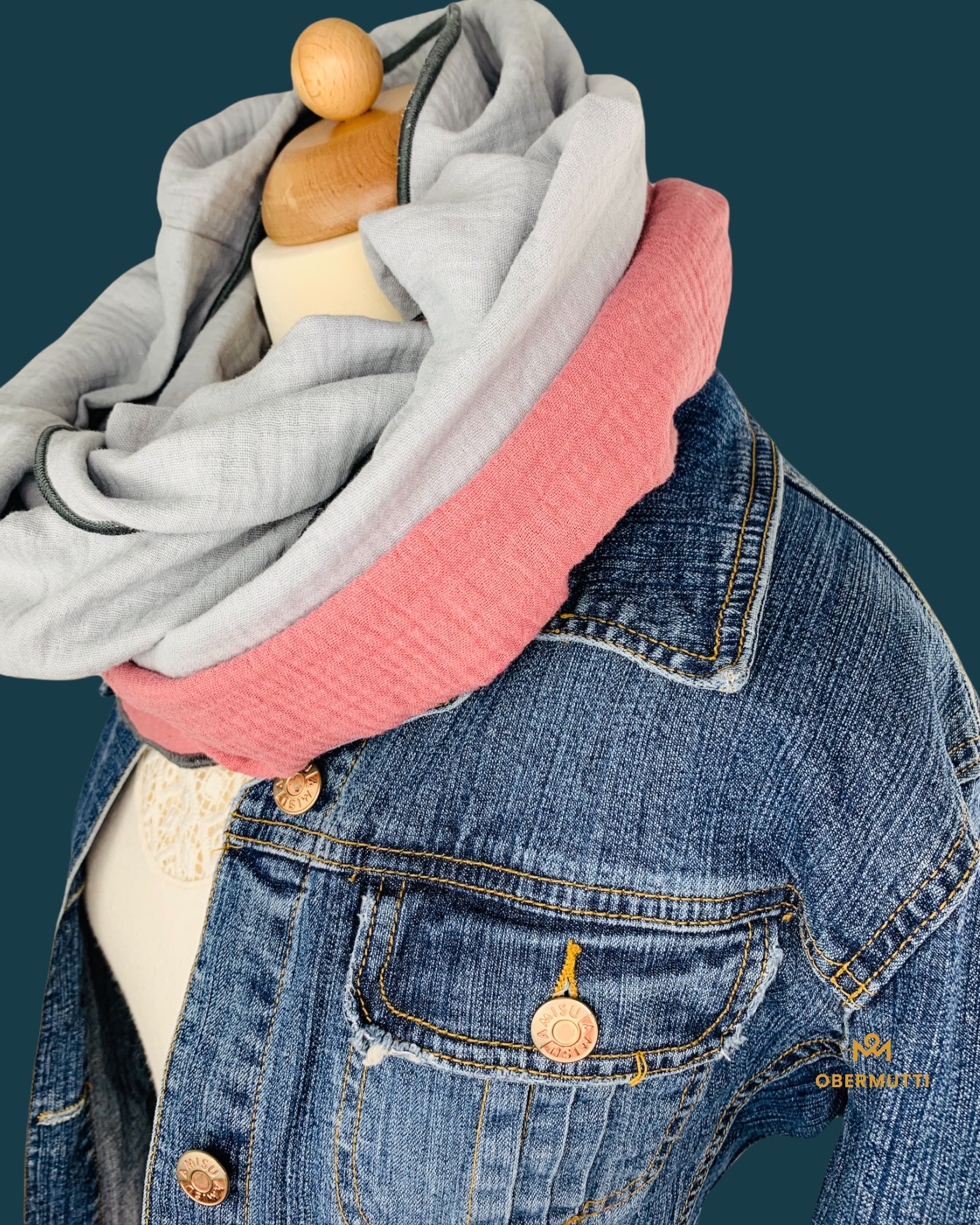 Dieser hochwertige, doppelt gewebte Schlauchschal aus 100% Baumwollmusselin wurde in den Farben