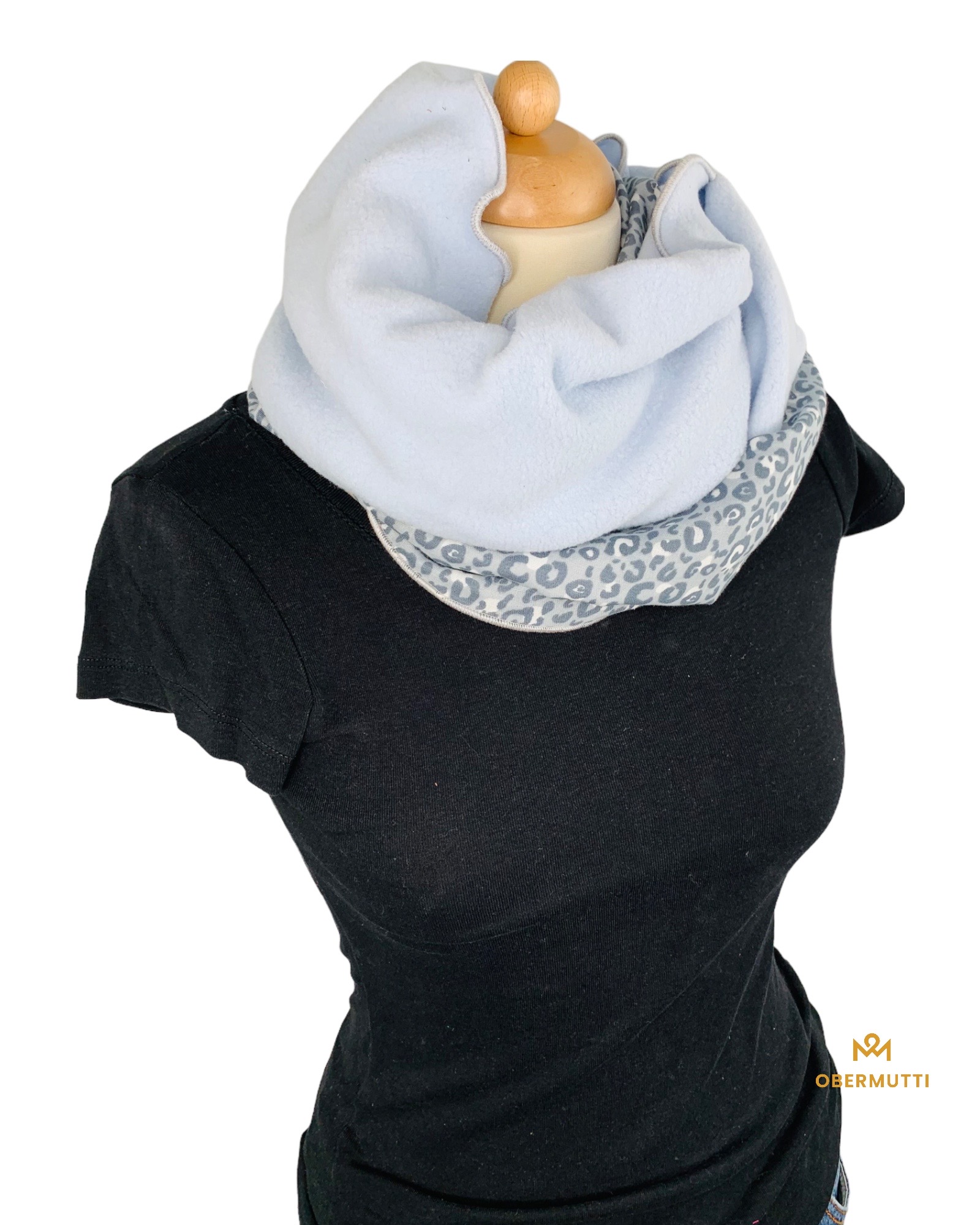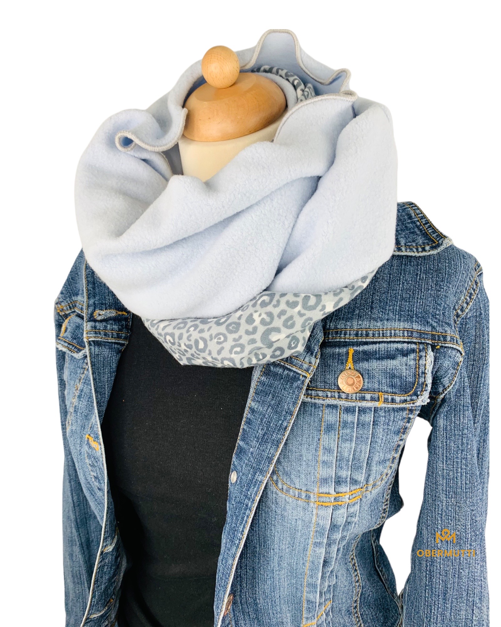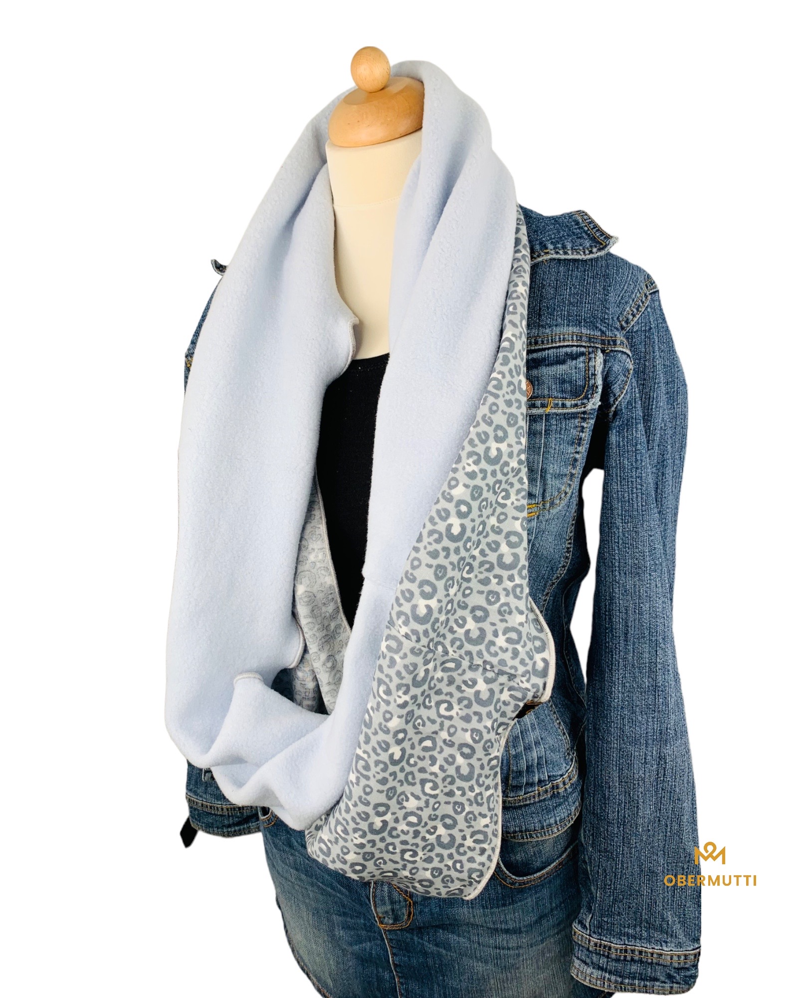 "Grau Leoprint und Hellblau Fleece" gefertigt.
