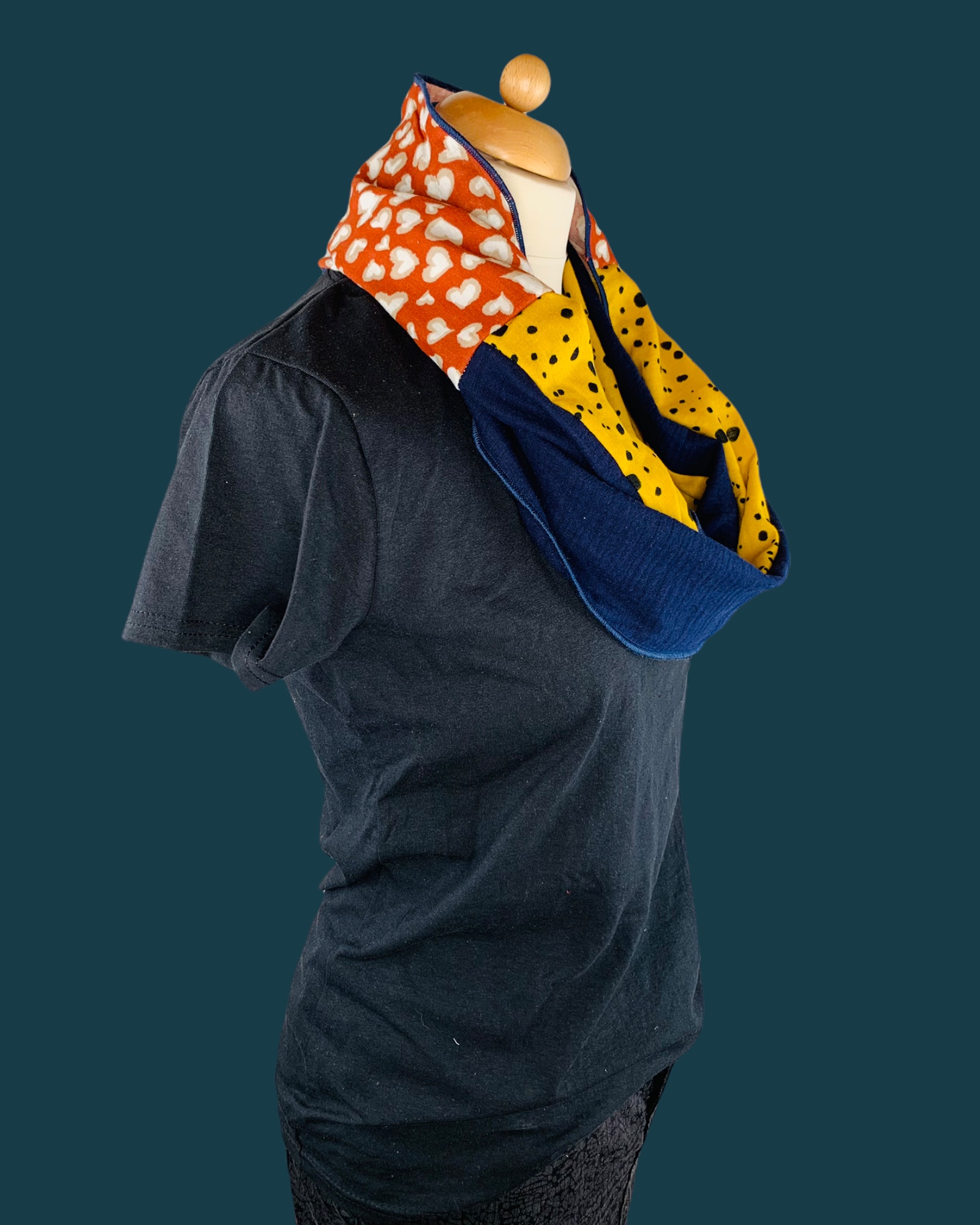 Der Schlauchschal orientiert sich an dem klassischem Loop (Schlaufenschal) und ist eine geschlossene Stoff-Schlaufe ohne Anfang und ohne Ende.