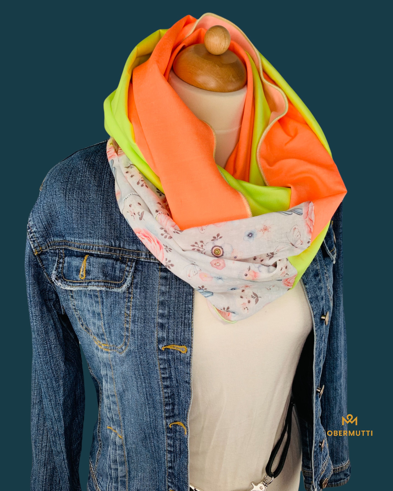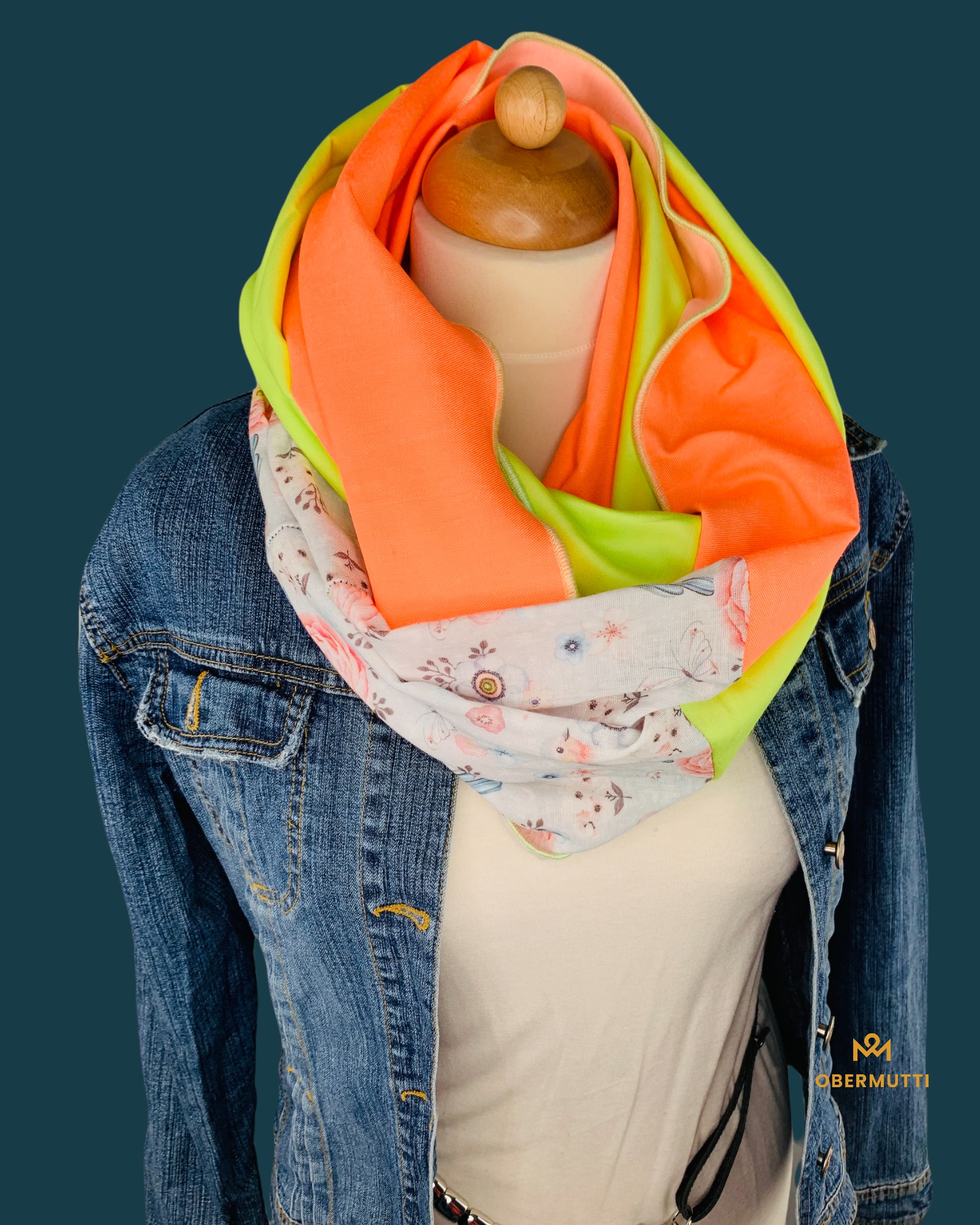 "Neongrün, Neonorange und Weiß mit Blütenprint" gefertigt.