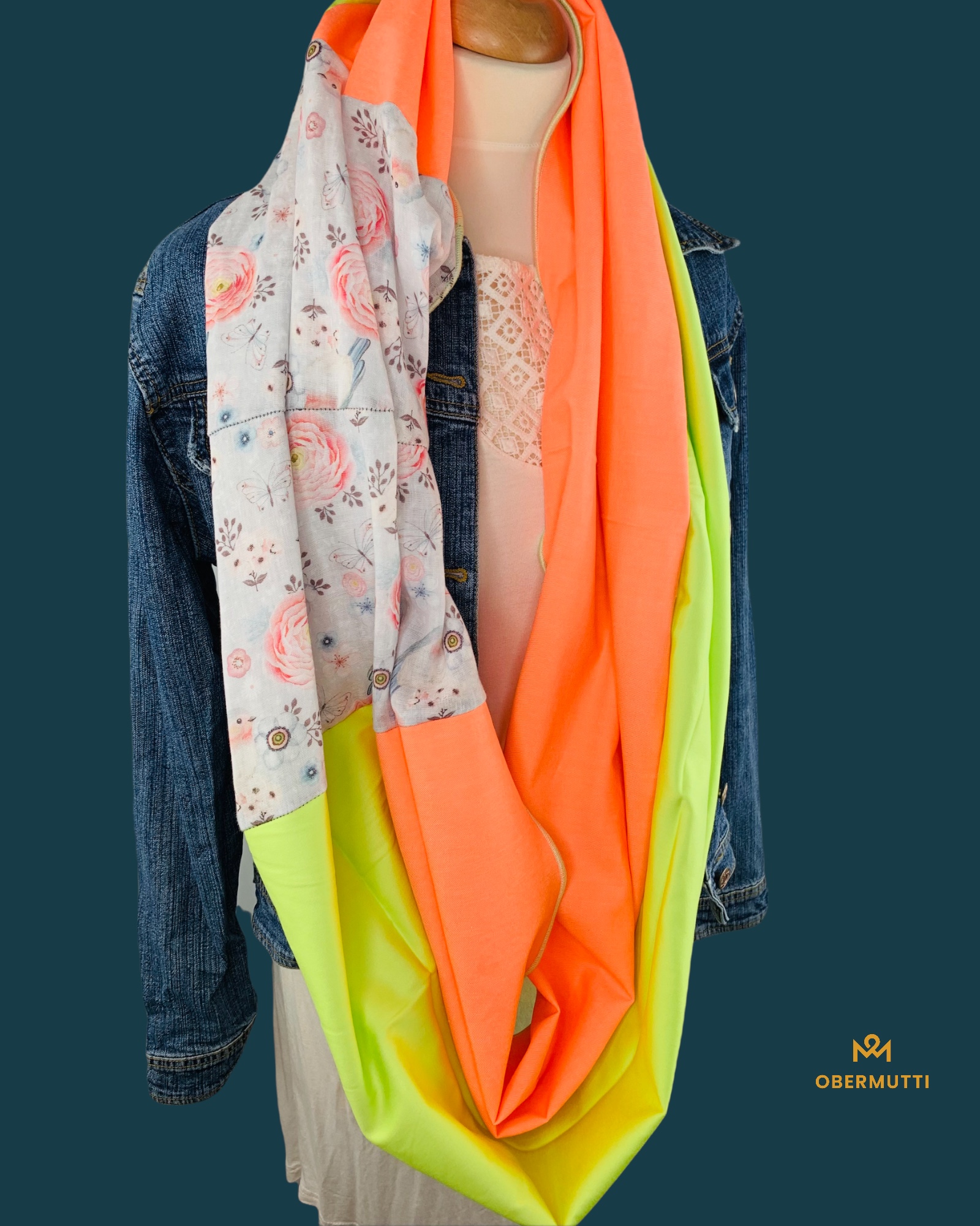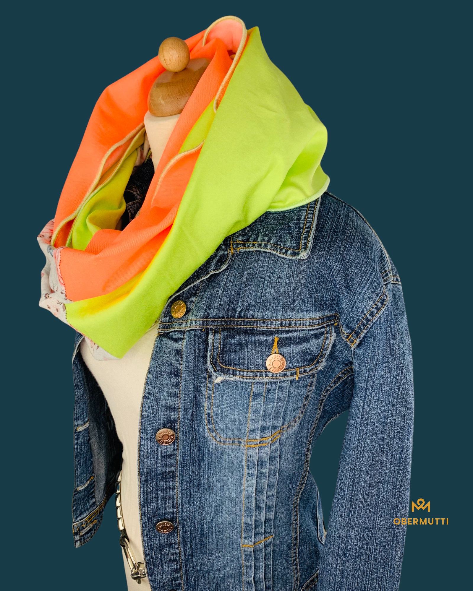 Das Logo OBERMUTTI besteht aus 50% Polyester und 50% recyceltem Polyester.