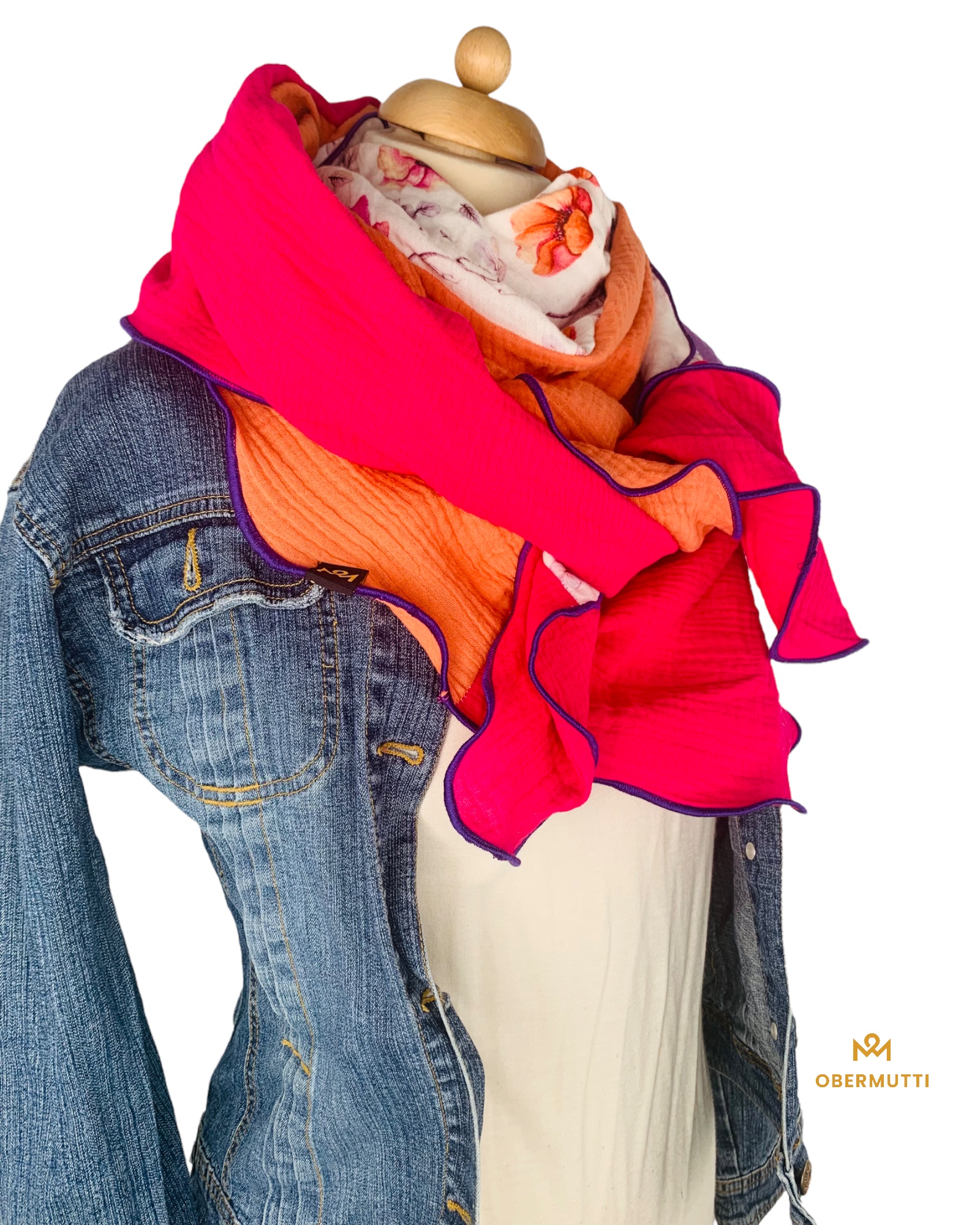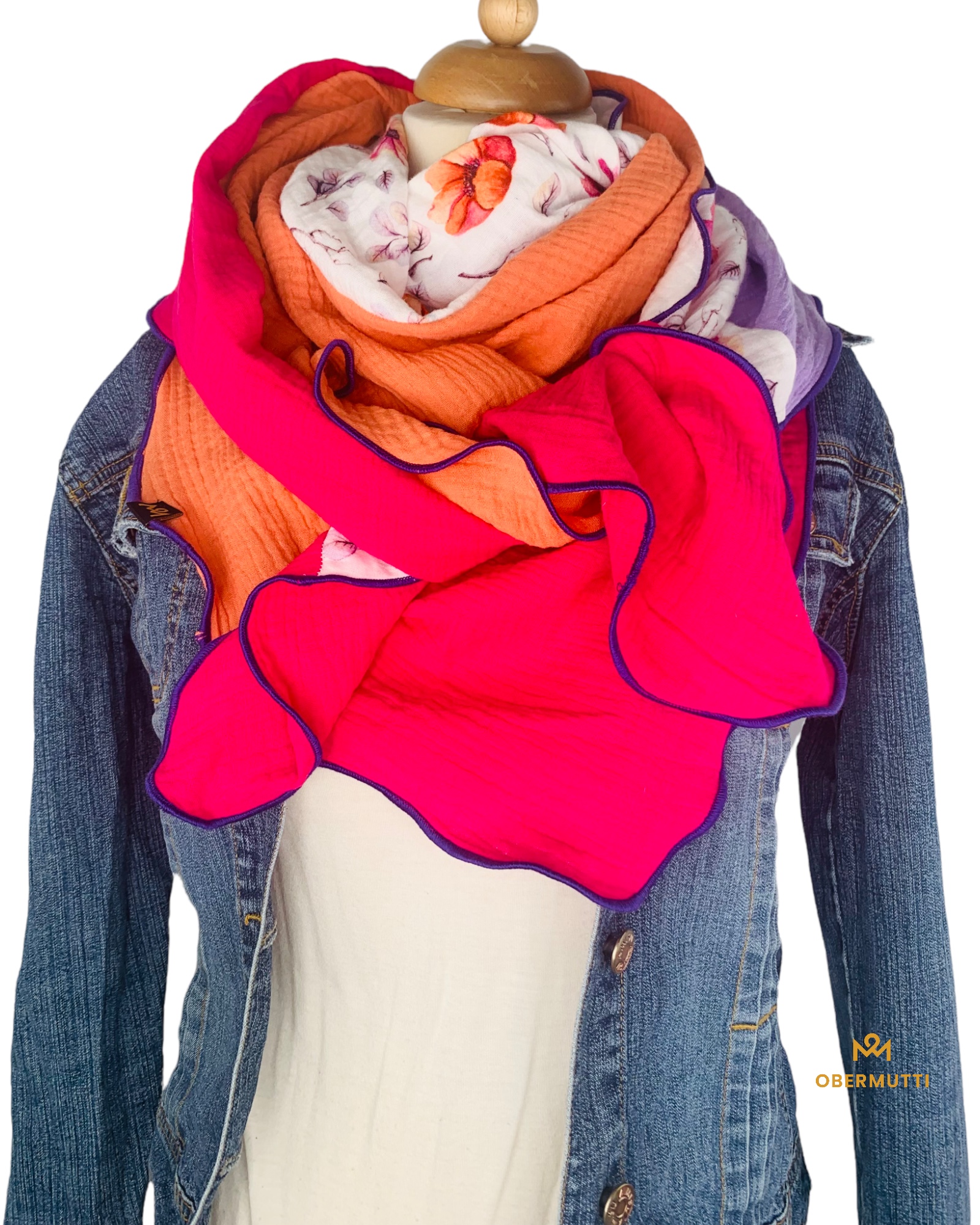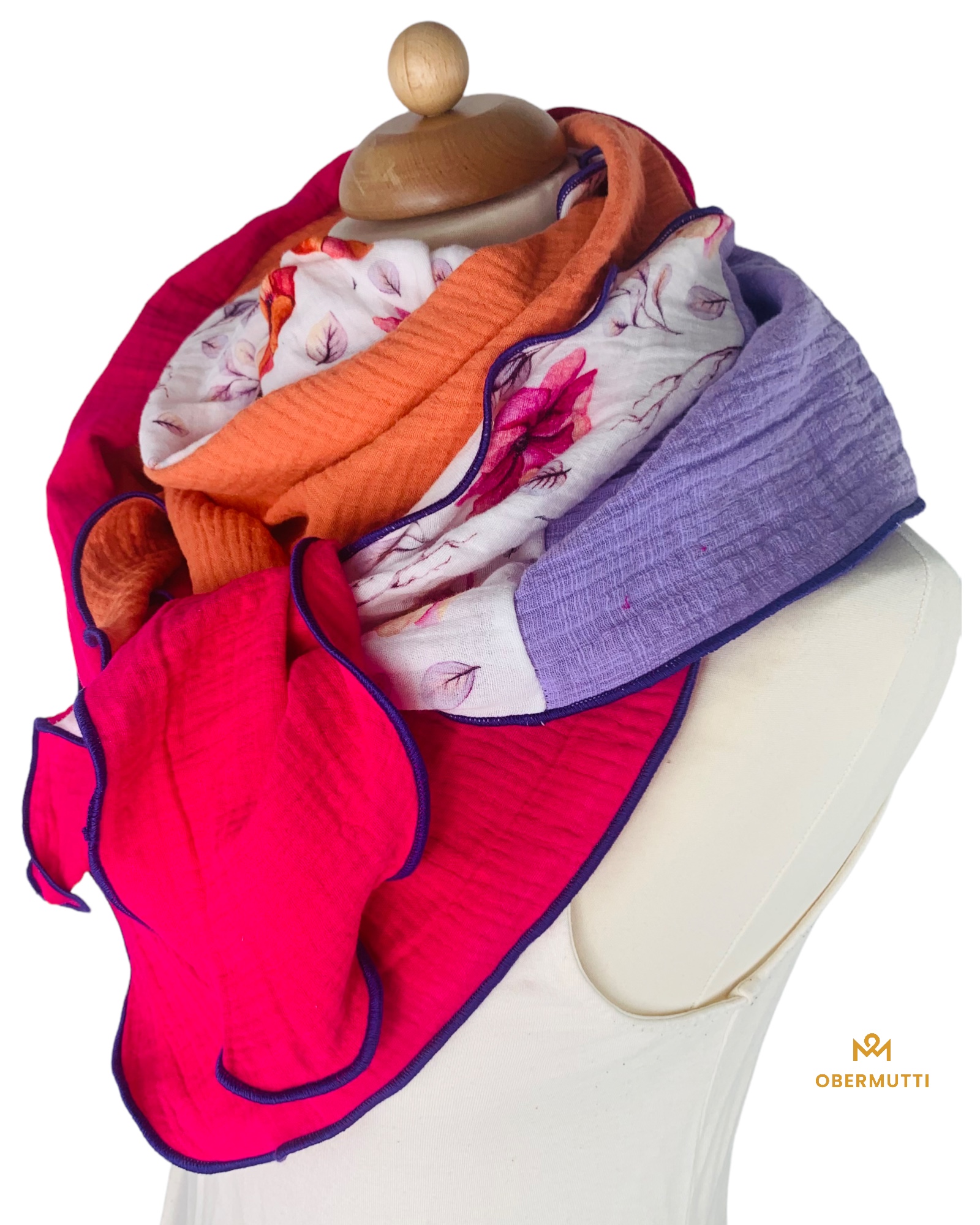 "Pink, Orange, Flieder und Weiß mit Blütenprint" gefertigt.