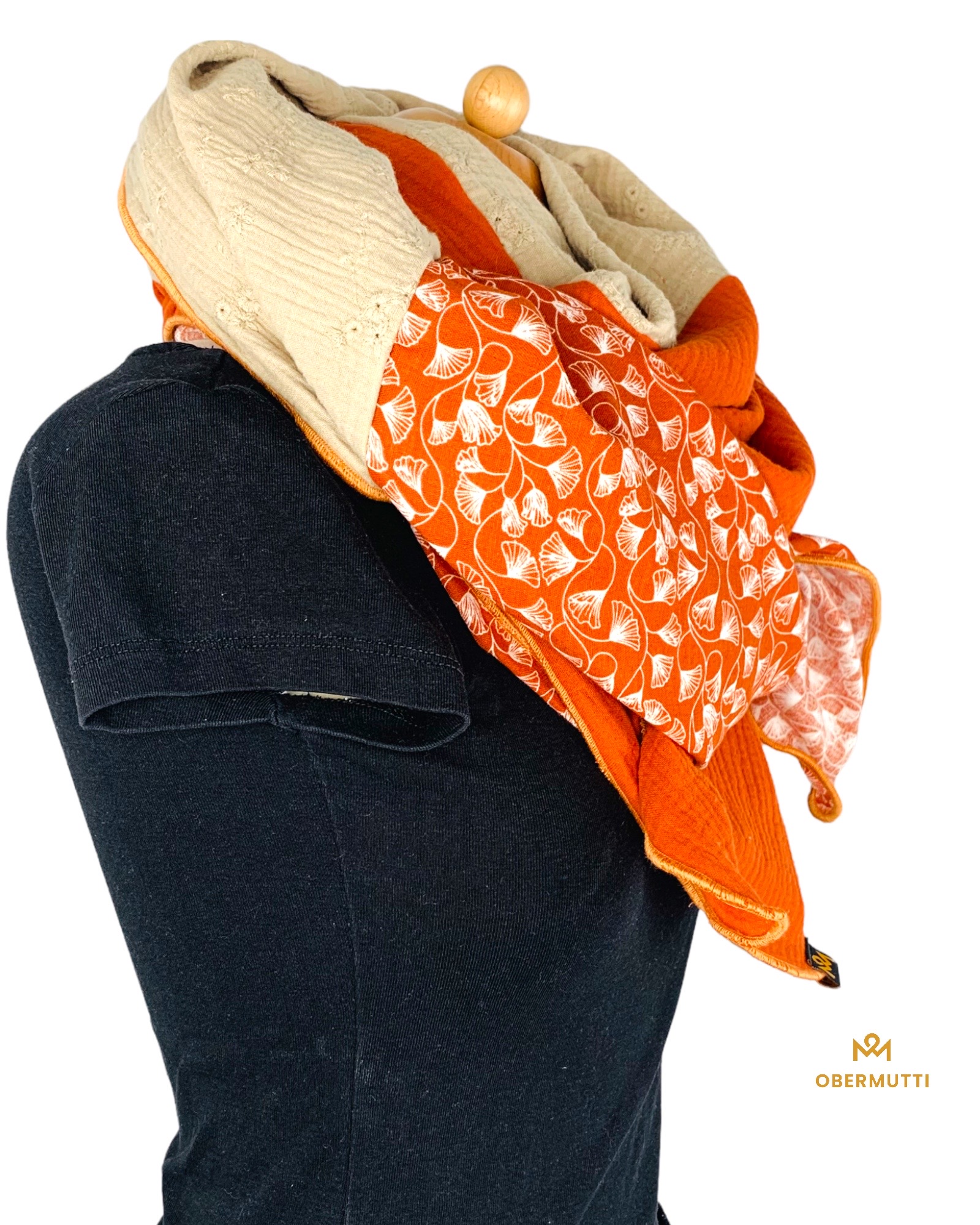 Das Logo OBERMUTTI besteht aus 50% Polyester und 50% recyceltem Polyester.