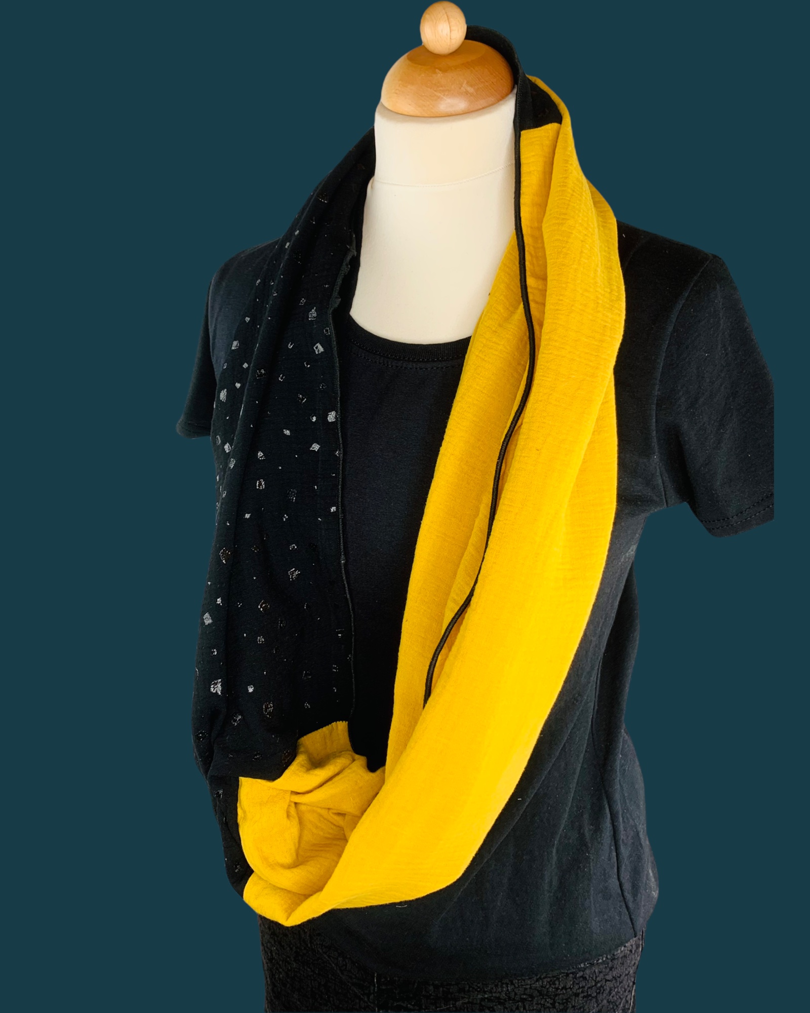 Der Schlauchschal orientiert sich an dem klassischem Loop (Schlaufenschal) und ist eine geschlossene Stoff-Schlaufe ohne Anfang und ohne Ende.