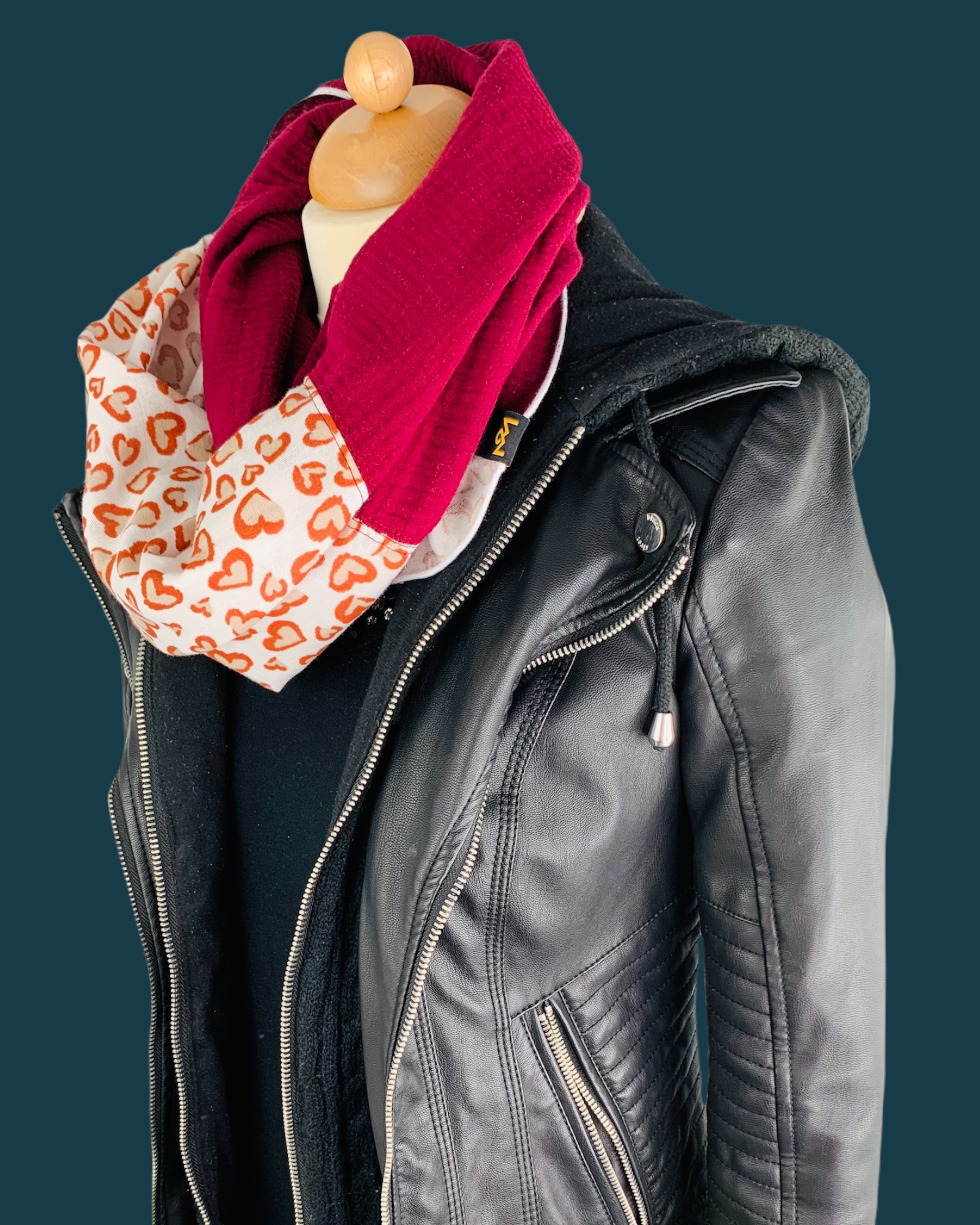"Weinrot und Weiß mit Leoprint Herz" gefertigt.