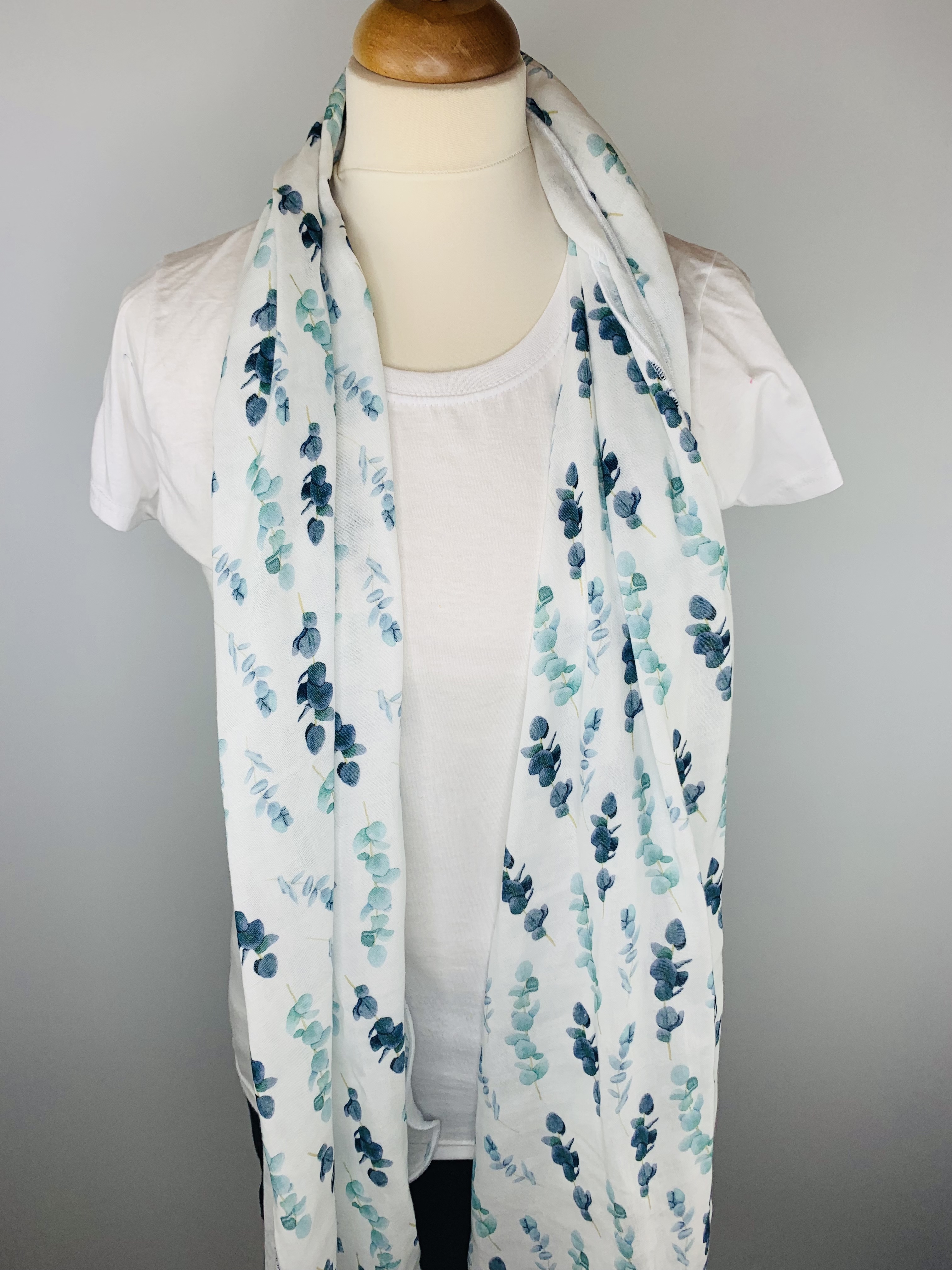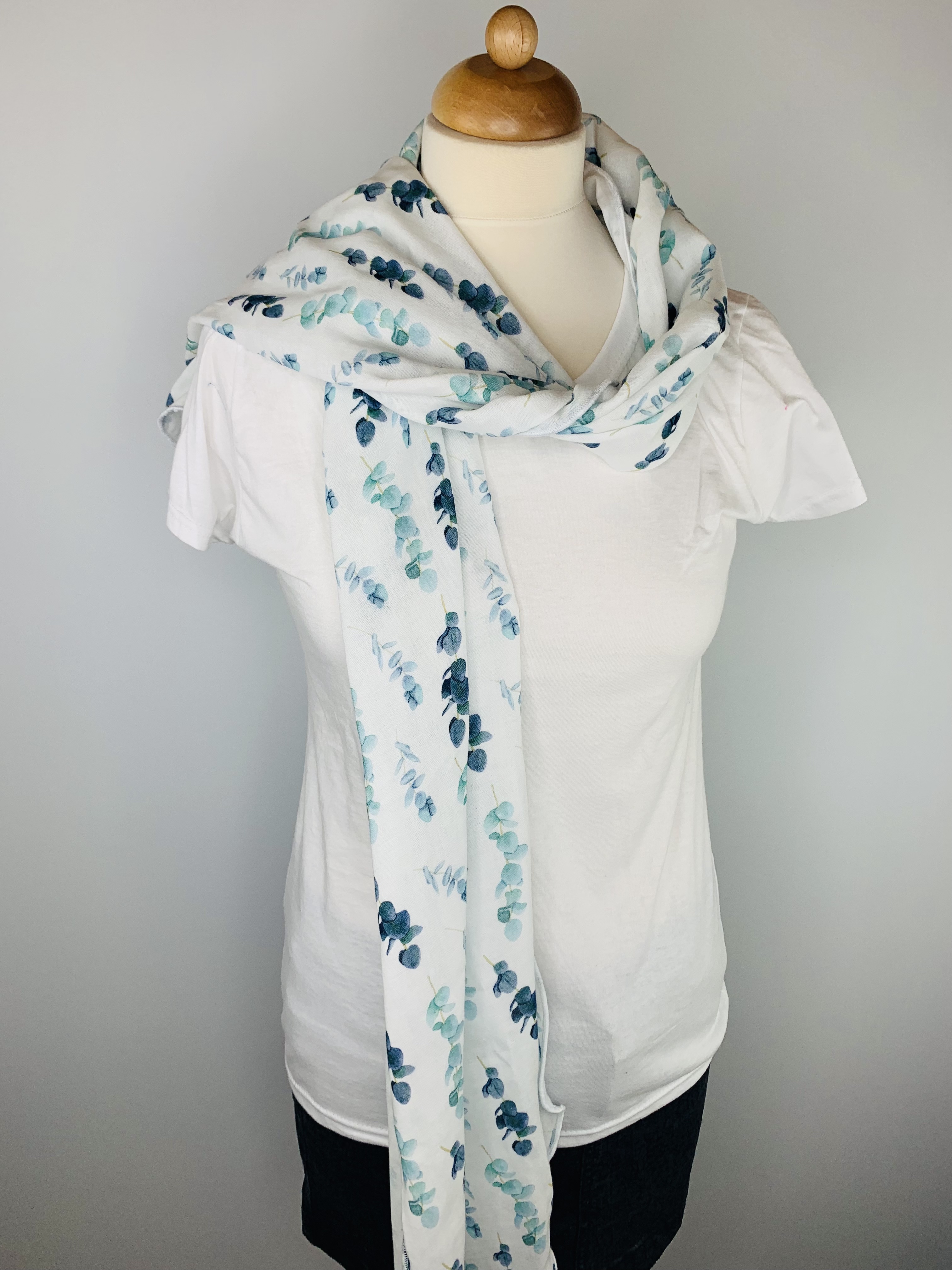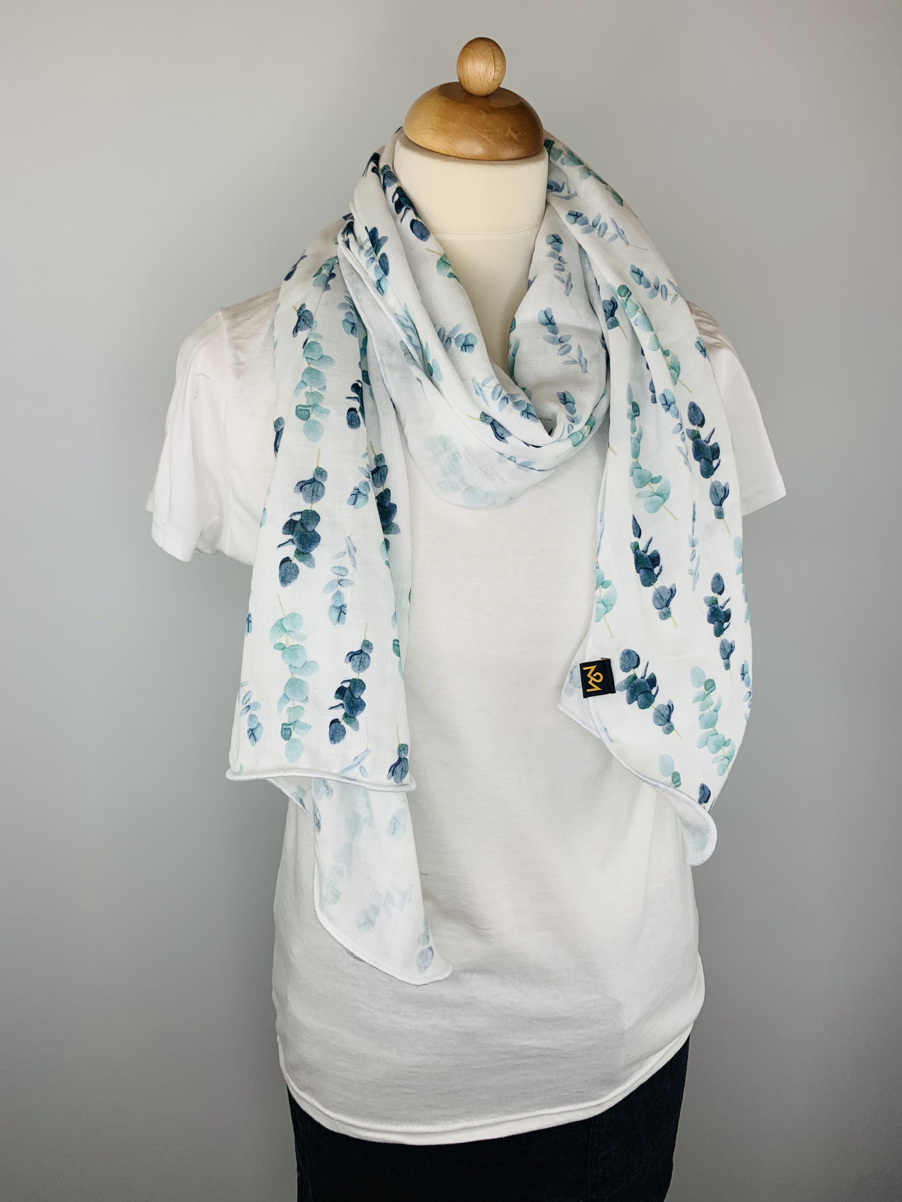 Farbe: Weiß mit Eukalyptus in verschiedenen Blautönen