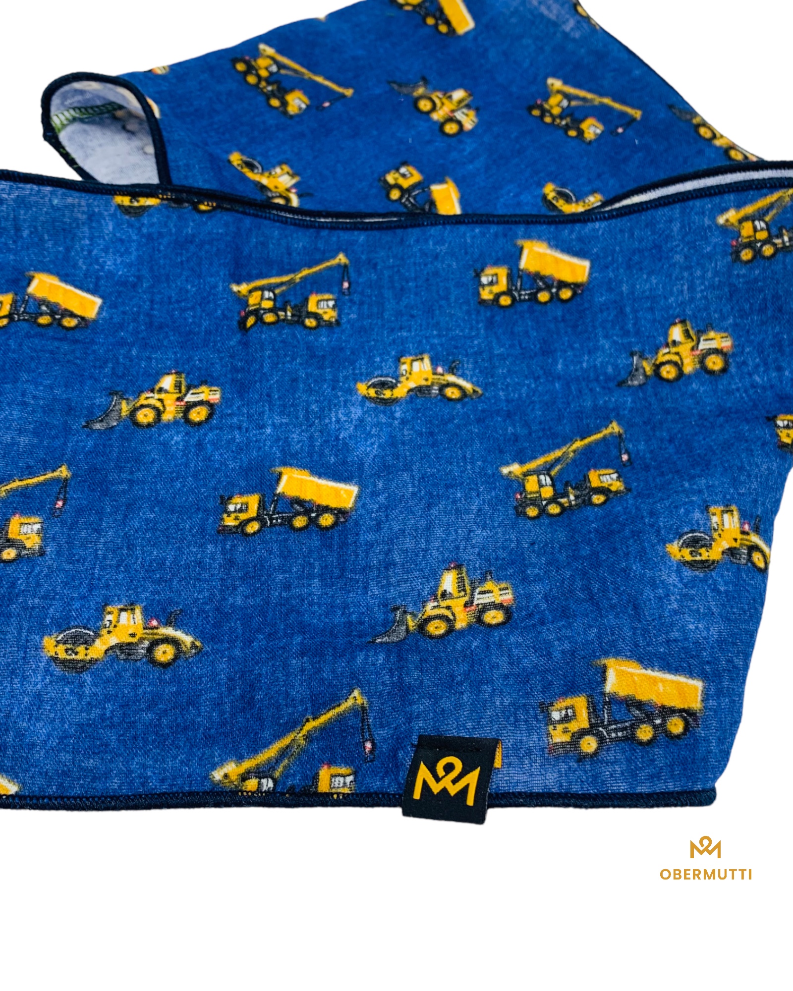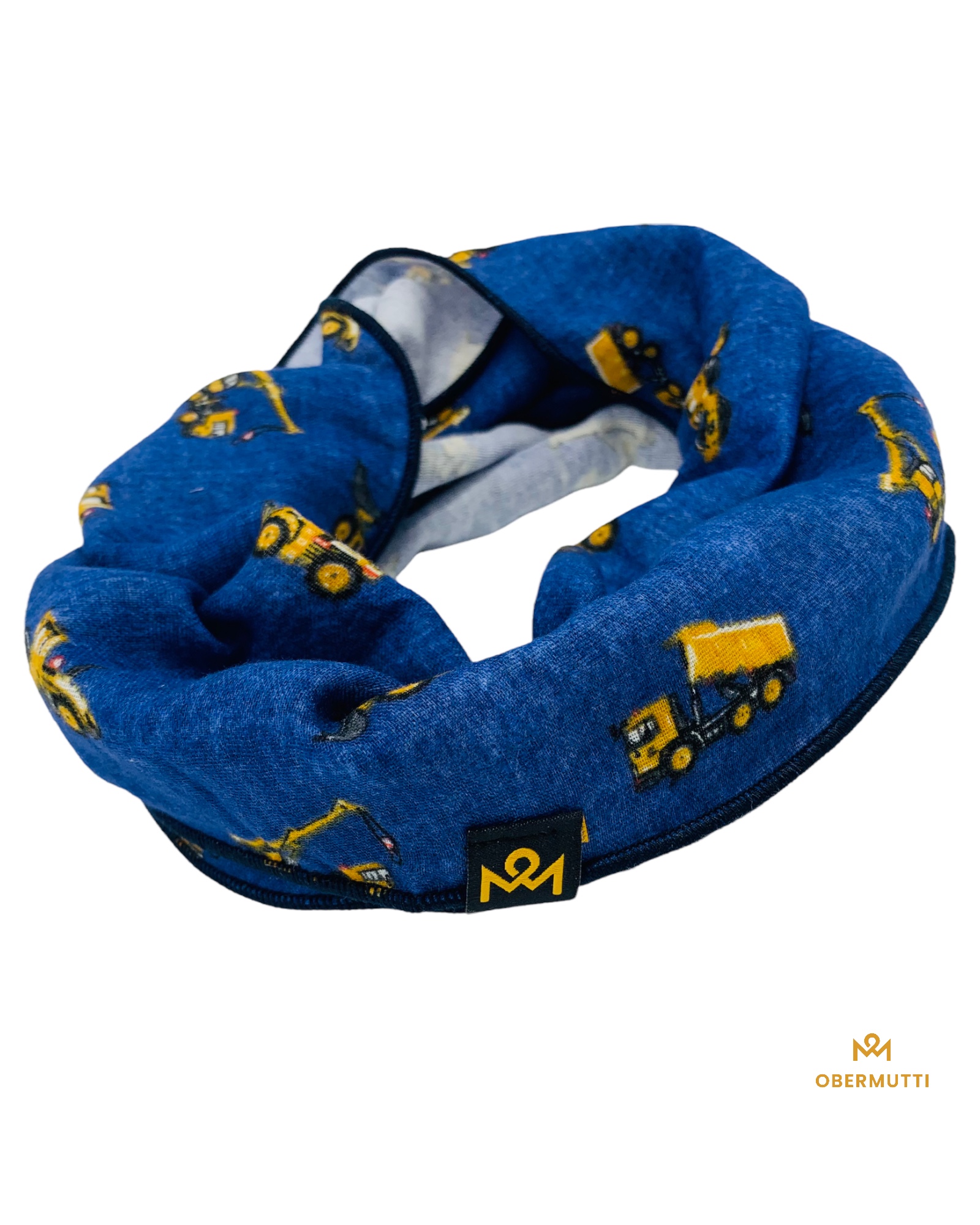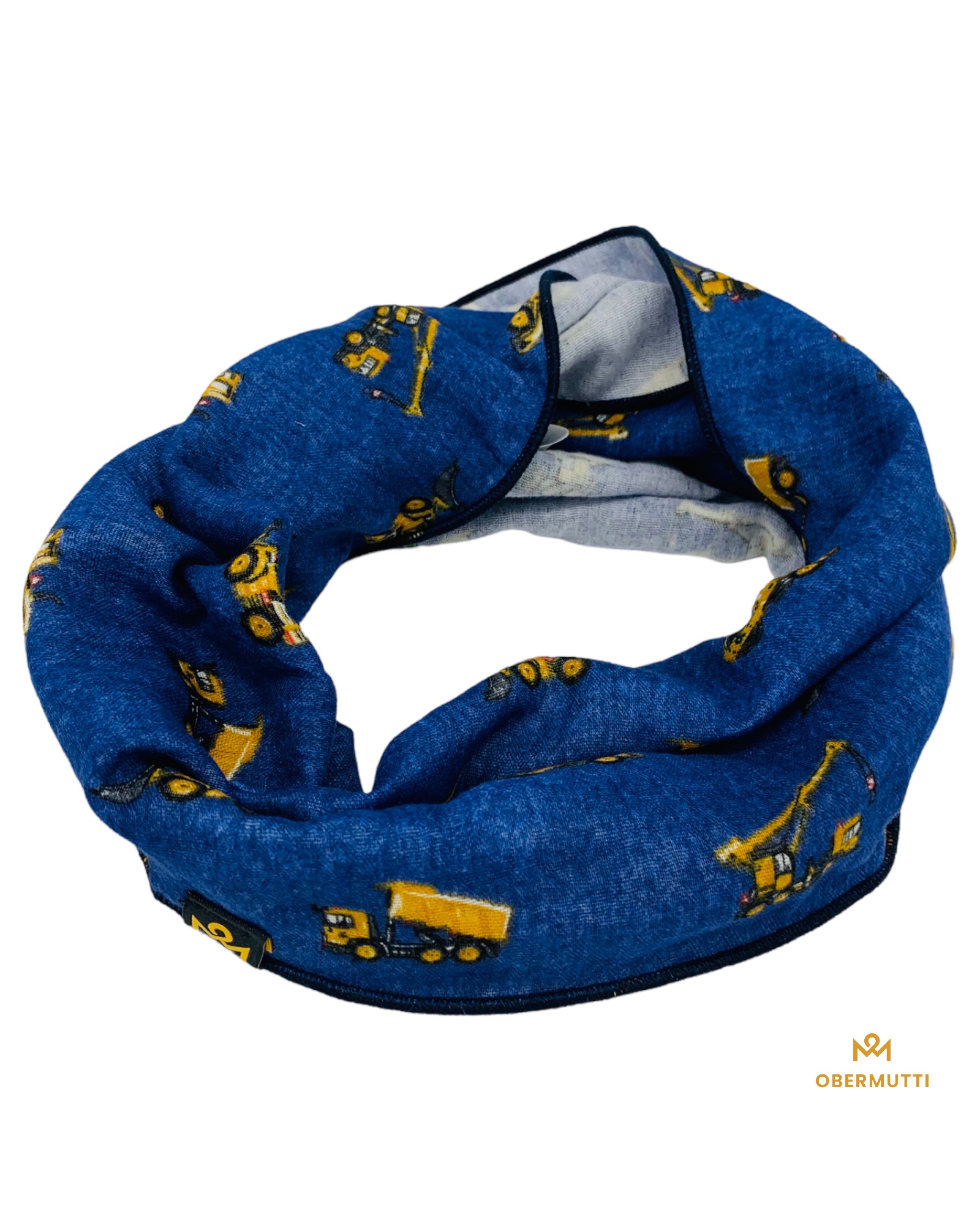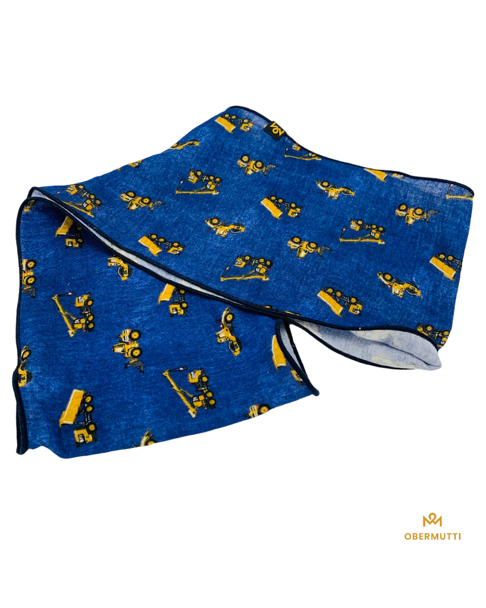 Dieser hochwertige, doppelt gewebte Schlauchschal aus 100% Baumwollmusselin wurde in der Farbe "Blau mit Bauarbeiterprint" gefertigt.
