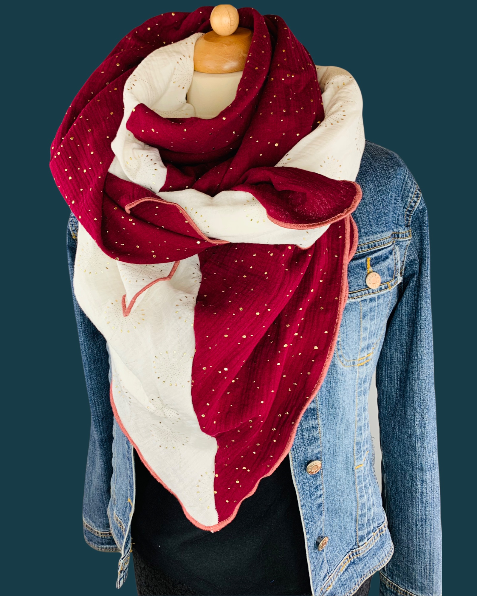 Der Schal besteht aus einem glatten, lockeren und feinfädigen Baumwollstoff.