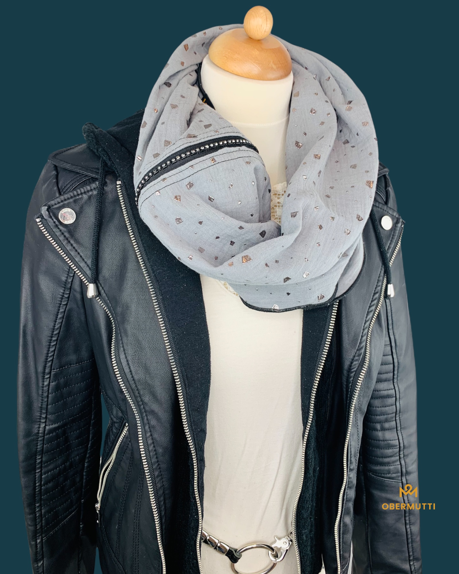 Dieser Schal wurde mit einem Verschluss mit funkelnden Steinchen versehen. Er besteht aus zwei Seitenteilen und einem silberfarbigen Schieber mit diesem der Schal geschlossen und / oder vergrößert werden kann. Dieser Schal kann kann mit weiteren „OM Diamonds“ Schals kombiniert werden. Somit kann der Schal individuell für das Outfit angepasst werden. Der Wahnsinn!