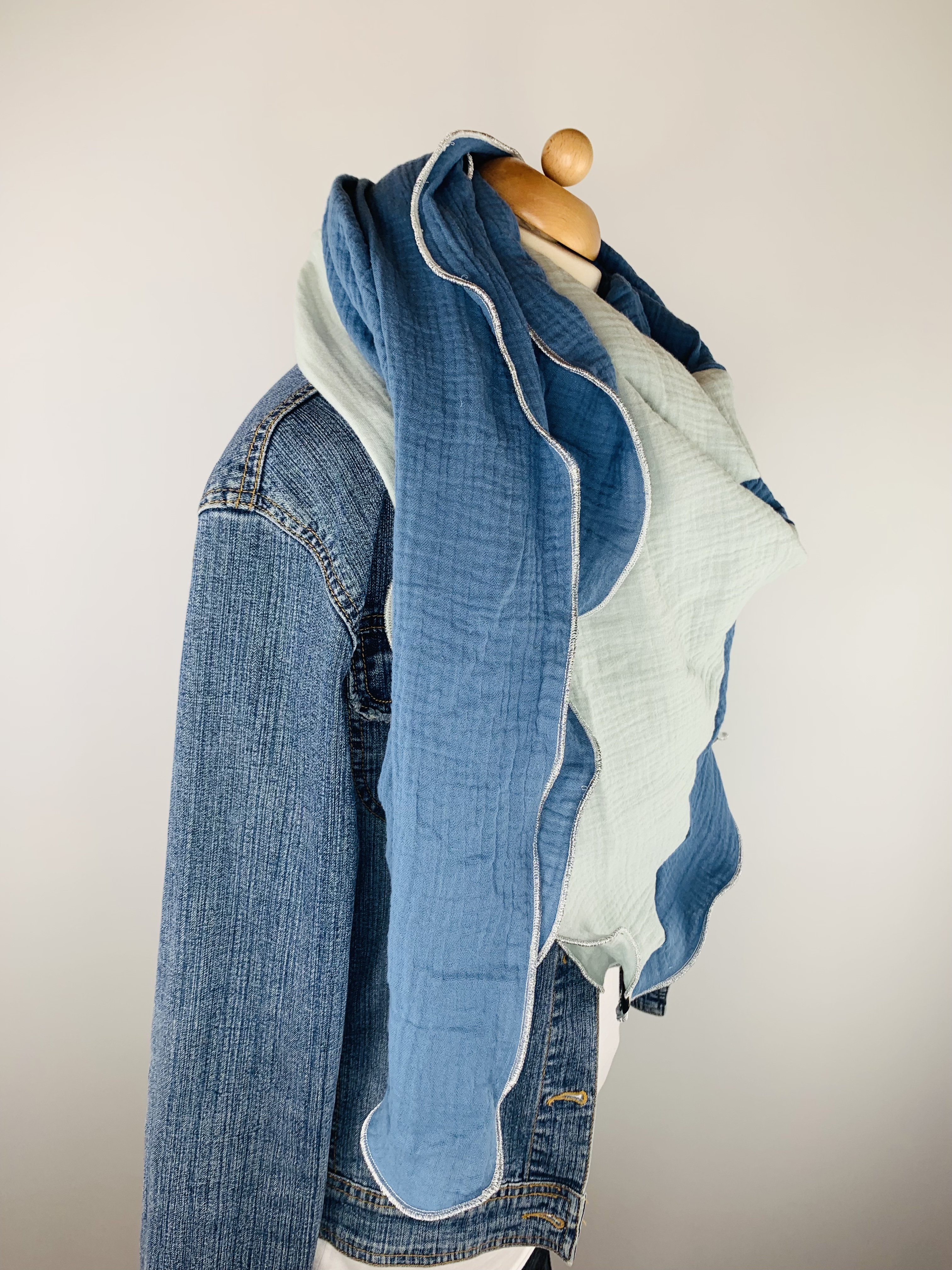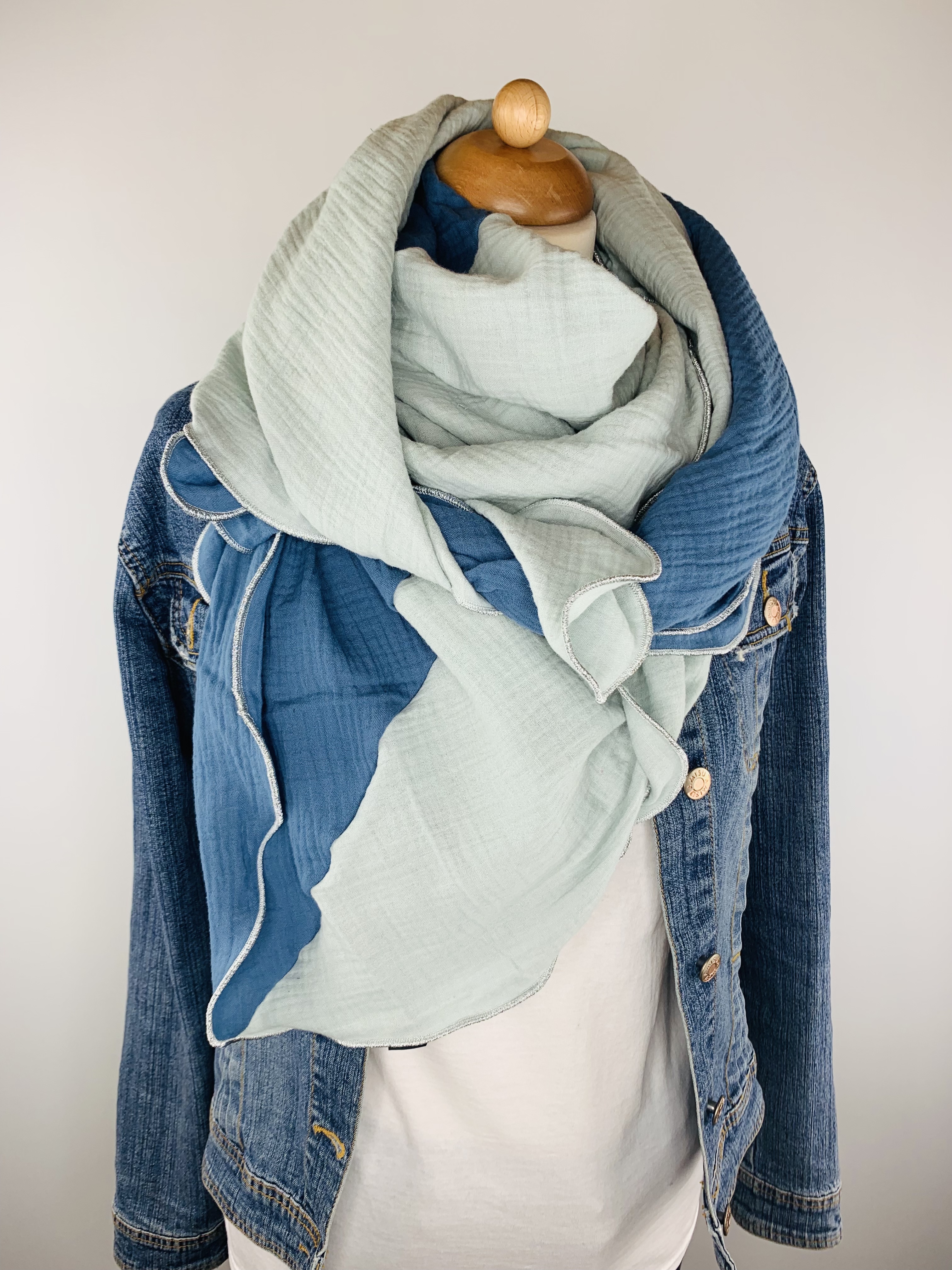 Der Schal besteht aus einem glatten, lockeren und feinfädigen Baumwollstoff.