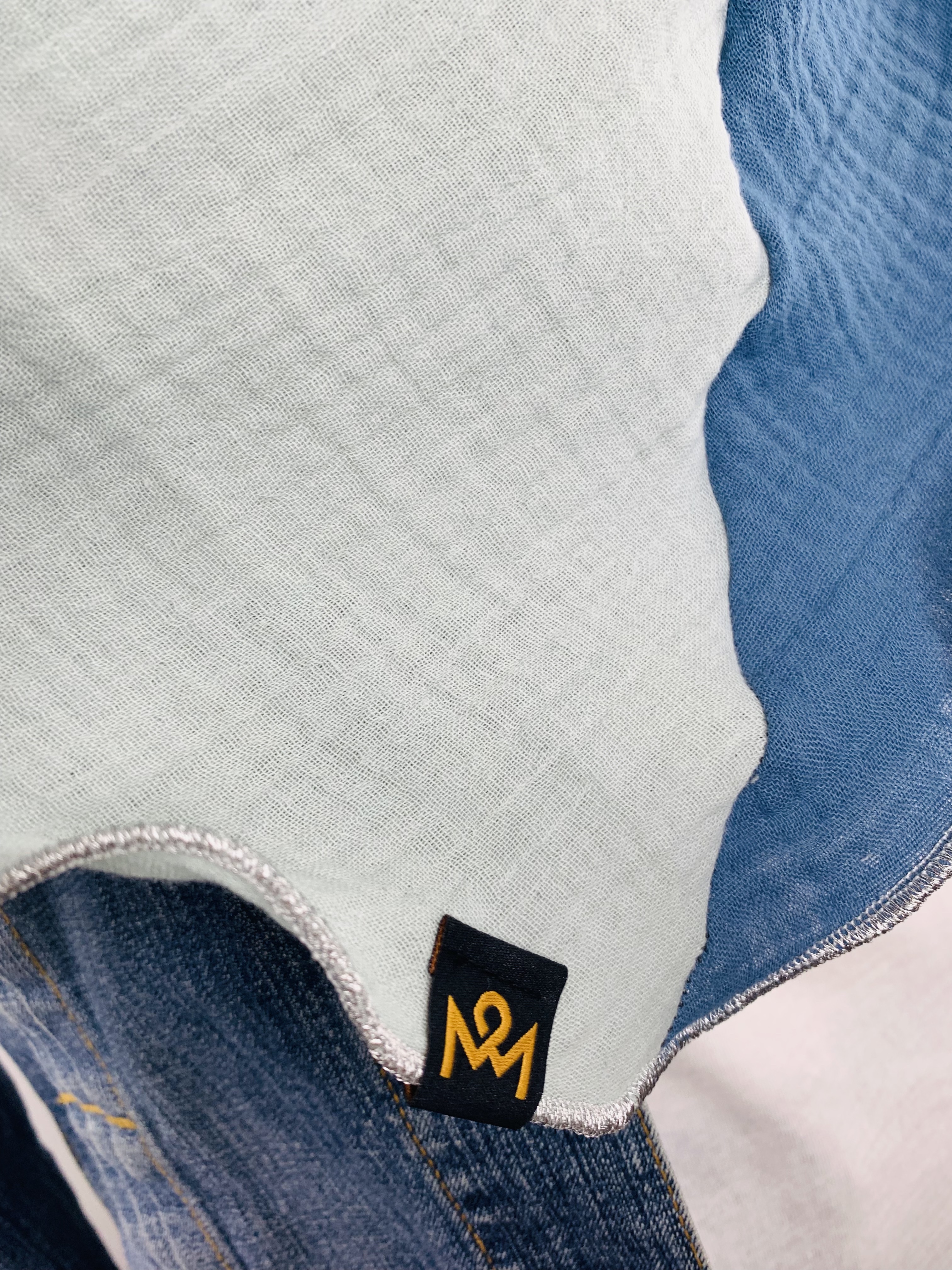 Dieses hochwertige, doppelt gewebte Tuch aus 100% Baumwolle wurde in den Farben "Mint und Blau" gefertigt.